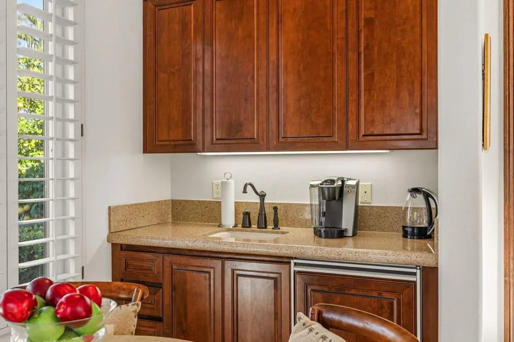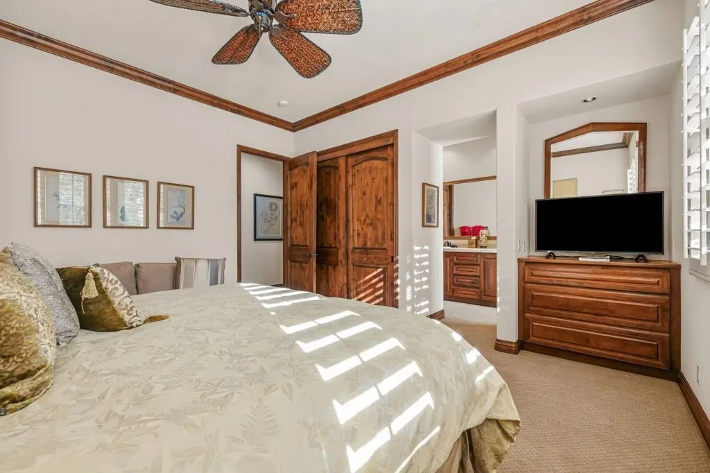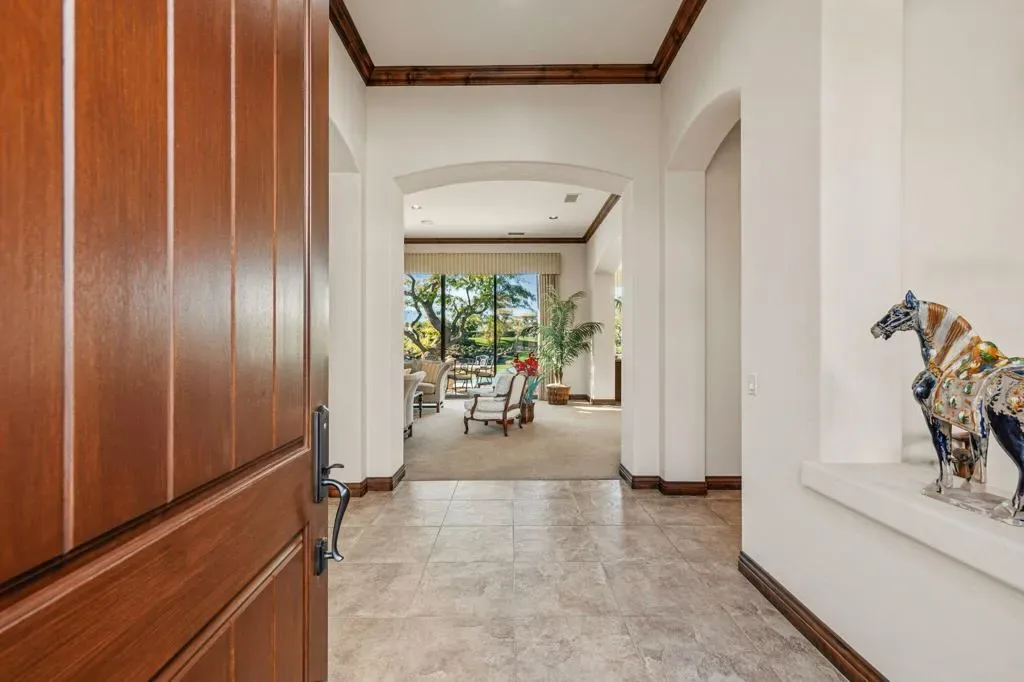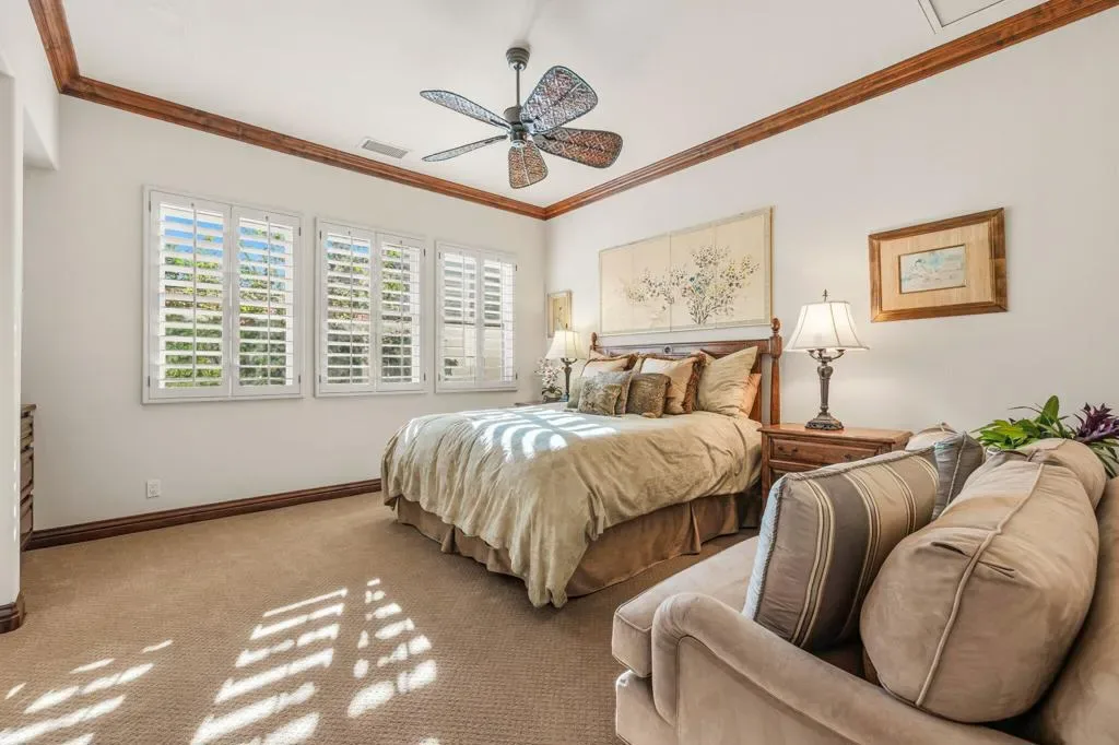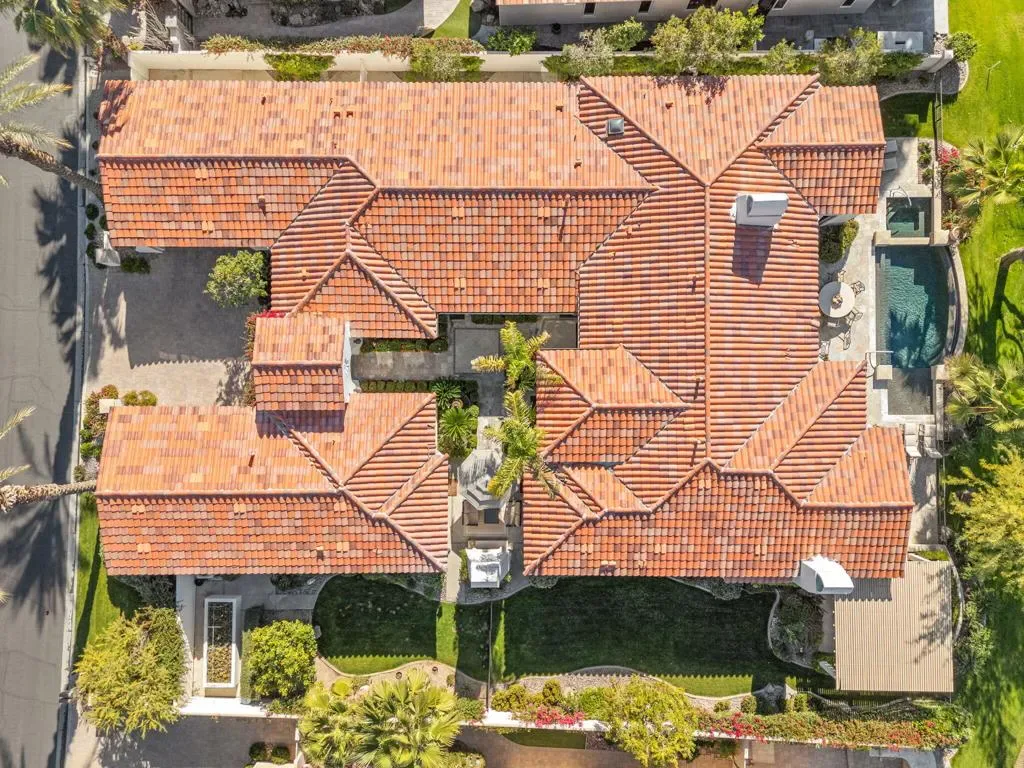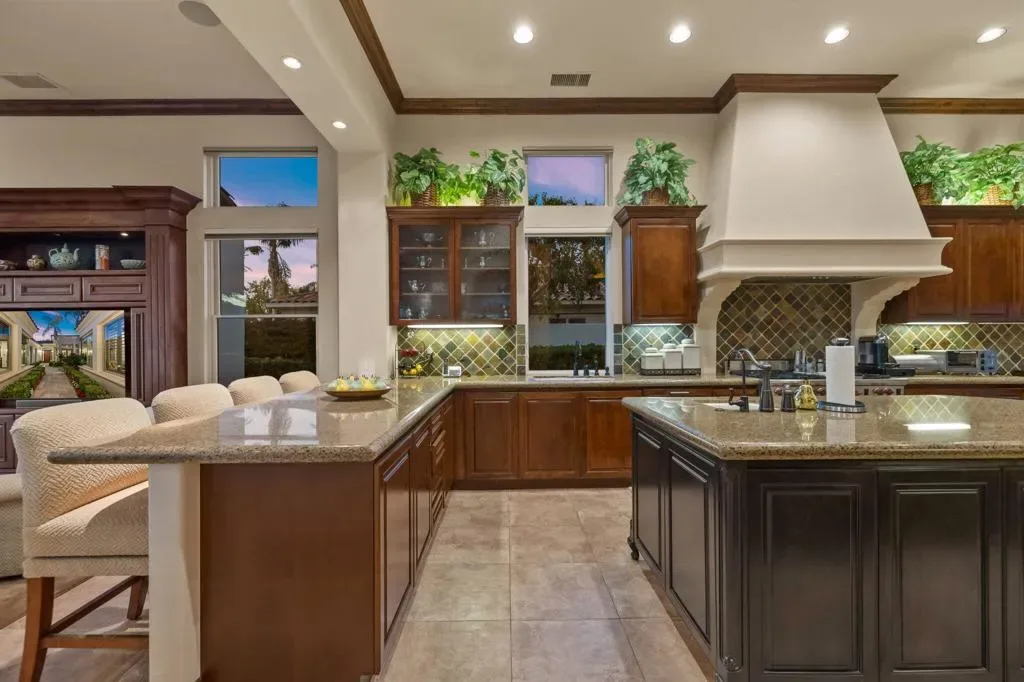A truly rare opportunity to own the iconic Toscana Cortona 923 Prototype in prestigious Indian Ridge Country Club! This one-of-a-kind estate showcases timeless elegance, exceptional craftsmanship, and breathtaking desert vistas, all set on an oversize premium lot with views of the iconic waterfalls overlooking the 18th fairway of the Arroyo Course. Valley wide renowned builder, Bill Bone and Sunrise Corporation, saved the best lot for last to build this spectacular masterpiece within close walking distance to clubhouse, fitness, tennis & pickleball, spa and restaurants. Designed for both grand entertaining and everyday luxury, the residence features a spacious open floor plan with 4 bedrooms, 4.5 baths, including a two-room detached casita, ideal for hosting guests in comfort and privacy. Formal living and dining rooms flow seamlessly into a generous family room with wet bar and fireplace, opening to the gourmet kitchen appointed with granite countertops, a Wolf range, Sub-Zero refrigerator, large center island, walk-in pantry, and charming breakfast nook. The magnificent primary suite offers views of the golf course and mountains, dual independent bathrooms and walk-in closets, a gas fireplace, sitting area, spa-inspired soaking tub, and oversized double shower offering a true private retreat. Custom, high-quality finishes are found throughout, including built-in cabinetry, tile flooring, crown molding, shutters, remote-controlled blinds, and thoughtfully designed outdoor spaces. The resort-style backyard is the showpiece featuring a pebble-tech infinity pool and spa, paver patios, fountain, and built-in BBQ island–perfectly positioned to capture sweeping golf course, lake, waterfall, and majestic San Jacinto Mountain views. Offered decorated and designer furnished per inventory, this exceptional Toscana estate with 4-car garage delivers privacy, prestige, and unparalleled beauty–a dream home that must be experienced to be fully appreciated. The Golf Membership available with no waitlist is the cherry on top.