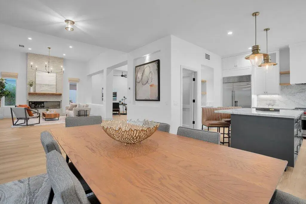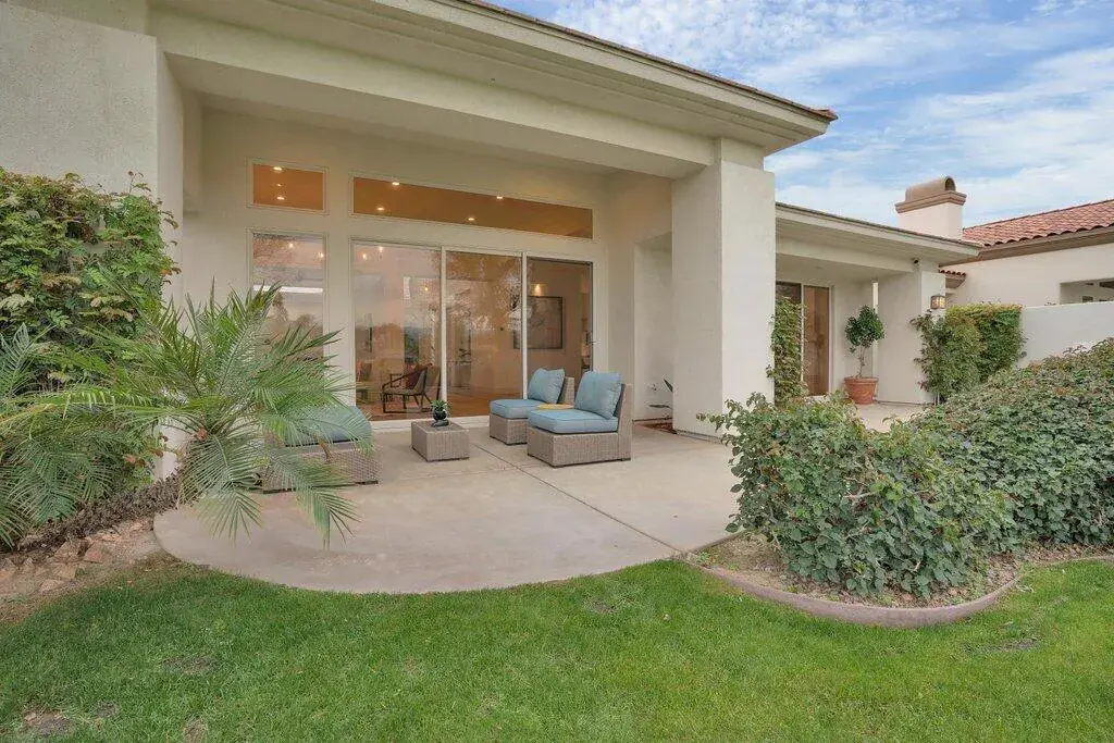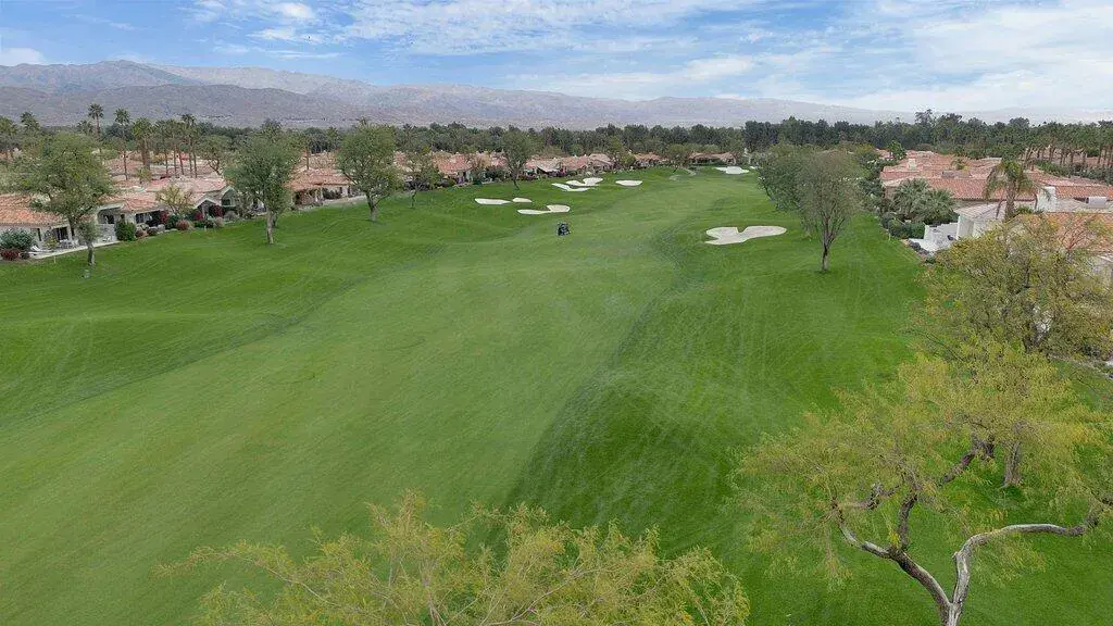 Located on the fairway at Indian Ridge Country Club this highly desired Bougainvillea 2 floor plan home offers an open floor plan with 3 ensuite bedrooms and a powder room. Fully paid solar with backup battery for when the power goes out. Entry through a private enclosed courtyard that leads you to a welcoming foyer with elegant chandeliers. This fully remodeled residence features a formal living room and a separate family room, both with fireplaces. The family room includes a built-in bar and opens to golf course and mountain views. An adjacent office or den provides flexible living space that opens up into the front courtyard.The gourmet kitchen is designed for both function and style, featuring marble countertops, a fully built-out pantry, and premium appliance including Wolf gas stove top, subzero refrigerator, and under counter microwave. Electric window blinds are installed throughout the home for added comfort and convenience!The large primary suite has a custom built-in closet, and a spa-like bathroom with dual vanities for him and her and makeup area, a standalone Jacuzzi tub and rain shower. Two additional guest bedrooms are generously sized, each with its own ensuite bathroom with beautiful, remodeled bathrooms. Additional highlights include a laundry room with washer, dryer, and sink, a two-car garage with golf cart garage and a patio overlooking the fairway with mountain views, ideal for outdoor entertainment! No details have been missed in this home! Social membership included. Indian Ridge Country Club residents enjoy access to championship golf courses, tennis and pickleball courts, fitness center, pools, dining, and a full calendar of social activities. Call for a showring today!