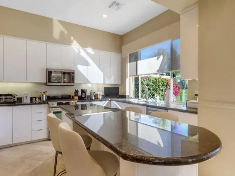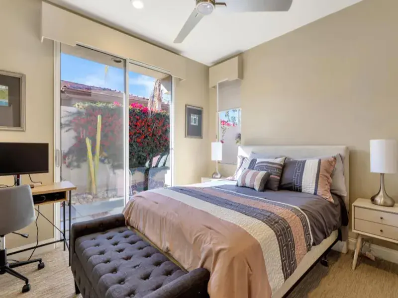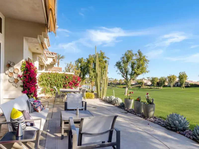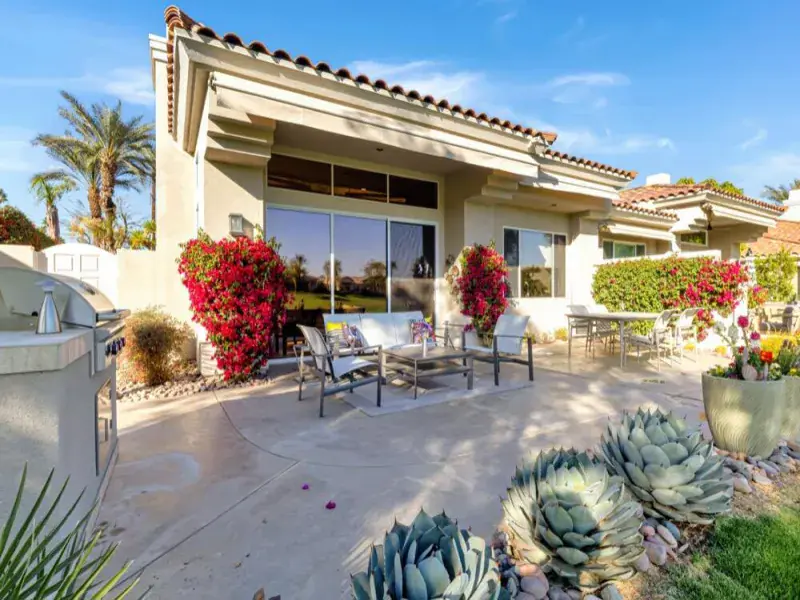 Lease rate of $3100 only available May through October 2026. November through December 2026 is $6000. One of the most desirable Acacia 3 floor plans, this south-facing 1,903 sq. ft., three-bedroom, two-bathroom home has been completely remodeled in recent years. Featuring a beautifully tiled fireplace, granite island, and new stainless steel appliances in the kitchen, plus travertine flooring throughout, this home is stunning! The bathrooms have been upgraded with modern tile and fixtures, the patio has been expanded for excellent outdoor entertaining, and the landscaping has been refreshed with drought-resistant desert scape. Relax on the patio under the electric awnings while enjoying breathtaking Santa Rosa Mountain views. The home comes fully furnished with high-end furnishings, newer flat-screen TVs, and updated window coverings. Indian Ridge Country Club is one of Palm Desert’s premier private country club communities, centrally located in the Palm Springs area near Interstate 10, El Paseo, and the airport. Landlord pays monthly HOA dues, which include cable, internet, and landscaping.