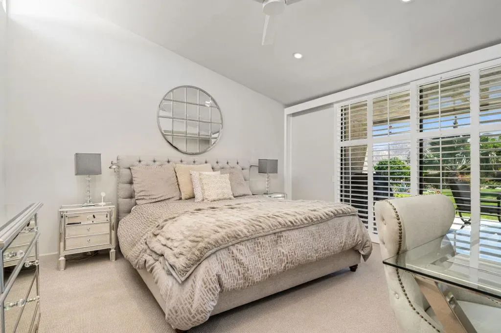 Absolutely gorgeous villa, charming in every way, with stunning, full-on views of the desert’s iconic Mt. Eisenhower from inside and out. Perched on an elevated lot, this beautifully upgraded 2BR/2BA condo is filled with natural light, soothing wall colors, and sophisticated designer touches – offering a perfect blend of comfort, style, and resort-like living. High vaulted ceilings create a sense of spaciousness and room volume throughout. The kitchen is efficiently laid-out, and comes complete with slab granite countertops, stainless appliances, and plenty of storage. Both bedrooms are very well separated for complete privacy and each is equipped with its own ensuite bathroom and walk-in closets. Both bathrooms offer dual sinks, large walk-in showers, and skylights. Ceramic plank flooring in the common areas and carpeted bedrooms. Additional upgrades include a large added floor-to-ceiling view window, dual pane sliders, expanded 384sf tile patio (with hard-wired radiant heater for winter nights), and an enclosed 2-car garage. Large pool and spa are just steps away – but far enough for privacy. Enjoy coffee in the morning or cocktails after golf on the super-relaxing rear patio while taking in the breathtaking mountain scenery. Whether you’re seeking a full-time residence, seasonal getaway, or investment opportunity, this condo with its stunning views, stylish finishes, and unbeatable setting delivers on every level. Ironwood CC is an upscale and diverse community featuring two 18-hole championship golf courses, a recently renovated beautiful clubhouse, state-of-the-art fitness center, tennis, pickleball, and year round dining and social events. Just a golf cart ride to El Paseo with its high-end shopping, dining, galleries, luxury shops, grocery and services. Minutes to College of the Desert, McCallum Theater, and Palm Springs Int’l. Don’t miss this one!