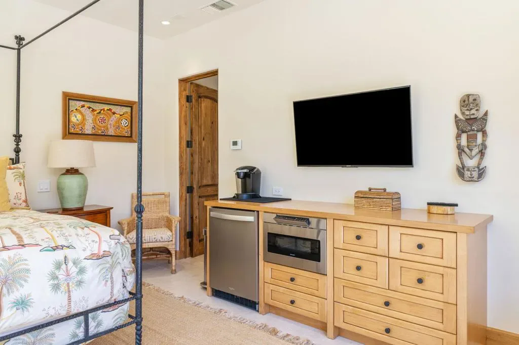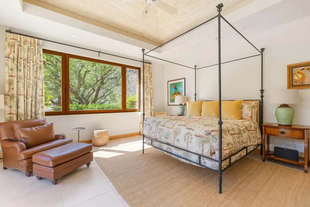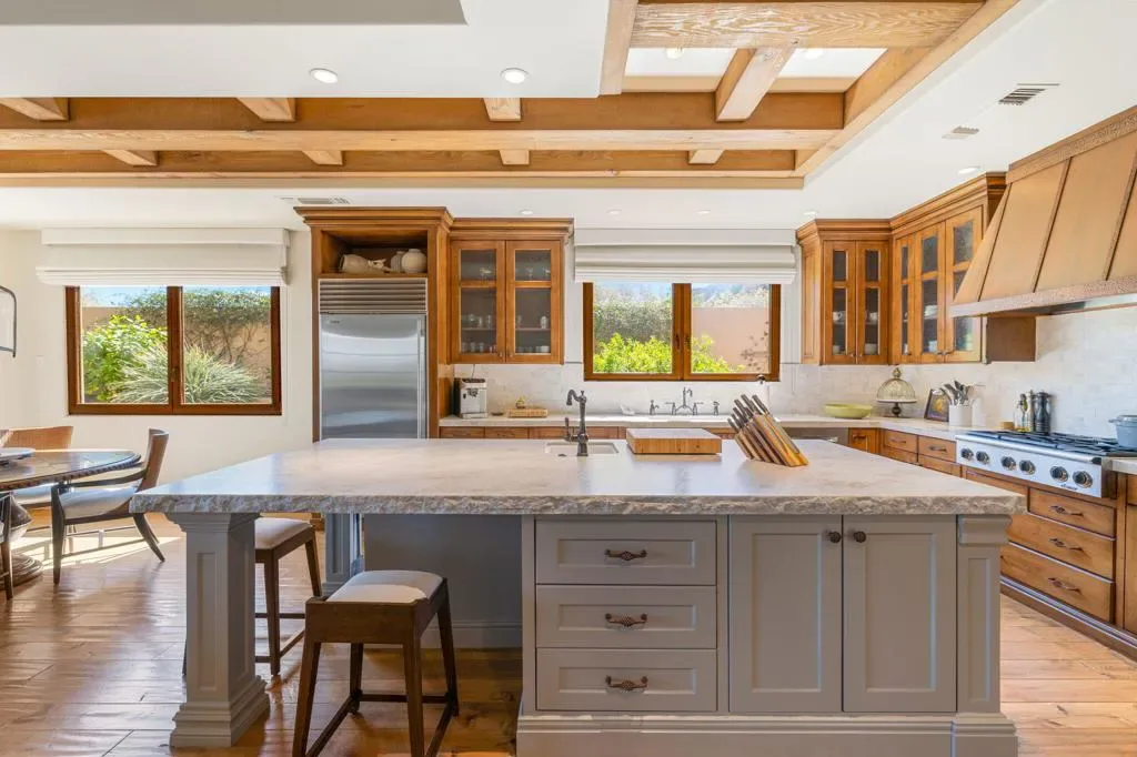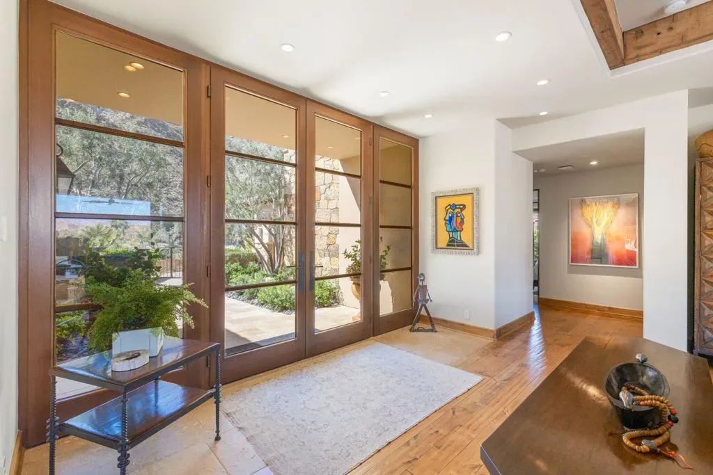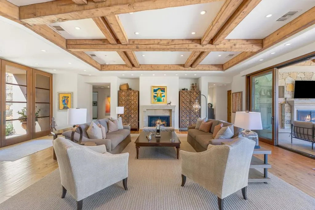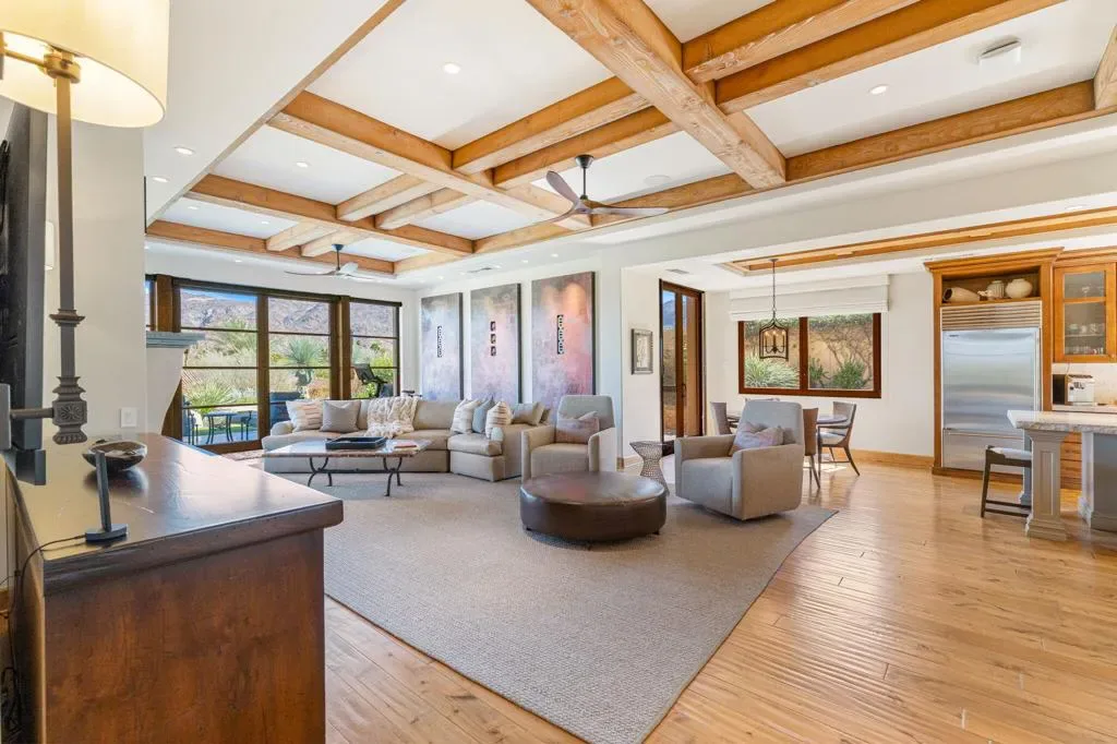 An masterful blend of contemporary touches and a timeless architectural design. This 2006 custom built home is situated up high for unmatched views of the mountains and valley. Impeccable layout for privacy and luxury living. Nestled on a cul-de-sac lot is this 3 bedroom plus an office, 5 baths with 5,066 sq. ft. of living space. The wood plank floors seamless transition to porcelain tile flooring. The 1 bedroom, 1 bath casita offers privacy and all the amenities one would ever want. The open floor plan is here for gracious entertaining. The bar area offers sitting for 6, a SubZero refrigerator and an ice maker. Tall wood framed glass sliders in the great room disappear into the wall allowing full advantage of the magnificent view. The four fireplaces are a clear signal of quality throughout. Sellers have made major upgrades and changes that take 3 pages to list. Here you will find technology at its best. There is a Control 4 Smart System, for HVAC, lights, newer surround sound speakers, pool, cell signal booster and more. The Ring security system has cameras and motion sensors. 4 newer A/C condenser units, and 30 owned solar panels with 3 Tesla backup batteries and car charger. The approx. 1,000 sq. ft. patio and salt water pool are ideally situated with vistas toward the view. The eye- catching Quartzite kitchen center island countertop, another recent addition, is remarkable. There is a large walk- in butler’s pantry with 2 SubZero freezer drawers. The separate golf cart garage door has it’s own entrance. All these benefits and the home is offered furnished per inventory list. There is so much to like about this impeccable home.