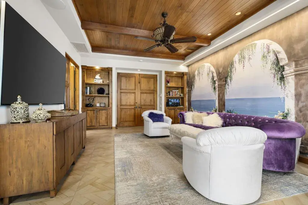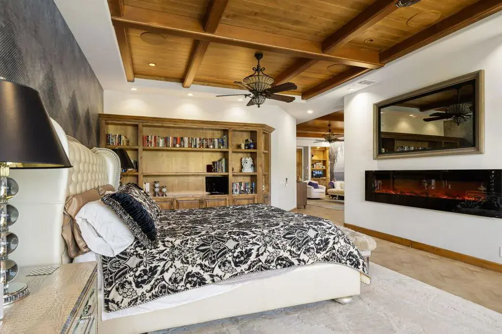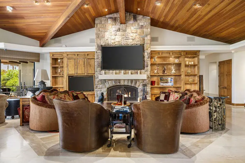 Set within the exclusive Canyon View Estates at Ironwood Country Club, this remarkable fairway estate is a masterful expression of architectural sophistication, modern innovation, and refined desert luxury. Perfectly positioned along the 16th fairway, the residence captures breathtaking mountain views and tranquil water feature views, creating an extraordinary backdrop for elevated living. A grand living room with soaring wood-beamed vaulted ceilings and a statement fireplace sets a dramatic yet inviting tone. Four spacious en-suite bedrooms provide comfort and privacy, with the primary suite serving as a peaceful retreat. The saltwater pool and spa showcase elegant deck jets, customizable LED lighting, fountain accents. Four en-suite bedrooms offer privacy and comfort.The outdoor kitchen is tailored for upscale entertaining, while inside, dual 100-bottle wine refrigerators and a stunning illuminated onyx bar provide a sophisticated setting for intimate gatherings or grand celebrations.The chef’s kitchen is both impressive and functional, appointed with premium stainless steel appliances. An exceptional opportunity to enjoy luxury living in one of Ironwood’s most desirable communities.