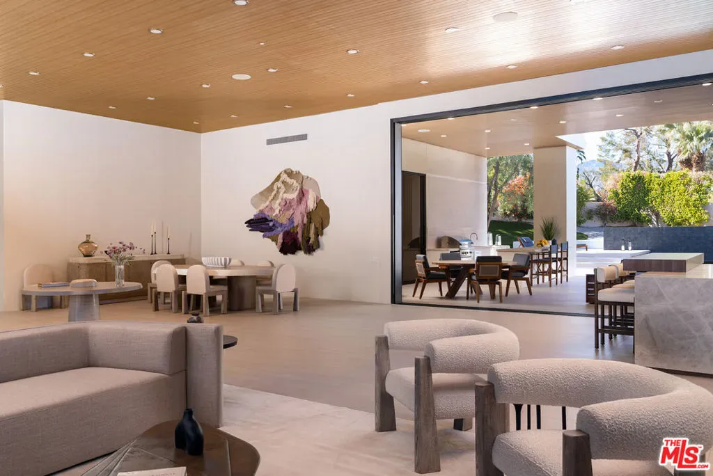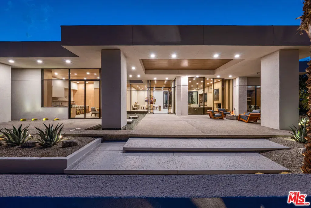 *U/C – STILL ENTERTAINING BACK UP OFFERS AND ALLOWING SHOWINGS* Located behind the gates of prestigious Ironwood Country Club, 73380 Agave Lane is a stunning architectural retreat and the debut residential showcase by Los Angeles based designer brand Olivya Stone. Reimagined with exceptional craftsmanship, the home blends timeless desert architecture by Ross Stout with refined modern living. Walls of glass and 14′ ceilings frame breathtaking east-west mountain views, filling the voluminous great room with natural light. Designed for effortless entertaining, the open layout integrates living, dining, and bar areas with a 12′ retractable glass wall that opens to a resort-style outdoor experience featuring a dark-bottom pool, 12-person spa, outdoor kitchen with grill and pizza oven, putting green, sun deck, and nearly 1,000 sq. ft. of covered living space. The chef’s kitchen with Wolf, Thermador, and Miele appliances captures an iconic view of Eisenhower Mountain from the breakfast lounge. The primary suite offers a private sanctuary with soaring ceilings, bronze-clad fireplace, spa-scale bath, massive walk-in closet, massage room, and direct pool access. Two additional guest suites, a den with dry bar, and a detached guest casita with living room, bedroom, and luxurious bath complete the property. Within the guard-gated community, residents enjoy two championship golf courses, tennis, pickleball, spa, fitness, and fine dining. Perfect as a full-time residence or sophisticated desert pied–terre, this home embodies the essence of luxury desert living just moments from El Paseo, private airports, and the world-class amenities of Palm Desert and Palm Springs.
