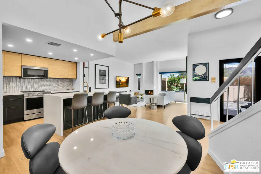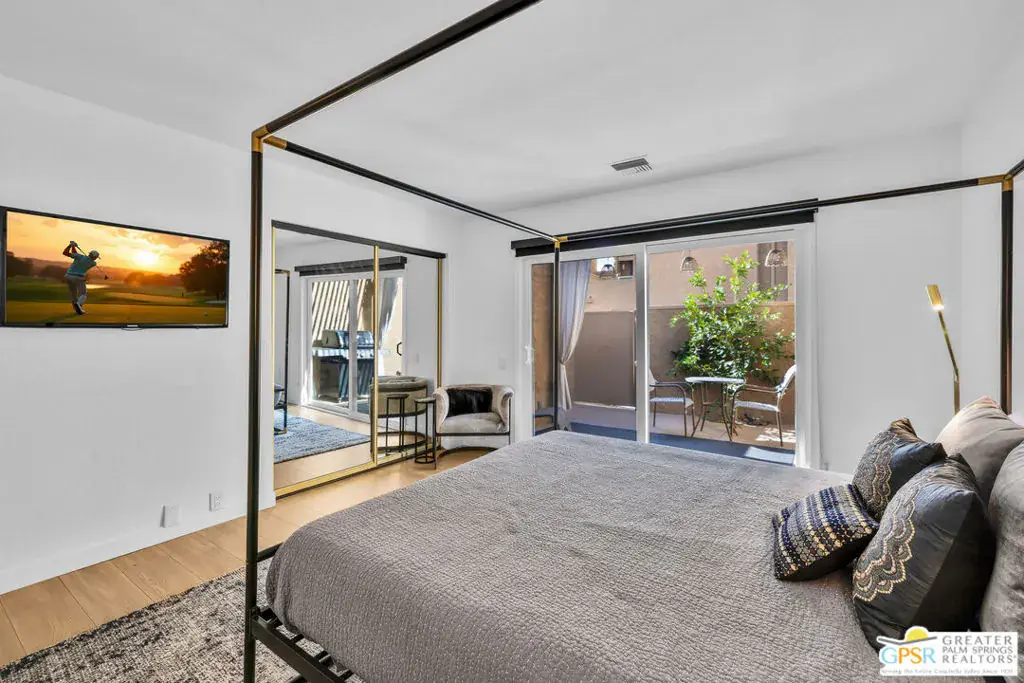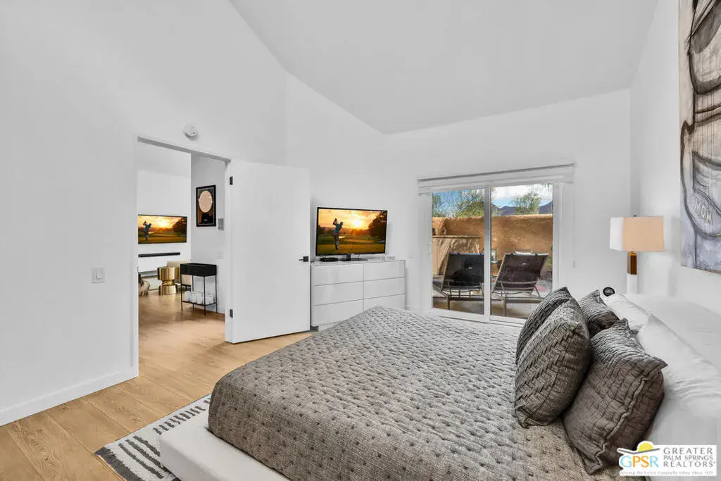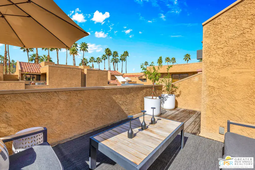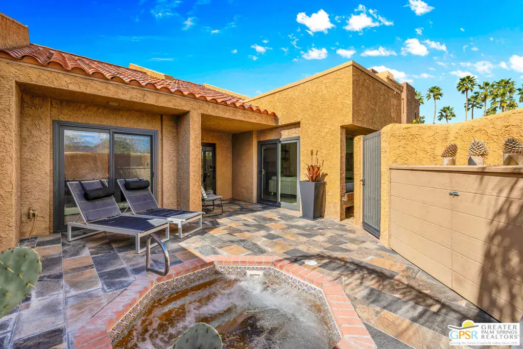 Tucked within the prestigious gates of Ironwood Country Club, this beautifully updated and turnkey-furnished residence offers an exceptional opportunity to enjoy refined desert living in one of the valley’s most sought-after communities.This thoughtfully designed two-bedroom plus loft, two-bath condominium spans approximately 1,426 square feet and offers privacy, comfort, and an ideal separation of living spaces. If you’re searching for canyon views you’ll find them here. Just outside the primary ensuite, a private courtyard invites relaxation with your own heated in-ground whirlpool spa. The guest bedroom enjoys its own secluded patio, while upstairs, the loft opens to a rooftop sun deck perfectly positioned for morning coffee, afternoon sunshine, and unforgettable desert evenings under the stars.This home is truly more than turnkey it is exquisitely appointed and exceptionally well equipped. High-end furnishings, curated decor, quality linens, fine dishes, utensils, and small appliances create a seamless, move-in-ready experience. Meticulously maintained, the property features numerous updates, including HVAC, windows, and appliances in recent years. The light-filled interior reflects a sophisticated eye for design, and a private two-car garage provides rare and valuable convenience.Ironwood Country Club is celebrated for its dramatic mountain backdrop, championship golf, and welcoming club atmosphere. Members enjoy access to two 18-hole golf courses, tennis and pickleball courts, a fitness center, clubhouse dining, and beautifully maintained grounds all just moments from the world-class shopping and dining of El Paseo. Whether seeking an active lifestyle or a serene desert retreat, Ironwood offers the perfect balance of elegance, recreation, and location.The HOA includes gated security with patrol, exterior building maintenance and landscaping, structure insurance, trash service, high-speed internet and cable television, as well as twice-weekly spa service providing peace of mind and effortless ownership.Here, you enjoy the warmth of the desert sun by day and brilliant starlit skies by night.