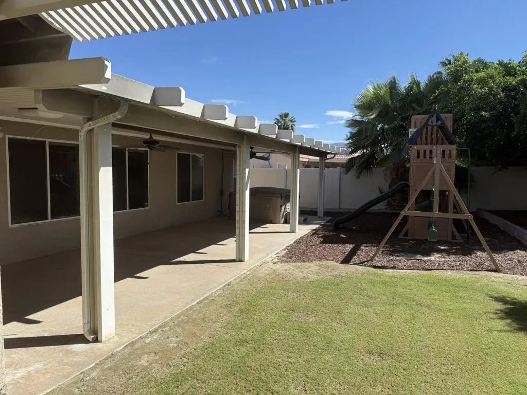Best value in Palm Desert! This 4 bedroom home is tucked away on a quiet street yet just moments from Frank Sinatra Drive, shopping, dining, and all the best of desert living.Inside, you’ll find a stylishly updated kitchen with quartz waterfall countertops and modern backsplash, along with newer A/C systems and ceiling fans throughout for year-round comfort.The spacious backyard offers exceptional privacy and features an Alumawood patio cover, perfect for entertaining, relaxing, or enjoying warm desert evenings.If you’ve been waiting for an affordable 4 bedroom in Palm Desert, this is the one!