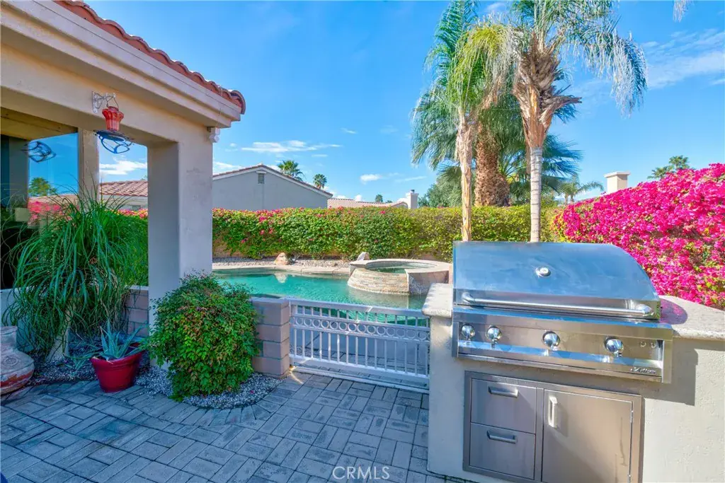 Welcome to this beautifully appointed single-story home in the highly sought-after gated community of Lantana in Palm Desert. This gorgeous and meticulously maintained home is perfectly positioned on a rare, sprawling lot within a peaceful cul-de-sac. This stunning home blends indoor-outdoor living to its finest with an entertainer’s dream backyard, featuring 2,500 sqft, 3 bedrooms, 2.5 baths, and a 2-car garage with lots of storage. The