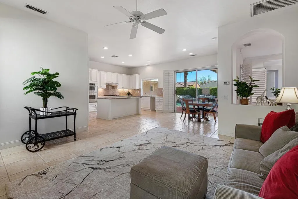Recently reduced! Spacious Desert Retreat with Casita in the Heart of Palm Desert’s Lantana Community. Welcome to your private oasis in the prestigious gated community of Lantana, perfectly situated on a prime corner lot in central Palm Desert–just minutes from world-class shopping, dining, golf, and entertainment. Step through a gated front courtyard into a resort-style setting where a sparkling pool and spa are surrounded by lush landscaping and multiple access points to the home. The standout feature: a detached casita with its own entrance and full bath–ideal for guests, extended family, or a private home office. Inside the main residence, you’ll find the largest floor plan in Lantana, offering 4 bedrooms, 4 bathrooms, and a dedicated office/den. The formal living and dining rooms are bright and spacious, with a built-in wet bar and seamless access to both the backyard and the central courtyard–creating an effortless indoor-outdoor flow for entertaining. Enjoy your own personal putting green, a tranquil water feature, and a BBQ in the beautifully landscaped backyard. The open-concept great room includes a cozy fireplace, a generous kitchen with breakfast nook, and sliding doors to the courtyard pool–perfect for everyday comfort or hosting friends. The luxurious primary suite serves as a serene retreat with its own fireplace, sitting area, large walk-in closet, and spa-like ensuite bath. Guest bedrooms and the office/den are thoughtfully positioned on the opposite wing for added privacy. A three-car garage completes this exceptional home, offering ample storage and convenience. Don’t miss this rare opportunity to own one of the most desirable homes in Lantana–complete with a casita and all the space you need to live and entertain in style.