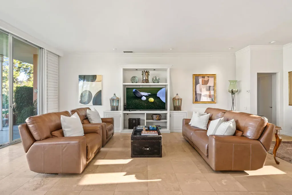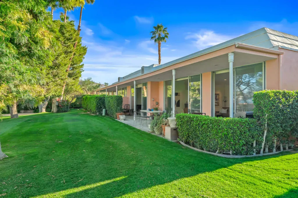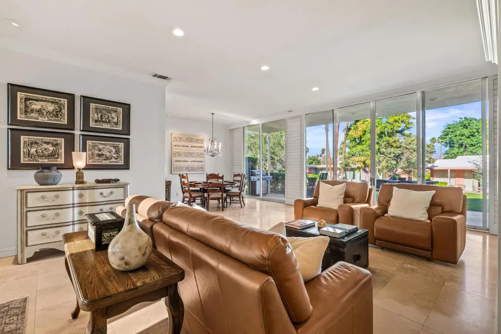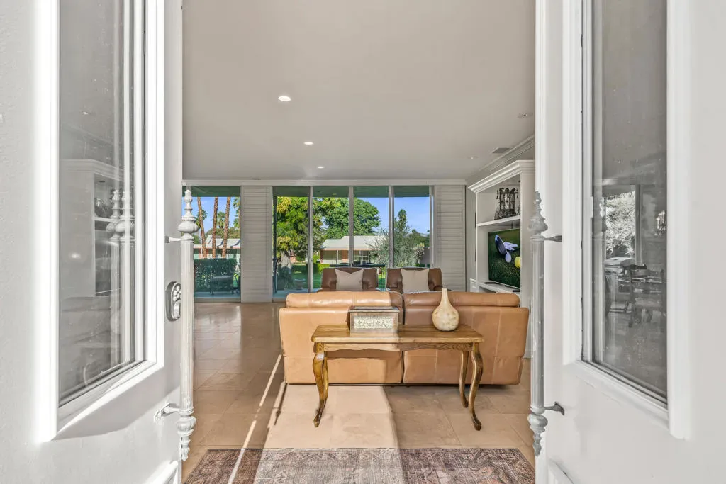 Best entry opportunity at Marrakesh–beautifully remodeled Expanded A-Plan with rare attached casita, move-in ready and thoughtfully priced to help offset the one-time club affiliation fee required for all homeowners.Welcome to Marrakesh Country Club, one of Palm Desert’s most architecturally distinctive gated communities. In late 2025 the community was designated a historic district by the Palm Desert City Council, recognizing its cohesive Hollywood Regency design and cultural significance. Created by renowned architect John Elgin Woolf, Marrakesh is celebrated for its iconic pink residences, elegant symmetry, and timeless architectural style. This beautifully remodeled Expanded A-Plan residence offers generous living space, refined finishes, and seamless indoor-outdoor living. Enter through classic white double doors into a dramatic living room with soaring 10-foot ceilings, travertine flooring, and expansive sliders opening to tranquil greenbelt views with mountain glimpses beyond. The updated kitchen features quartz countertops, stainless-steel appliances, custom cabinetry, and a concealed walk-in pantry with a second refrigerator, ideal for effortless entertaining.The primary suite is a true retreat, complete with a private office nook and a spa-inspired bath finished in travertine marble with a walk-in shower. Additional features include a powder room and full laundry room. A rare highlight is the attached private casita with its own entrance, ensuite bath, and oversized closet–one of only ten homes in Marrakesh with this configuration, perfect for guests, creative space, or a private office. Outdoor living includes a front patio framed by mountain views and a rear terrace overlooking the lush greenbelt, offering privacy while safely set back from golf play. Set across 155 acres of beautifully landscaped grounds, Marrakesh features 364 residences, 14 pools, and an opulent clubhouse recently transformed through a $15 million renovation, creating one of the desert’s most stylish and socially vibrant club communities Move-in ready and easy to show–an exceptional opportunity to own in Palm Desert’s newly designated historic Marrakesh Country Club.