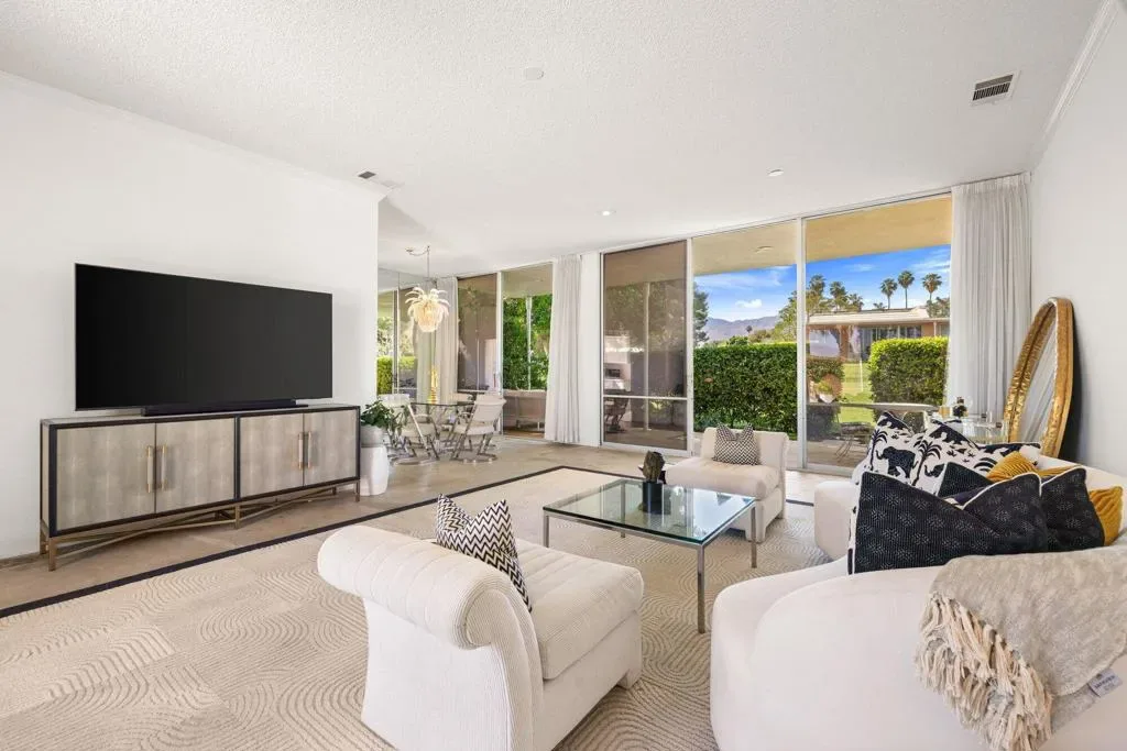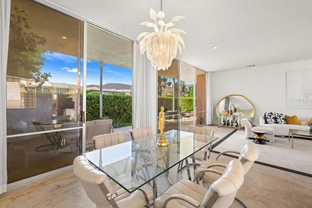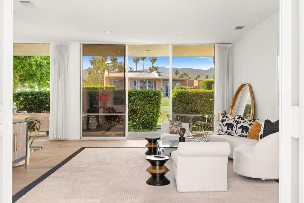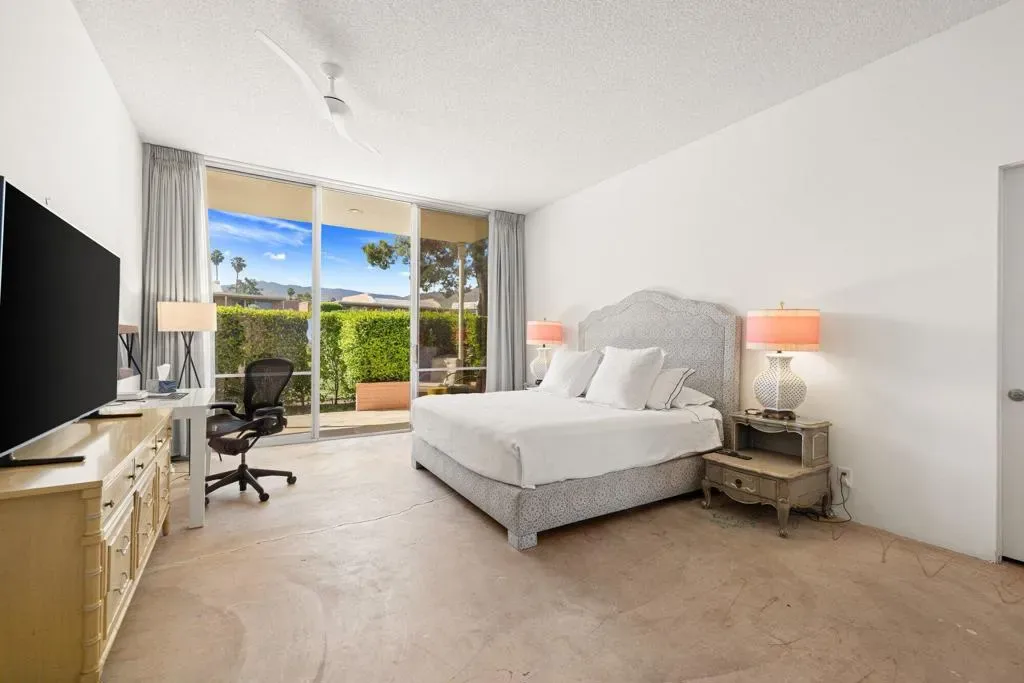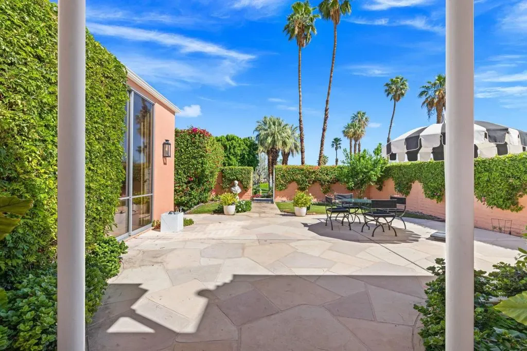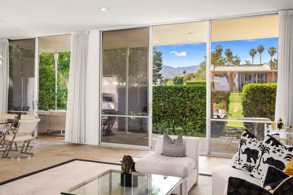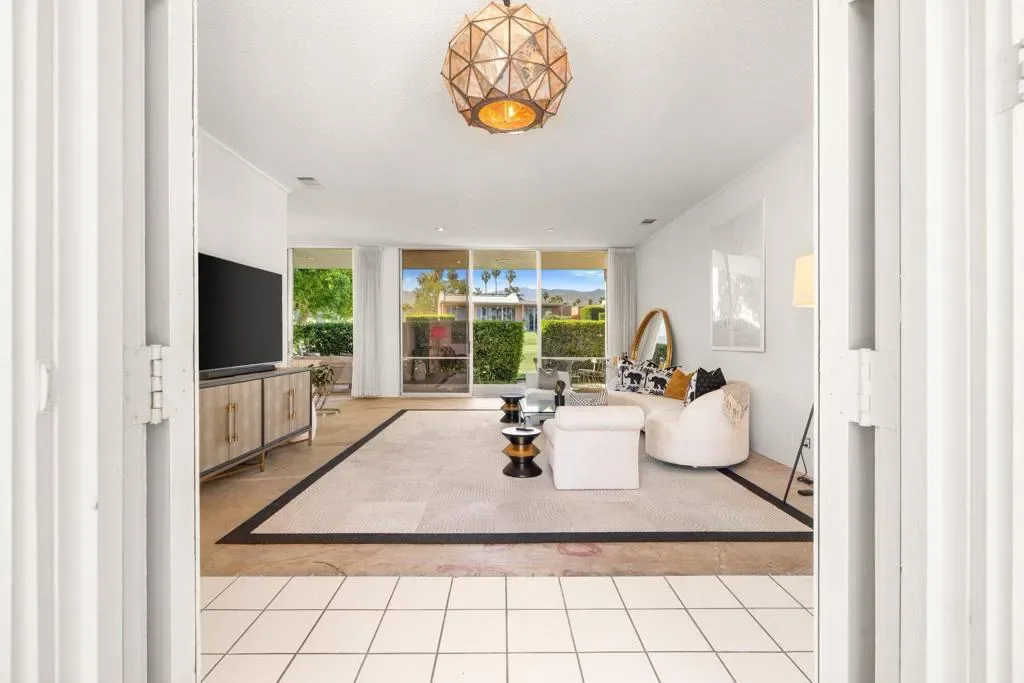 Situated in historic Marrakesh Country Club, this charming John Elgin Woolf-designed Hollywood Regency villa is brimming with potential and offers a rare opportunity to obtain a renovation project within Marrakesh. Ideally situated on a large, elevated corner lot offering open mountain views from the expansive courtyard and beyond, this property is a true find. Once inside via the iconic Marrakesh double Pullman entry doors, you will find this light-filled two-bedroom, two-bathroom, 1,808 sq. ft. B Plan residence ready for your personal vision. Soaring 10′ ceilings and abundant natural light create an inviting foundation for reimagining.The light and bright kitchen showcases beautiful mountain views from the window and offers open-door access to the courtyard. The expansive courtyard serves not only as a grand entry but as an ideal airy outdoor living space. A newly landscaped south-facing terrace, complete with privacy hedges, overlooks the golf course and delivers gorgeous mountain views.The primary suite features a walk-in closet and classic marble counters, while the guest suite includes a versatile retreat space that can be used as a home office or extra sleeping area. Additional highlights include installed solar.Marrakesh is a boutique country club with an ideal central valley location amongst a few of the desert’s finest private clubs. Amenities include an 18-hole private executive Ted Robinson designed golf course, tennis, pickleball, 14 pools and spa, a fitness center, and an active and newly-remodeled clubhouse with fine dining. Just minutes away is renowned El Paseo, lined with elegant boutiques, restaurants, art galleries, and coffee shops. Come experience Marrakesh–schedule your private tour of 73597 Minzah today.