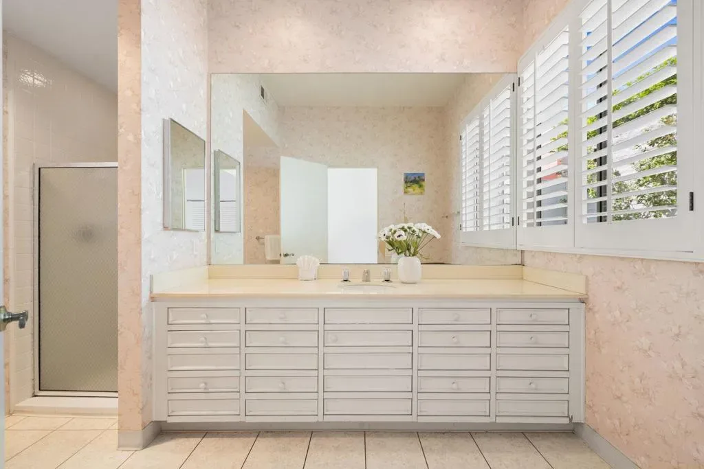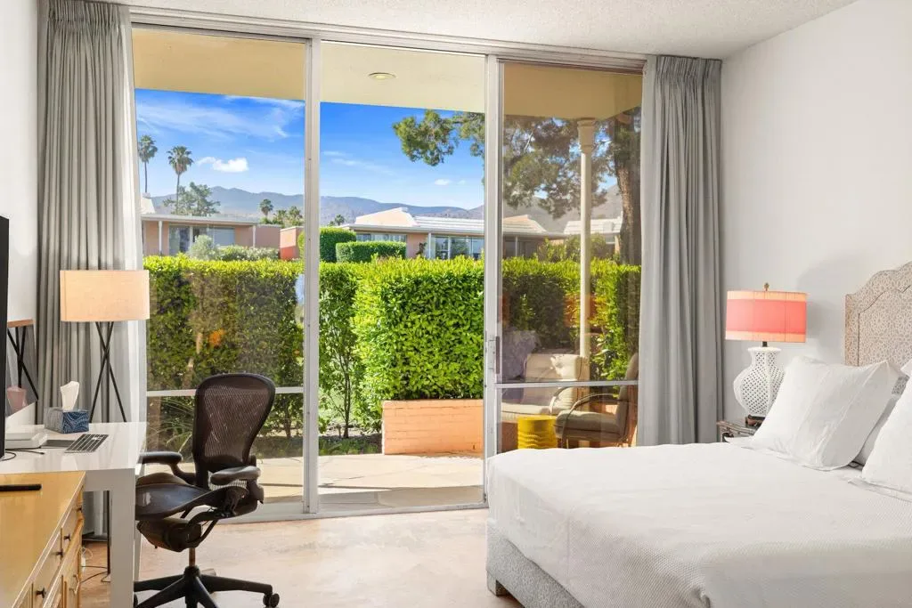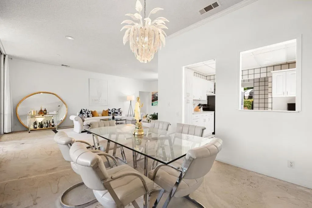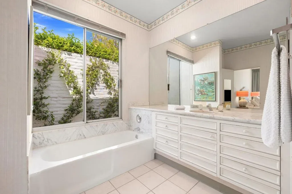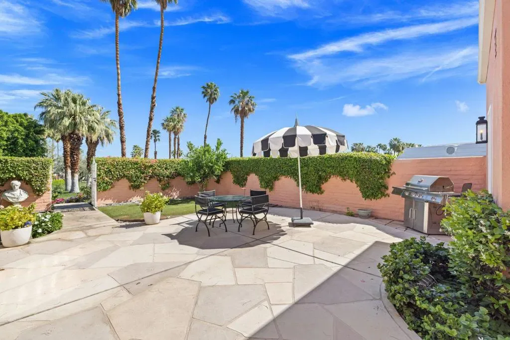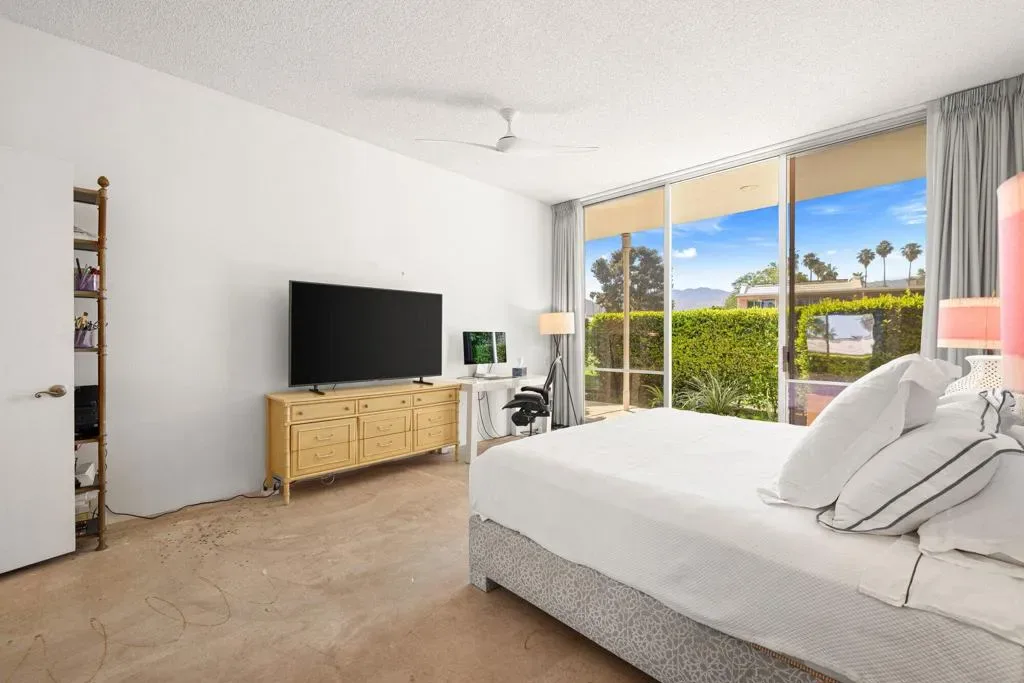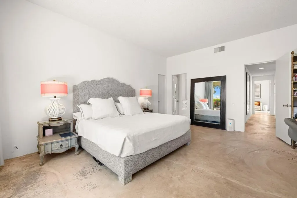 Situated in historic Marrakesh Country Club, this charming John Elgin Woolf-designed Hollywood Regency villa is brimming with potential and offers a rare opportunity to obtain a renovation project within Marrakesh. Ideally situated on a large, elevated corner lot offering open mountain views from the expansive courtyard and beyond, this property is a true find. Once inside via the iconic Marrakesh double Pullman entry doors, you will find this light-filled two-bedroom, two-bathroom, 1,808 sq. ft. B Plan residence ready for your personal vision. Soaring 10′ ceilings and abundant natural light create an inviting foundation for reimagining.The light and bright kitchen showcases beautiful mountain views from the window and offers open-door access to the courtyard. The expansive courtyard serves not only as a grand entry but as an ideal airy outdoor living space. A newly landscaped south-facing terrace, complete with privacy hedges, overlooks the golf course and delivers gorgeous mountain views.The primary suite features a walk-in closet and classic marble counters, while the guest suite includes a versatile retreat space that can be used as a home office or extra sleeping area. Additional highlights include installed solar.Marrakesh is a boutique country club with an ideal central valley location amongst a few of the desert’s finest private clubs. Amenities include an 18-hole private executive Ted Robinson designed golf course, tennis, pickleball, 14 pools and spa, a fitness center, and an active and newly-remodeled clubhouse with fine dining. Just minutes away is renowned El Paseo, lined with elegant boutiques, restaurants, art galleries, and coffee shops. Come experience Marrakesh–schedule your private tour of 73597 Minzah today.