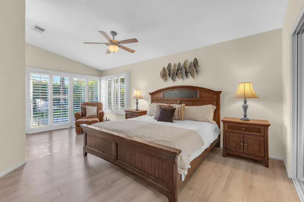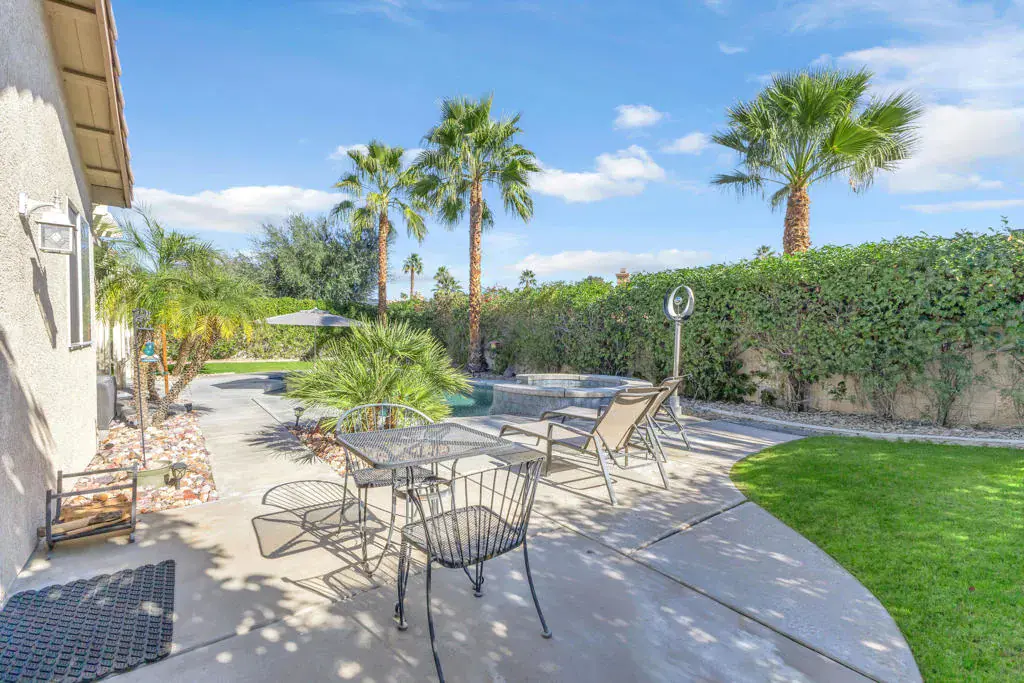 Seasonal – Available Jan, Feb, March, April and MAY- Private Pool & Designer Decorated: This upgraded, designer decorated 3 BD + office 2 bath home with private POOL, Gated Community and centrally located in one of the most desirable locations in the Valley. Merano is one of the most sought after communities in the desert. The upgrades include roll down solar shades, tile & wood floors, covered patio, commercial misting system, Pebble Tec saltwater pool & spa. This back yard feels like your own private Oasis. Minutes to public Tennis, Pickle Ball, and Hiking Trails. Check out the community Center at Palm Desert Civic Center Park and resident GOLF at Desert Willow. Walk to Bristol Farms, freeway close, 1 mile to Eisenhower Medical Center, 3 miles to dinning and shopping on El Paseo (The Rodeo Drive of the Desert) So much to do and see in Palm Desert! Super cute and turnkey furnished ready for your vacation or Long term stay. Price is for a Yearly rental call us for Snowbird Rates (varies by the time of year and number of months!)