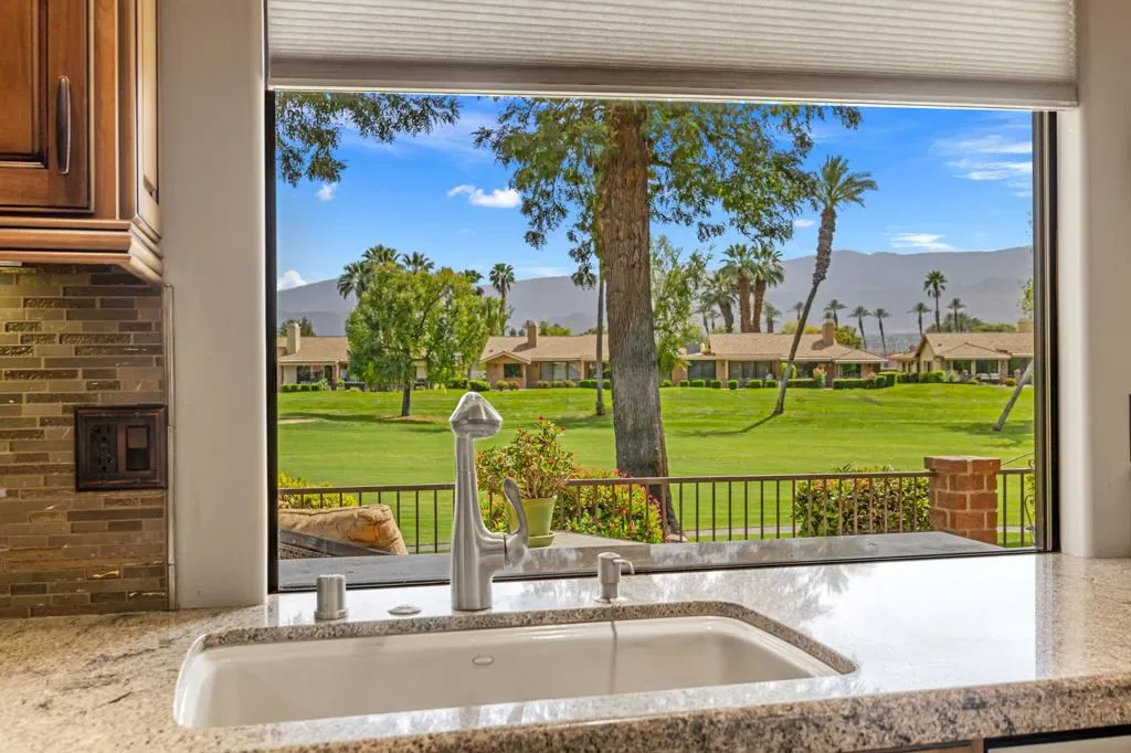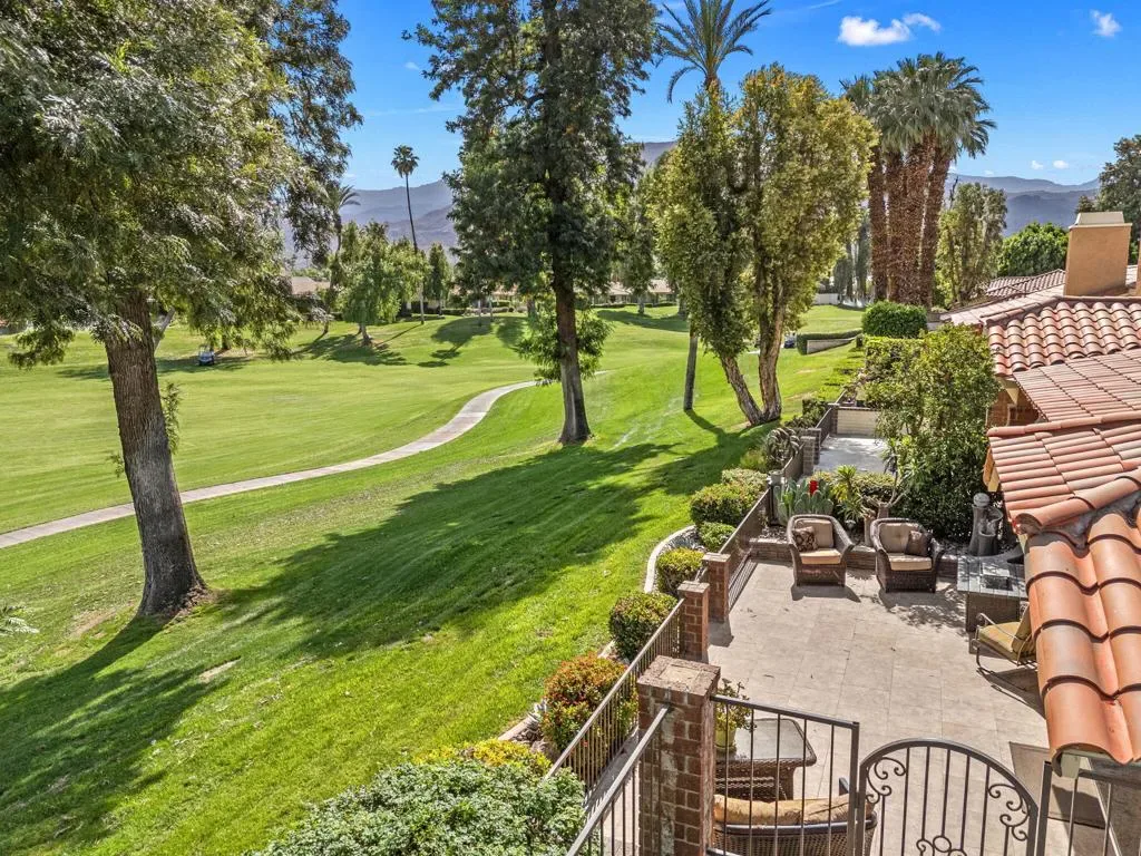 A Perfect 10! This spectacular 3000 Plan with private side yard checks all the boxes! Ideally situated at the end of a quiet cul-de-sac, the elevated lot enjoys panoramic Southern mountain and golf course views. This home features two spacious bedrooms plus a large den with dedicated office area. The interior has been updated from top to bottom with high end materials used throughout. It’s offered turnkey furnished and designer decorated. The private side yard is beautifully landscaped and is perfect for your pets as well as entertaining. It includes a built in barbecue and private outdoor shower. The rear patio has been extended and includes retractable awnings. The interior features slab granite countertops and custom cabinetry and built-ins throughout. One of Monterey’s 37 community pools and spas is just steps away. If you’re looking for perfection, this home is it! Monterey Country Club features 27 holes of championship golf, pickleball, tennis, bocce and fitness center. A full service clubhouse offers a packed calendar of social events. Come discovery why our residents say Monterey Country Club is the best kept secret in the desert!