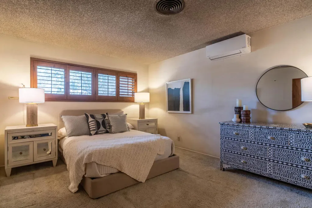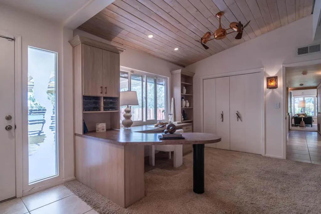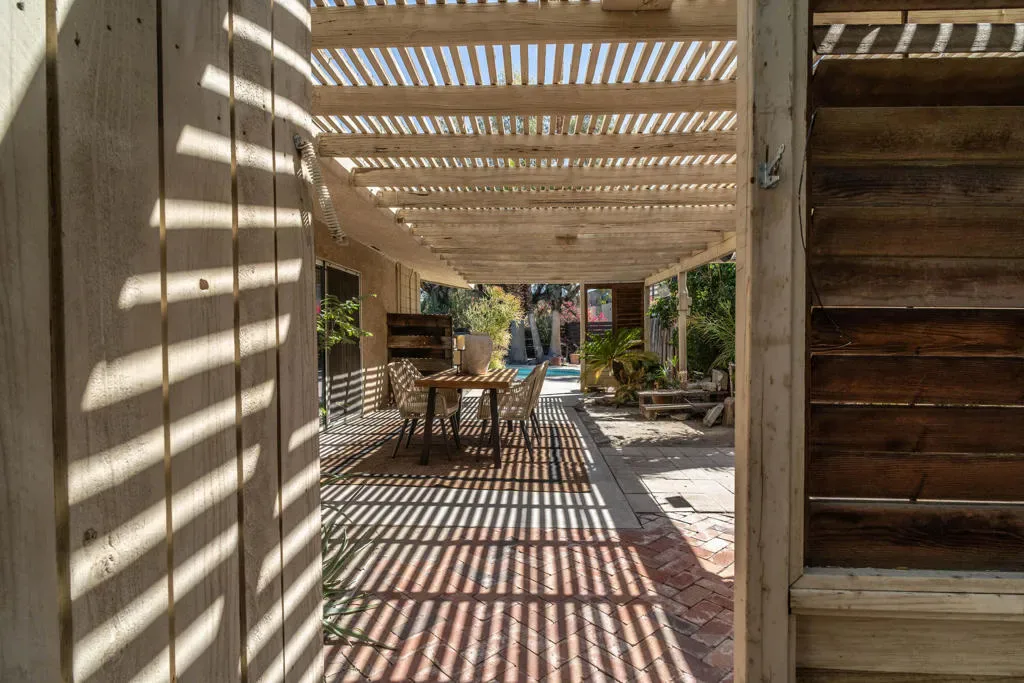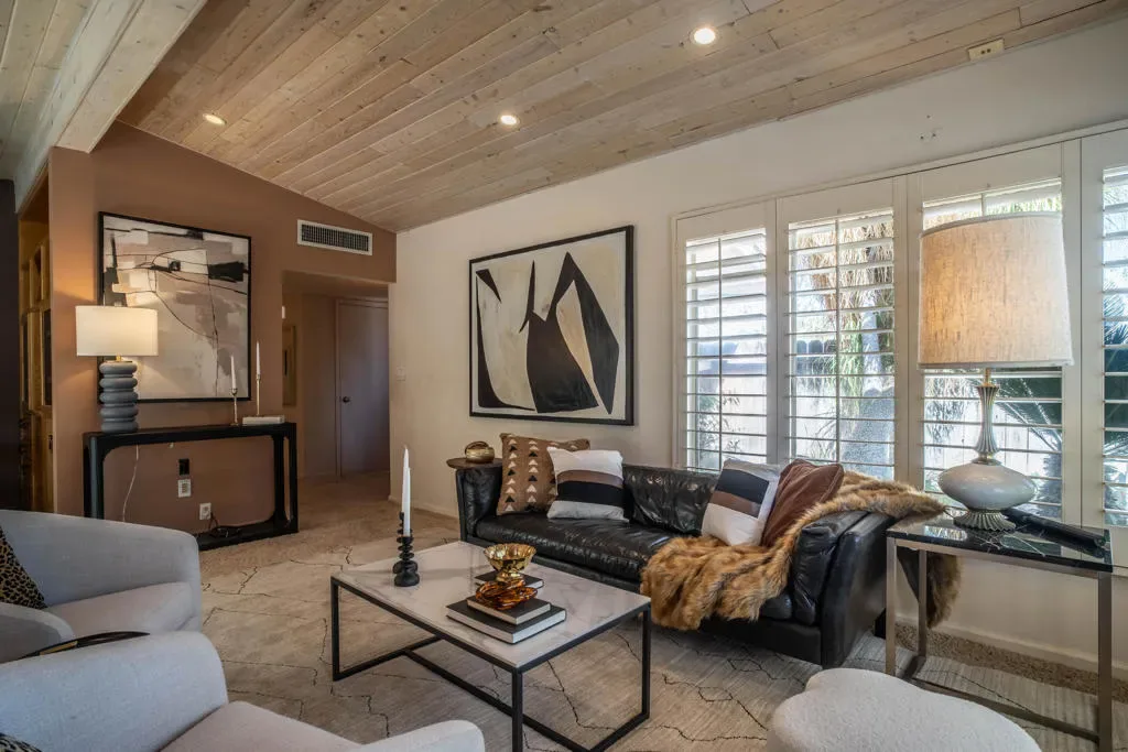 First time on the market, this beautifully maintained ranch-style home offers a rare blend of comfort, charm, and convenience. Featuring three bedrooms and two and a half bathrooms, the thoughtful floor plan provides separation between bedrooms and living spaces, perfect for privacy and functionality. The living room is a showstopper with soaring high ceilings, exposed beams, and a cozy brick fireplace, creating a warm and inviting space for gatherings or quiet evenings at home.The updated kitchen is a chef’s dream, complete with dual sinks, ample counter space, and all the modern conveniences a cook could desire. An ample office space with a separate entrance provides flexibility for remote work, study, or creative projects. The primary suite is a serene retreat, featuring its own fireplace, walk-in closet, and an updated bathroom with a luxurious walk-in shower.Step outside to your private desert oasis: a beautifully landscaped pool area and a wraparound patio offer the perfect setting for entertaining, relaxing, or enjoying the starry desert nights. The property provides a seamless indoor-outdoor lifestyle, ideal for enjoying Palm Desert’s perfect climate. The long, spacious driveway can accommodate RVs, Airstreams, and multiple vehicles with ease.Located in an established, highly desirable neighborhood, this home is just blocks from everyday conveniences. A short drive south brings you to the iconic El Paseo shopping and dining district, while heading west leads to the San Pablo Corridor — Palm Desert’s vibrant city center connecting residential neighborhoods with City Hall, College of the Desert, Civic Center Park, the McCallum Theater, and a wide array of shops and restaurants.With its high ceilings, exposed beams, cozy fireplaces, Plantation shutters throughout the home, modern updates, private pool, and prime location, this home perfectly combines desert charm and convenience. With a little TLC, it’s ready to become a comfortable and inviting place to call home, offering both indoor and outdoor spaces that can be enjoyed year-round. This property is a rare opportunity to enjoy the quintessential Palm Desert lifestyle at its finest.