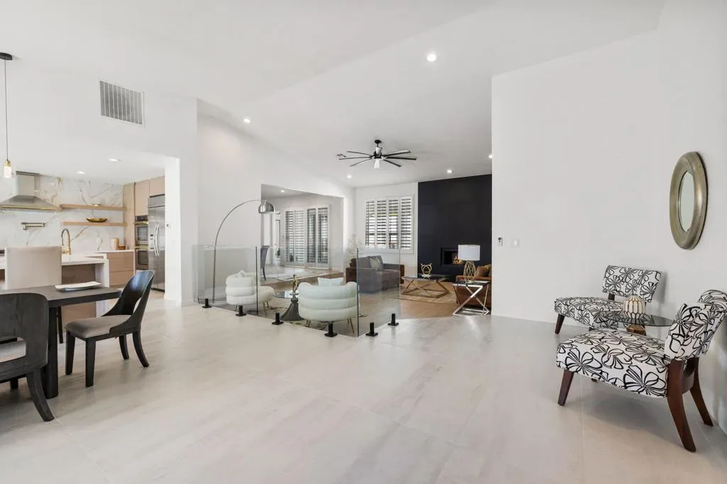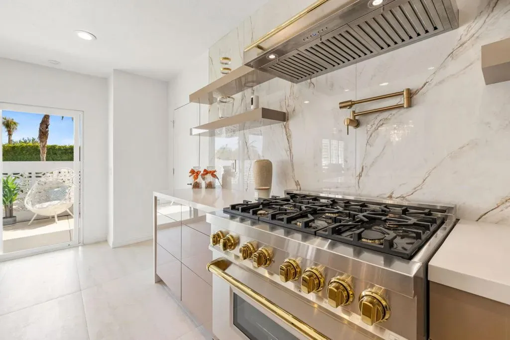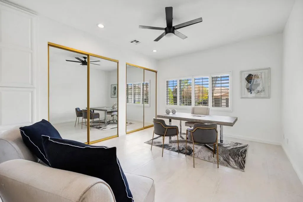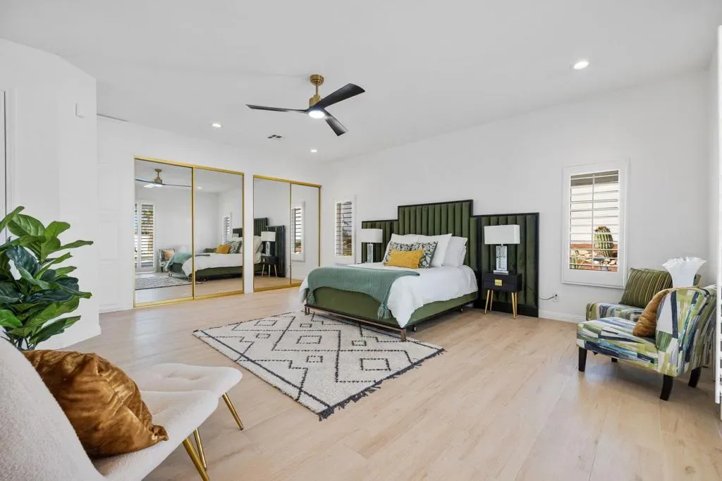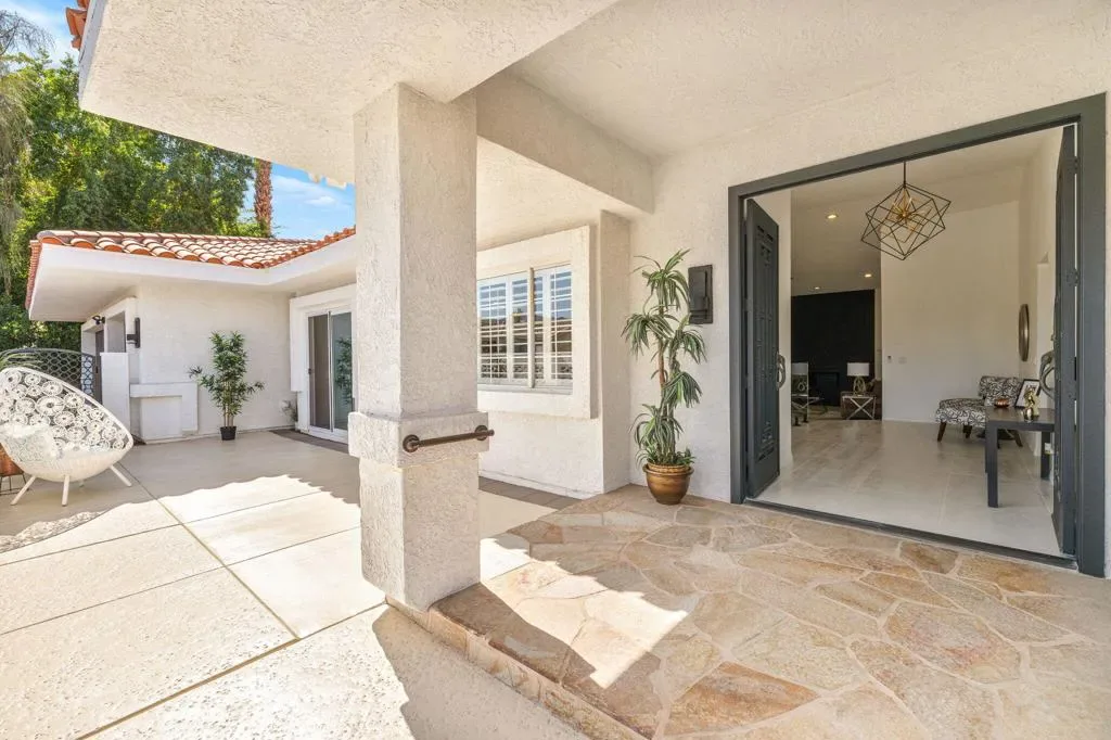 Welcome to this thoughtfully remodeled 3-bedroom, 3.5-bath entertainer’s paradise located in the highly sought-after no HOA South Palm Desert neighborhood.This home boasts an open floor plan perfect for both relaxation and entertaining, and it comes equipped with solar panels, offering energy efficiency and reduced utility costs.The chef’s dream kitchen is the centerpiece of the home, featuring custom cabinetry, brand new stainless steel appliances with bronze finishes, a large 6-burner stove, electric convection oven, double island with bar seating, and a custom microwave drawer. Direct access to the private, gated front courtyard makes indoor-outdoor entertaining seamless.The home boasts two spacious suites – a luxurious master and a junior suite along with a third bedroom- each featuring its own en suite bathroom. The living room flows effortlessly into the large family room featuring a bar and powder room, creating the perfect space for entertaining. The laundry room is designated to accommodate a stacked washer/dryer unit. The backyard exemplifies the California lifestyle with a putting green, covered patio, and plenty of room for lounging by the pool and spa.Located just minutes from highly rated Washington Charter School, El Paseo shopping, Westfield Mall, Whole Foods, and more, this home truly has it all!