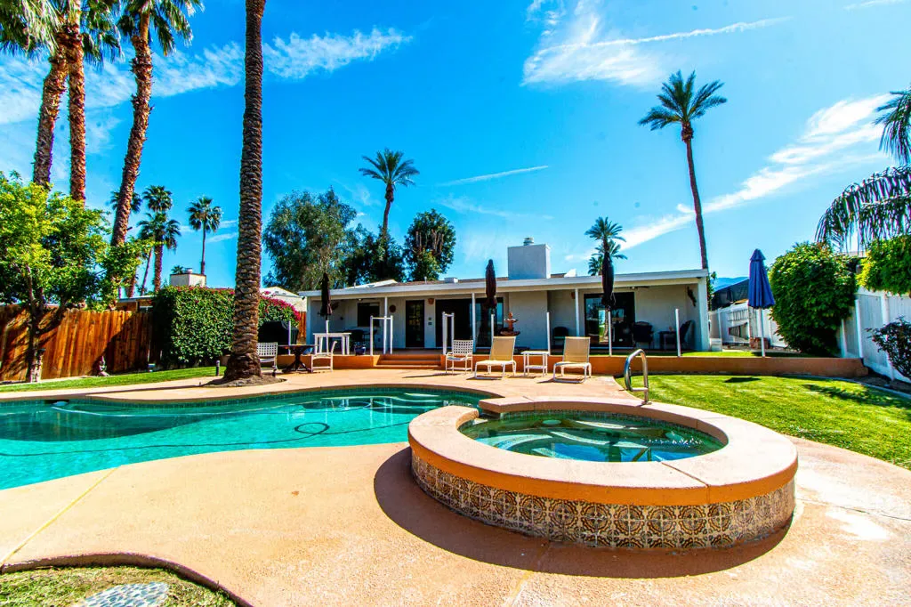 Welcome to this beautifully updated Palm Desert home where indoor/outdoor living comes to life.Located just minutes from El Paseo, The Shops on San Pablo, and The College of the Desert. This single-level 3-bedroom, 2-bath residence offers a bright open floor plan. The remodeled kitchen features white cabinetry, quartz countertops, and stainless-steel appliances, opening to spacious living and dining areas with sliding doors that frame beautiful mountain views. The primary suite offers backyard access and pool views, while two additional bedrooms provide space for guests or a home office.Step outside to a private resort-style backyard with a sparkling pool, spa, and towering palms–perfect for relaxing, entertaining, and enjoying the Palm Desert lifestyle.