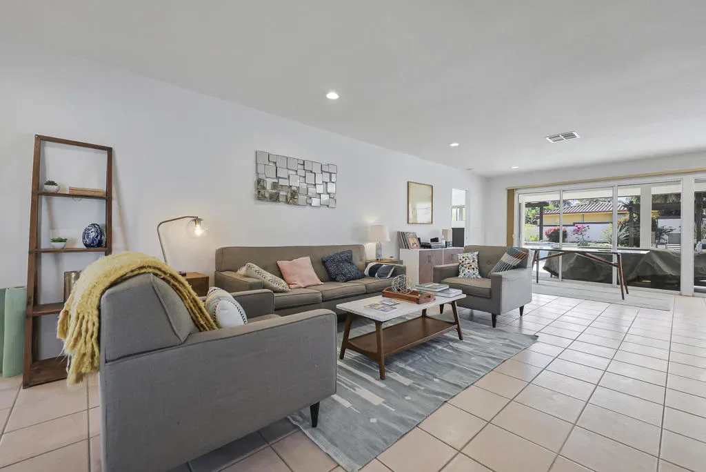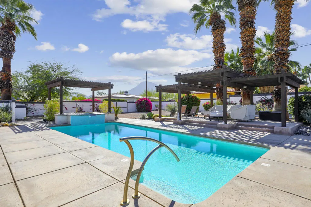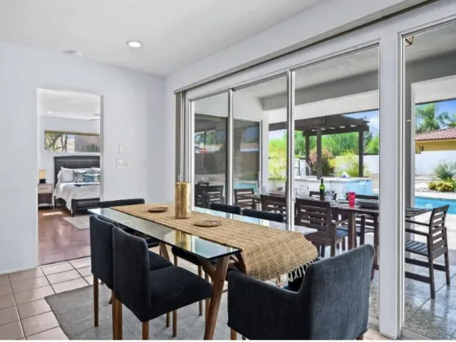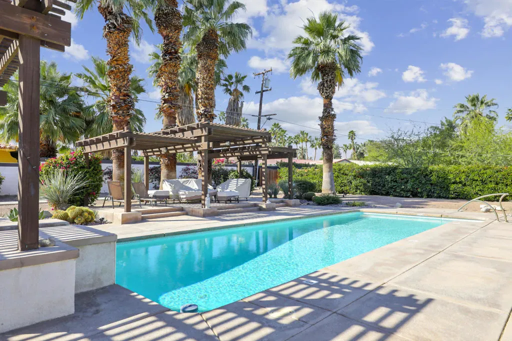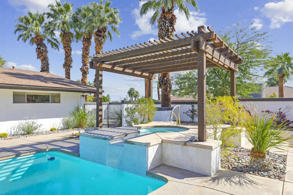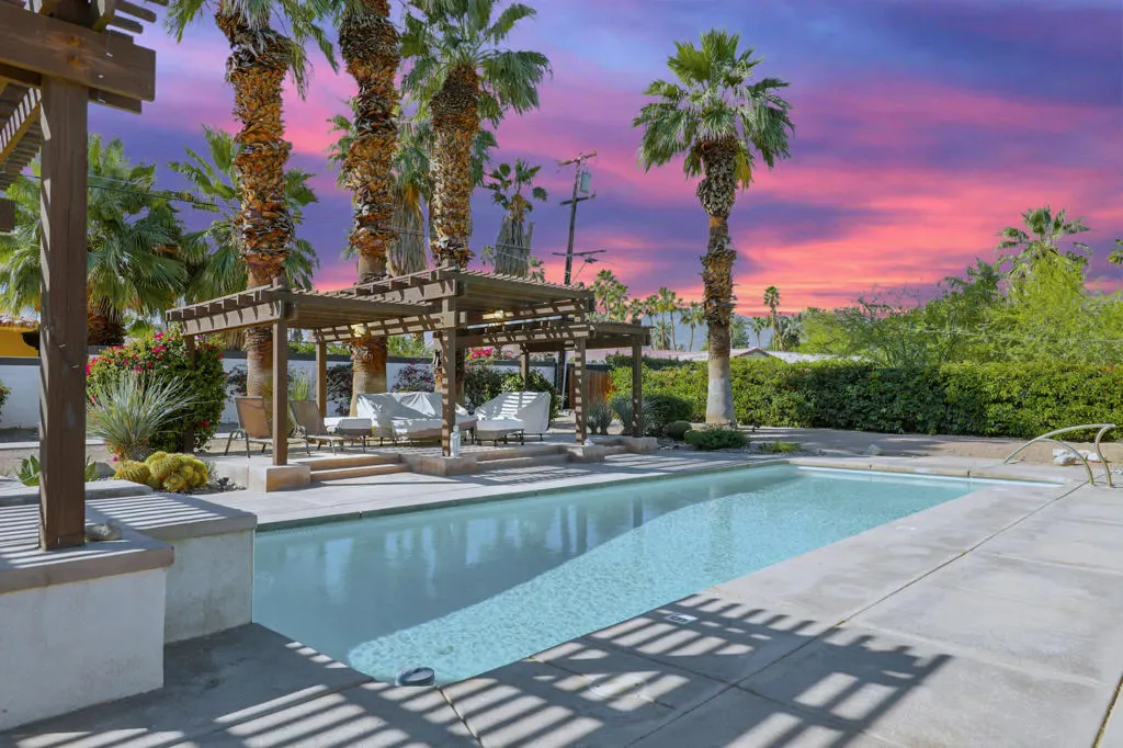 This one checks ALL the boxes!!! Prime location in sought-after prestigious neighborhood of SOUTH PALM DESERT! This spacious Mid-Century Modern 3-bedroom 3-bathroom ( all with walk in closets) is on a large 14520 square foot (1/3 acre).lot. Beautifully maintained by the discerning homeowner, retaining the originality of yesteryear, the 2,156 square-foot home is conveniently located near El Paseo with its fine-dining options and shopping, It boasts spectacular views from the large patio-shaded backyard outdoor living area, with backyard access from the dual master bedrooms. Not to be missed is the picturesque full-size slider window in the living room, with unobstructed Southerly views and the renovated 1960’s pool and waterfall spa. There is a side gate for RV parking or a potential ADU for someone looking to build on for guests aging parents, or rental income. All three bedrooms have ensuite bathrooms and expansive walk-in closets. The stacked rock fireplace and sunken tubs is a time capsule for architects like Burns, Meiselman and Wexler in the 1960.s. The back yard and pool area is exactly what the desert lifestyle is all about!!! NO HOA , easy to show!!
