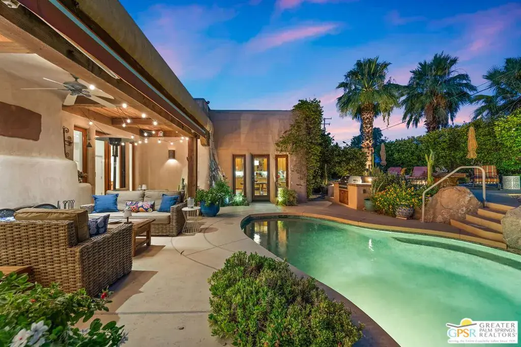 *** Monthly Rates: 9,000 per month for November / $10,000 per month for December / $12,000 per month from January to April / $7,500 per month from May to October. Availability: Starting 4/01/2026 through 12/31/2026, then again on 3/02/2027, through the rest of the 2027/2028 Season. *** Charming Southwestern Retreat in South Palm Desert Perfect for entertaining! Discover your new home away from home at 72689 Beavertail St, an exquisite adobe-style retreat nestled in the heart of South Palm Desert. Just moments from the renowned El Paseo, this residence offers the perfect blend of character and convenience for those seeking a memorable seasonal escape. Step inside to be greeted by the warmth of Southwestern charm. The home features captivating log ceiling beams, a stunning statement fireplace, and vibrant saltillo tiles that infuse every room with a unique personality. With four bedrooms, including one thoughtfully designed as an office with a Murphy bed and sofa bed, there’s plenty of space for everyone. Three of the bedrooms come equipped with Apple TV and Sonos sound systems, providing entertainment at your fingertips. The master suite is a true sanctuary, offering direct access to the tranquil backyard patio, a luxurious remodeled bath, and an oversized master walk-in closet. The heart of the home is the beautifully appointed kitchen, recently enhanced with premium upgrades that combine timeless Southwestern style with modern sophistication. Sleek Caesarstone quartz countertops and a coordinating tile backsplash create a durable, elegant workspace that’s both stylish and effortlessly maintainable. A generous Kohler farmhouse sink with a professional-grade faucet brings classic charm and superior functionality, while the built-in reverse osmosis filtered water system delivers pure, refreshing water on demand. High-end appliances make cooking and entertaining a pleasure: a reliable KitchenAid stove anchors the space, paired with a convenient built-in wine and beverage fridge for effortless hosting. New pendant lights add a warm, inviting glow, completing this chef-inspired retreat that perfectly complements the home’s inviting ambiance. The terraced backyard is an entertainer’s dream, boasting picturesque mountain views, a beach entry pool, spa, and a cozy covered patio with an outdoor fireplace. Enjoy evenings around the sunken fire pit, surrounded by lush, mature landscaping featuring citrus trees and dedicated cactus, rose, and rosemary gardens. For added fun and convenience, the home includes bikes for your use and a ping pong table. The garage, equipped with its own AC unit, ensures your comfort in all seasons. This home is equipped with modern amenities to ensure comfort and ease . You will love the proximity to El Paseo’s shopping, dining, and cultural attractions, making this home an ideal base for exploring everything South Palm Desert has to offer. The beautiful yard and seamless indoor-outdoor living make this home a perfect retreat, especially at night, when the ambiance transforms into a magical oasis. Come and experience the charm and comfort of this one of a kind homeyour family’s perfect seasonal retreat awaits!