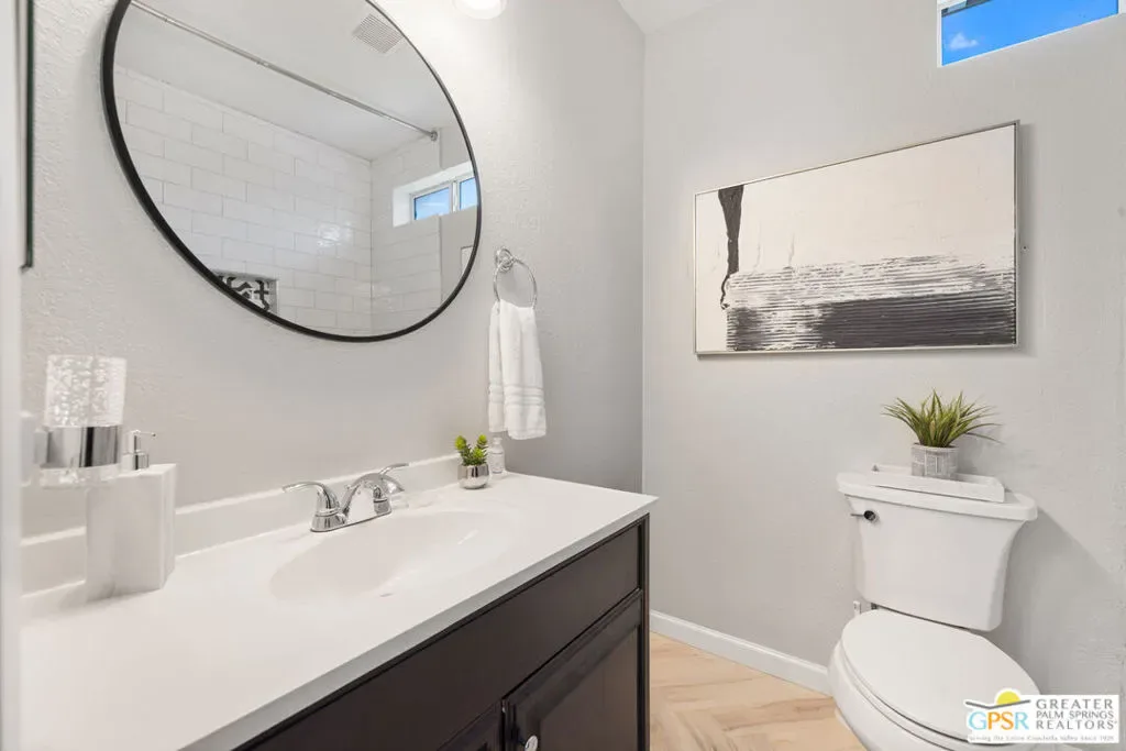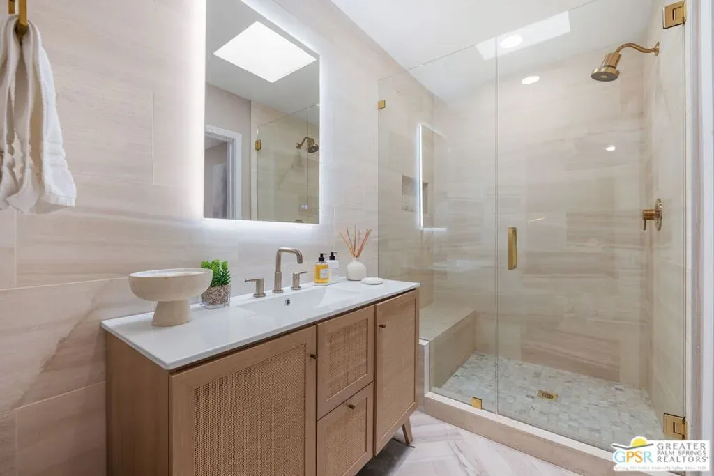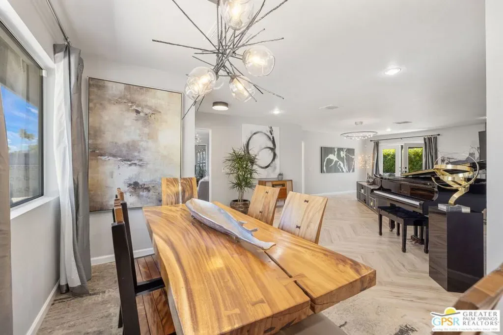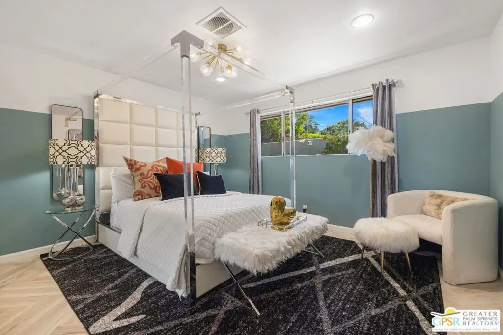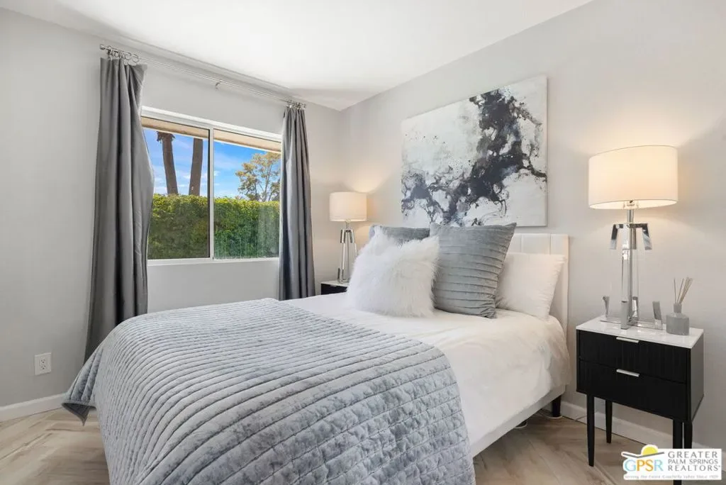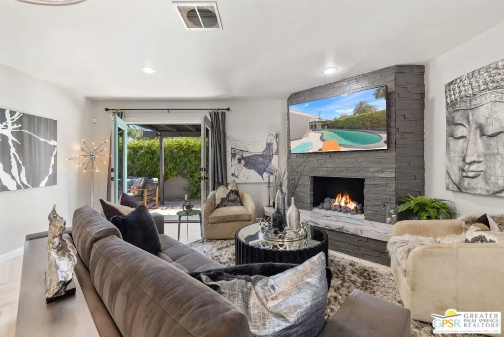 The ONE to see in South Palm Desert. A significant level of work and investment over the past 18 months sets this El Paseo adjacent property apart, where privacy, style, and income potential come together in a home that has been extensively improved throughout and beautifully dialed in. Ultra private and gated with mountain views and an iconic kidney shaped pool, this four bedroom layout includes a standout detached CASITA with a proven rental back story. Pride of ownership is felt throughout with a cohesive, modern finish. The main living areas flow beautifully with an updated fireplace and direct access to the poolside setting where outdoor living takes center stage. The kitchen, completely redone in 2025, anchors the home with clean lines and smart design, complemented by an adjacent laundry area. Bedroom separation works beautifully with all bathrooms remodeled. The primary ensuite opens to the pool with French doors framing mountain views, while the walk in closet has been elevated with custom built ins. On the opposite side of the home, guest bedrooms two and three are light and bright, with one currently styled as an office and positioned next to a full bath. The detached casita enjoys its own private entrance and patio access with a comfortable mix of living room, kitchenette, and sleeping area, ideal for guests, extended stays, or income producing use. Rooftop SOLAR with 32 panels is in place. Updated landscaping includes turf, new irrigation, and outdoor lighting. Notable additions and upgrades since mid 2025 include new flooring, all new lighting paired with an upgraded electrical panel, a modernist gate across the circular drive with epoxy finished driveway, privacy fencing with sliding gates, whole house interior paint, and a replaced HVAC compressor. El Paseo shopping and dining are just a few blocks away, putting the best of Palm Desert right at your fingertips.