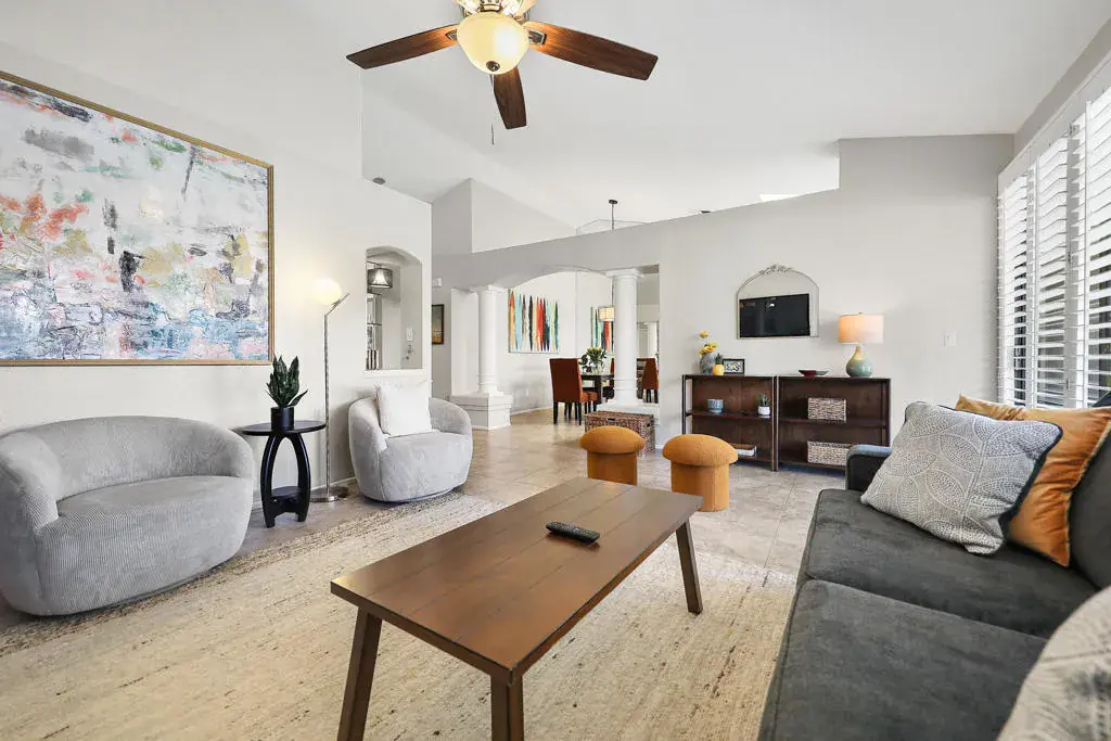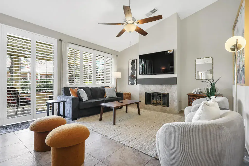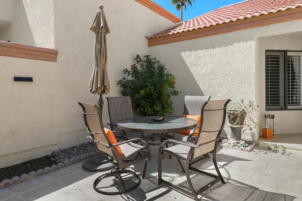 Step into resort-style living at Oasis Country Club.This beautifully maintained 2-bedroom, 2-bathroom condo offers the perfect blend of comfort, convenience, and vacation-inspired charm. Ideally located just steps from the clubhouse and one of the community’s 18 pools and spas, you’ll enjoy premium amenities right outside your back door.Inside, the thoughtfully designed layout creates a seamless flow between the kitchen, dining, and living areas–blending indoor and outdoor living for a bright, open feel. Recent updates include refreshed bathrooms and luxury vinyl flooring in the guest bedroom. The spacious primary suite features a beautiful en-suite bath and direct access to the private backyard patio–perfect for morning coffee or evening relaxation.Additional highlights include:Attached garagePrivate courtyard entryUpdated interiorsBackyard patio for outdoor enjoymentAs a guest or resident, you’ll have access to an exceptional range of amenities, including golf, tennis, pickleball, on-site dining, a card room, library, and even a dog park. Whether you’re seeking an active getaway or a peaceful retreat, this community offers the ultimate desert lifestyle experience.Pack your bags and come stay at this long term lease, owner will consider short term also.