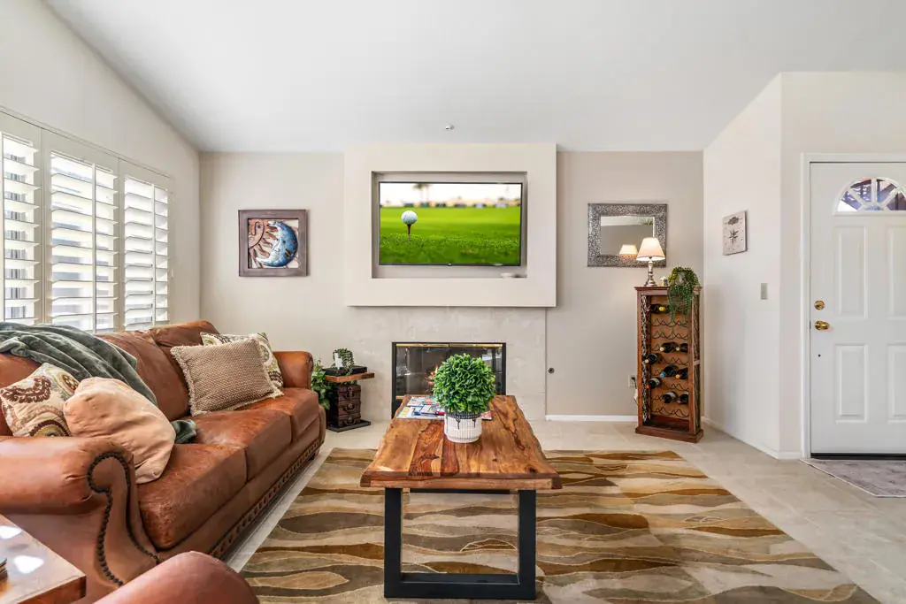 Looking for a desert home that truly fits your lifestyle? This inviting three-bedroom, two-bath residence is ideally situated within the interior of the Oasis Country Club, offering privacy, comfort, and an outstanding community. Vaulted ceilings create an immediate sense of openness, while tile flooring throughout the living room, dining area, kitchen, and hallways enhances the bright atmosphere.The kitchen is designed for both everyday living and entertaining, featuring bar seating and a pantry. The third bedroom, complete with a closet and window, is currently used as an office but easily functions as a true bedroom or den. The guest bedroom is generously sized, offers a walk-in closet, and provides direct access to the second full bath–ideal for visiting family and friends. The primary suite is a peaceful retreat with ample closet space and sliding doors that lead to a private courtyard patio, perfect for morning coffee or a secluded garden space. An attached garage provides room for your vehicle, the washer and dryer, and additional storage or a golf cart.Oasis Country Club is a member-owned community with an on-site HOA and an exceptional array of amenities, including 18 swimming pools and spas, an executive golf course with practice facilities, putting green, and an 18-hole putting course enjoyed by residents and guests alike. Additional offerings include tennis and pickleball courts, a clubhouse with formal dining and lounge, casual dining in the grill room, a pro shop, and a dedicated bark park. Mature landscaping and seasonal citrus trees further enhance the charm of the community.Conveniently located near major freeways, El Paseo, La Quinta, and everyday shopping, this clean and well-maintained home stands out with its flexible floor plan and desirable third bedroom. Opportunity is knocking–come experience the Oasis lifestyle for yourself.