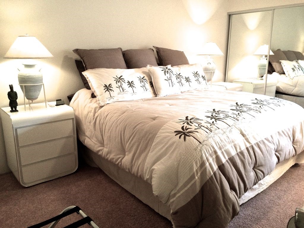 California King Bed, large mirrored closets, brand new Ceiling Fan with light & dimmer remote control.