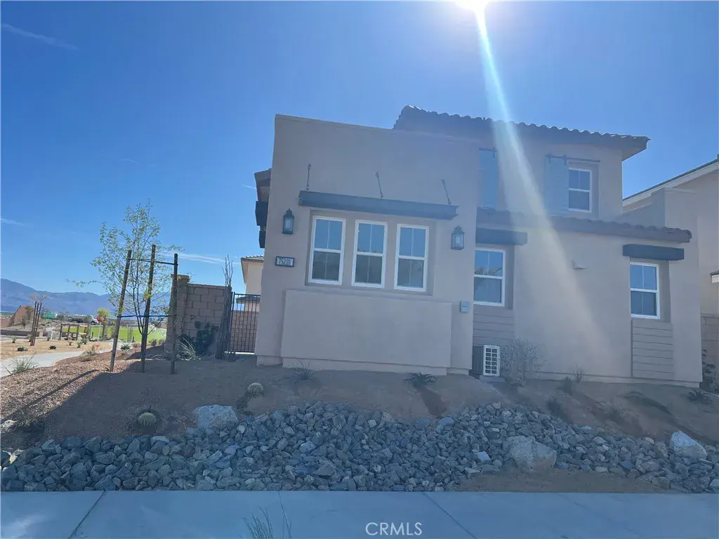 Location, Location Location. Situated in one of the newest communities in Palm Desert at University Park. This stylish Solace model is modernly designed that opens immediately into the casual dining area overlooking a spacious great room with sliding door access to the courtyard. The U-shaped kitchen provides ample light cabinetry space and features a center island with quartz counters with breakfast bar and a kitchen pantry. Appliances in this unit include an energy efficient stove and dishwasher. Other highlights include an everyday entry, a flex room off the porch (which is ideal for an office), a powder room, bedroom-level laundry, and ample storage throughout. The 2nd level boasts an expansive loft where there are two secondary bedrooms which share a full bath with a separate vanity areas. The secluded primary suite includes a walk-in closet and a charming primary bath with a dual-sink vanity, a luxe shower, and a private water closet. This home has modern conveniences and is designed for water conversation including solar for lower energy costs. This is a peaceful and tranquil setting in Palm Desert. The association amenities include access to The Grove which features a clubhouse, multiple pools (adult, lap, children) spas, fire pits, pickleball courts, ping pong, shaded playground and bocce ball. This ideal environment allows for year round activities like hiking, biking and golfing.