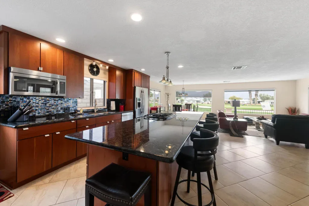 Beautifully remodeled turn key home. Fully furnished and golf cart included. Open concept floor plan with upgraded cabinets throughout. Gorgeous marble island and lots of storage. Stunning 180 degree view of the 16th green and mountains from your living room and spacious patio. Prepare to fall in love! Palm Desert Greens is the place to be.
