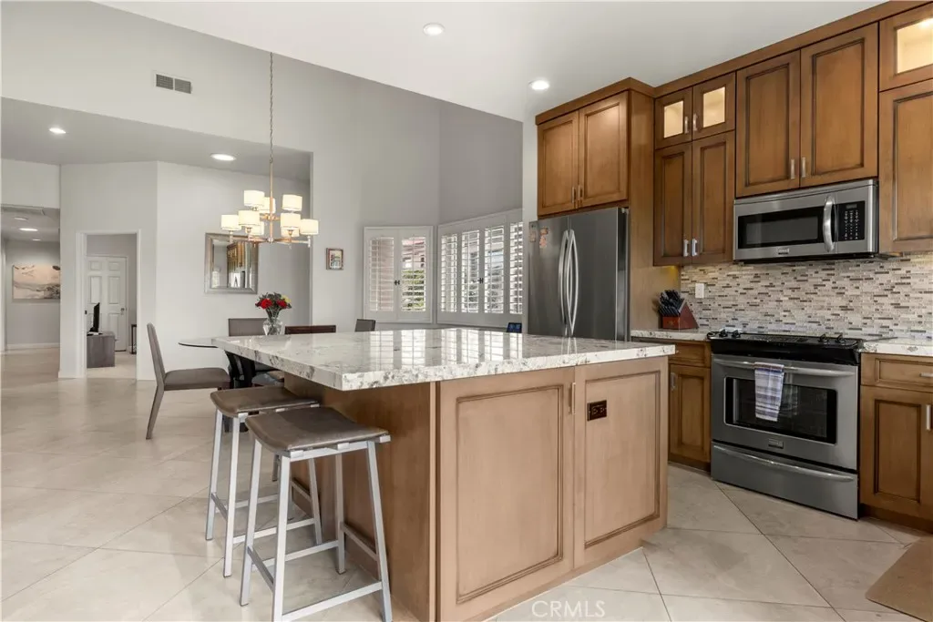 Here is the Sycamore model you have been waiting for. Priced right, located right, Kitchen remodeled just the way you like it. Lite, Bright, and Airy all opened up to a great room floor plan with a gorgeous light-colored granite island, perfect for entertaining or just quiet luxury Desert Living. Modern, neutral 24-inch tiles set diagonally throughout. Carpet in the guest bedrooms. All updated Cabinetry and granite countertops, Solar Tube for extra light, and a Fully Finished Garage with additional Cabinets. All this and a Large North West-facing Golf Course Patio, with a new retractable awning, opening onto an expansive double Fairway of the famous Championship Golf Course. One of two 18-hole courses at Palm Valley C.C. is centrally located near the clubhouse on a quiet cul-de-sac. This perfect location offers amazing panoramic views of all the Mountain Ranges our Desert has to offer. Steps from one of Palm Valley’s 40-plus pools and spas for your convenience. All walking distance to the Club House, practice range, Olympic pool, restaurants, Spa, and workout facility, Tennis, and Pickleball! Come Join Palm Valley’s very active social scene. That’s why they call it the friendly club! All Membership plans are currently available to Home Owners with No Initiation Fee!
