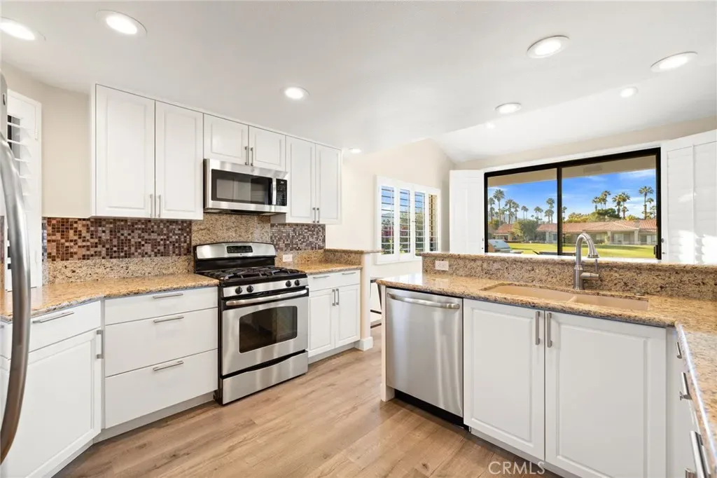Step into a sun-drenched desert retreat where elegance meets leisure. This desirable Cottonwood model 3-bedroom, 2-bathroom condominium is more than a residence — it’s a gateway to the Palm Valley Country Club lifestyle, a place where mornings begin with golden light spilling across the fairways and evenings end with breathtaking mountain silhouettes. Vaulted ceilings and expansive windows invite natural light, creating a seamless flow between living, dining, and kitchen areas. Outfitted with granite countertops, stainless steel appliances, and custom cabinetry, it’s designed for both casual breakfasts and gourmet entertaining. Master suite sanctuary is a spacious retreat with direct patio access and a spa-inspired bathroom. Guest bedrooms are thoughtfully placed for privacy, perfect for hosting family or friends. With Designer touches, Plantation shutters, warm flooring, and a cozy fireplace add charm and sophistication. Private patio oasis complete with a built-in BBQ, ideal for sunset dinners overlooking a shimmering pond and manicured greens. All in a Gated community with 2 Ted Robinson 18-hole golf courses, Tennis and pickleball courts, a beautiful clubhouse, 46 swimming pools, trash, cable tv, internet included. With first-class amenities, this fully furnished, turn-key property is one you cannot pass up!
