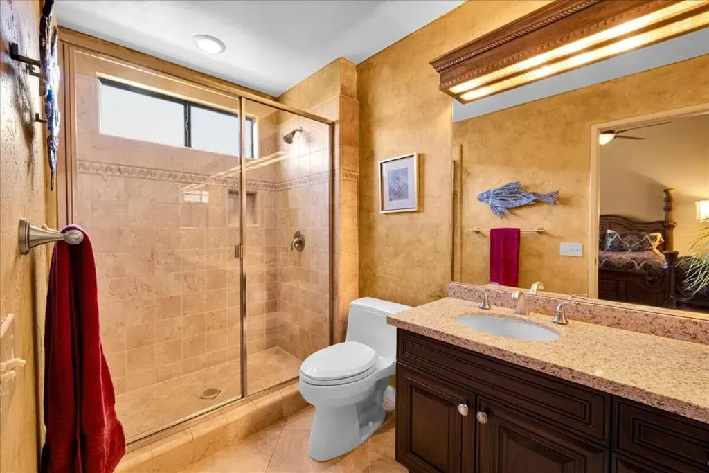 Stunning Trifecta SOUTHERN VIEWS! Warm, elegant, and beautifully remodeled, this highly sought-after Willow model, welcomes you to the best of resort-style living at Palm Valley Country Club. Offered turn-key furnished, no expense was spared on custom furnishings and thoughtful upgrades–just bring your toothbrush and start enjoying the lifestyle. Check out our Digitally Altered / Virtually Staged Inspiration photo #6 and ask about a REPAINTING INCENTIVE. The largest Willow plan offers 2,489 square feet, 3 en-suite bedrooms, 4 bathrooms, and generous closet space throughout. Ideally positioned with south to southeast-facing exposure, the home captures panoramic views of the 14th and 13th fairways of the Challenge Course, tranquil water features, and dramatic mountain backdrops. An expanded, tiled patio–complete with a built-in BBQ–creates the perfect setting for entertaining or relaxing while soaking in the scenery.Inside, the open and inviting kitchen has been remodeled with granite countertops, updated cabinetry, newer appliances, a cozy eat-in area, and a custom bar. Designer details elevate the home, including a striking fireplace surround, decorator paint, smooth ceilings, elegant lighting, shutters, and tumbled, chiseled-edge tile flooring. All bathrooms have been upgraded with sleek walk-in showers, a soaking tub in the primary suite, granite counters, and custom cabinetry.The spacious primary suite features vaulted ceilings, a spa-like bath, and access to both a private oversized courtyard and the golf course patio–ideal for quiet relaxation. A finished garage offers workspace, abundant storage, and dual hot water tanks.Palm Valley Country Club is known as the ”FUN Club,” offering two Ted Robinson-designed golf courses, tennis and pickleball courts, fitness center, spa services, restaurants, and a vibrant social scene–with no mandatory membership minimums. Whether full-time, seasonal, or lock-and-leave living, this exceptional Willow plan delivers comfort, views, and lifestyle in one stunning package.