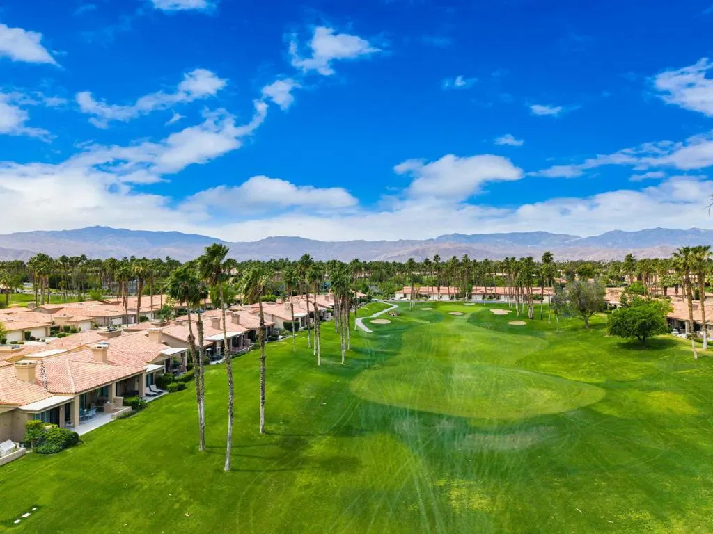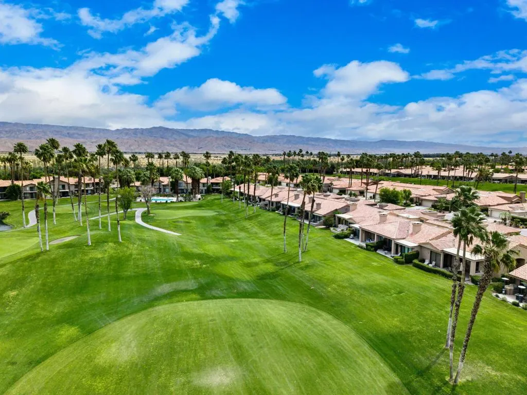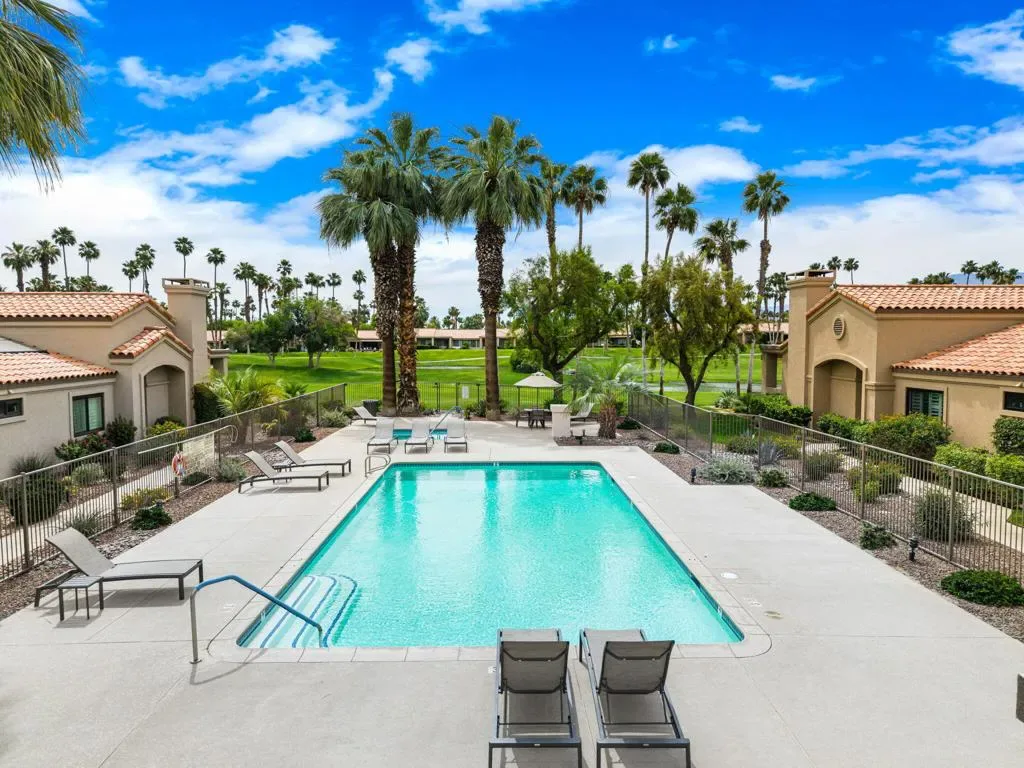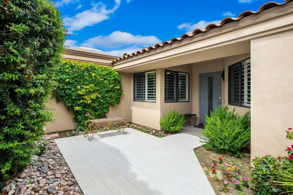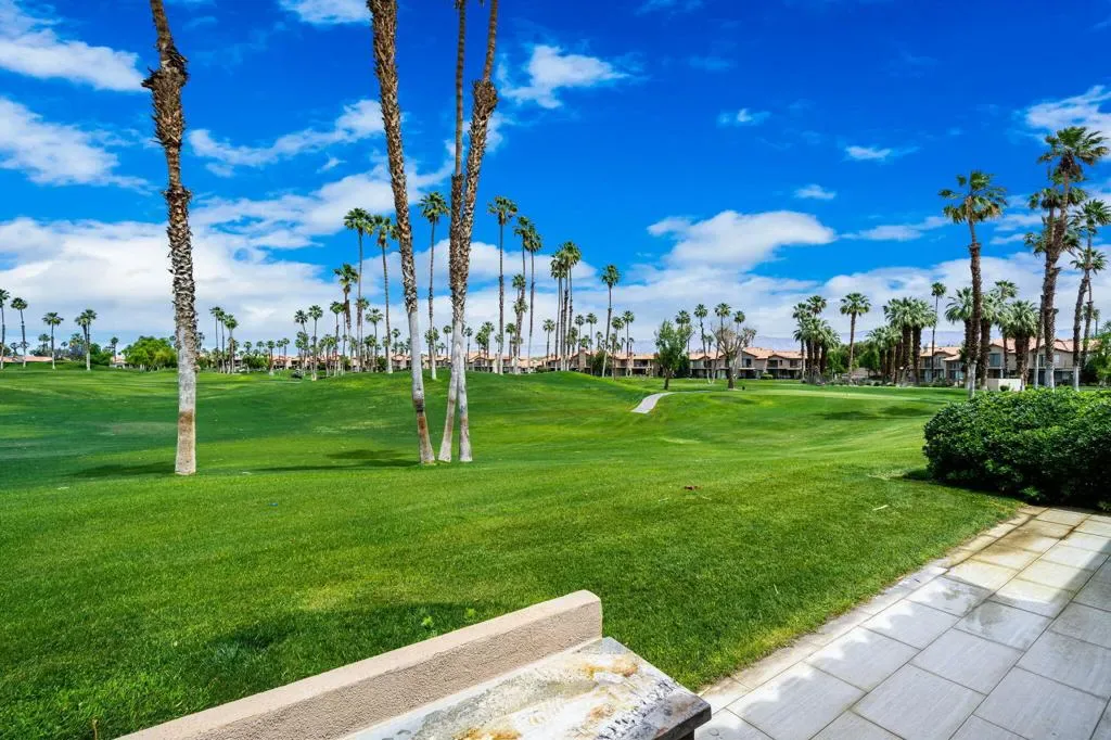 Updated Golf Course Condo with Panoramic Views! Welcome to this highly sought-after Tamarisk Plan, ideally situated within the guard-gated Palm Valley Country Club in the heart of Palm Desert. Offered fully furnished and move-in ready, this tastefully updated residence delivers effortless desert living with breathtaking westerly views of the mountains and the 18th hole of the Challenge Course. This spacious home features 3 ensuite bedrooms plus a powder room, providing ideal comfort and privacy. A private gated front courtyard creates a warm and inviting entry, while the 2-car garage adds functionality and ease. Designed for indoor-outdoor living, the expansive fairway patio with builtin BBQ captures stunning panoramic views and is accessible directly from the living room and the primary suite. Inside, the great room impresses with soaring ceilings, enhanced by new ceiling fans and modern lighting, creating a bright and open ambiance. The updated kitchen is thoughtfully designed with a modern designer table with a builtin bench seating, upgraded cabinetry, appliances, and lighting, along with bar counter seating and a separate dining area that flows seamlessly into the living space. The living room features a contemporary fireplace, custom display shelving, and a redesigned bar area with built-in wine storage, updated cabinetry, and a beverage refrigerator – ideal for entertaining. New plank flooring runs throughout the home, with plush carpet in the bedrooms and tile in the bathrooms for comfort and style. The primary suite is a true retreat, offering private patio access and an updated bathroom with granite counters, dual vanity area, and separate tub and shower. Both guest suites include ensuite updated bathrooms with modern showers and granite countertops, ensuring a luxurious experience for visitors. Perfectly positioned, the community pool and spa are conveniently located just across the street, with another nearby–enhancing the resort-style lifestyle this home provides. Located in one of the desert’s premier communities, Palm Valley Country Club offers two Ted Robinson-designed golf courses, fitness center & spa, tennis, pickleball, and 46 pools & spas. HOA includes social membership, guard-gated security, cable/internet, exterior maintenance, roof, landscaping & trash. Short-term rentals allowed (28 days or less) with City of Palm Desert permit.