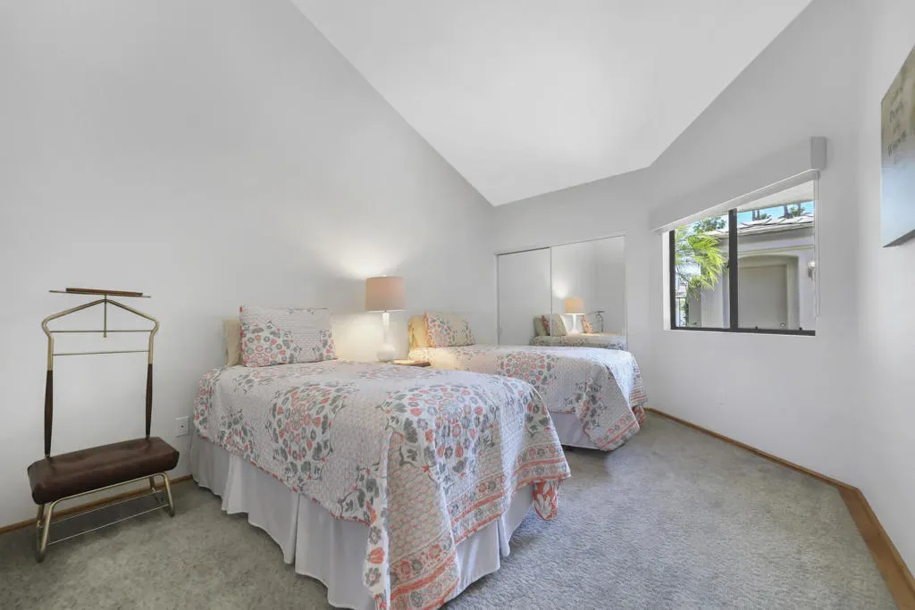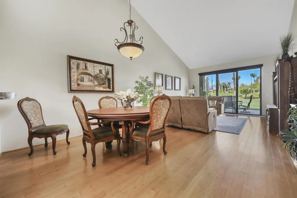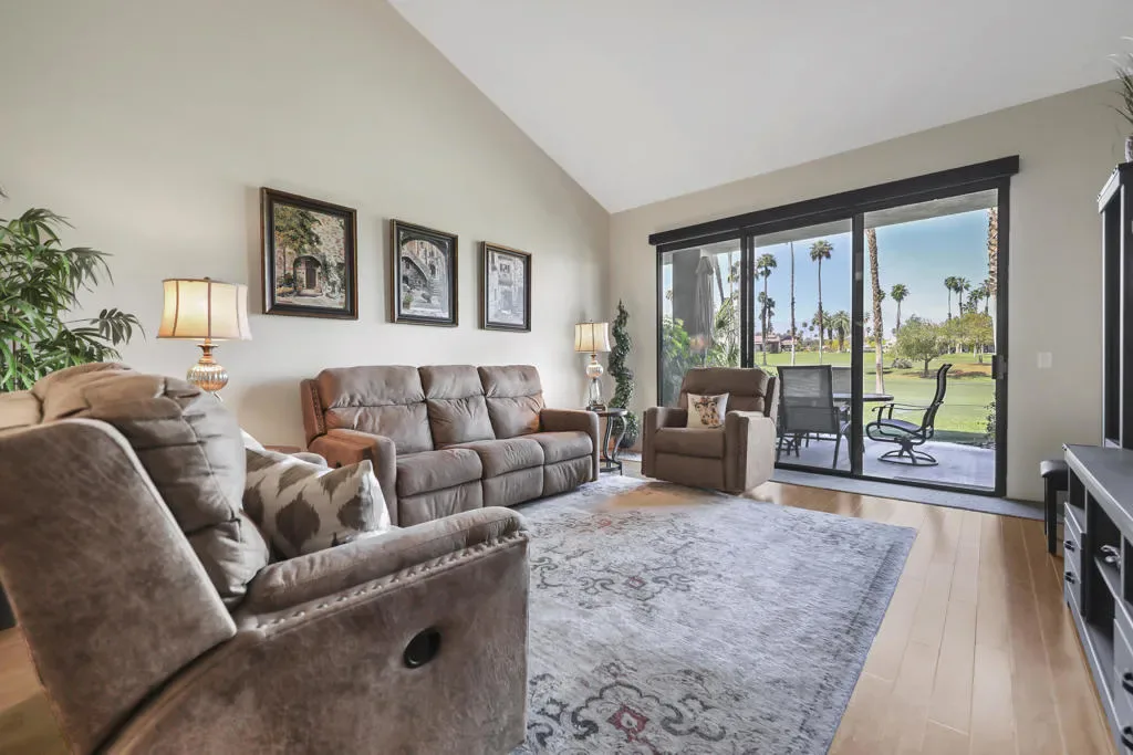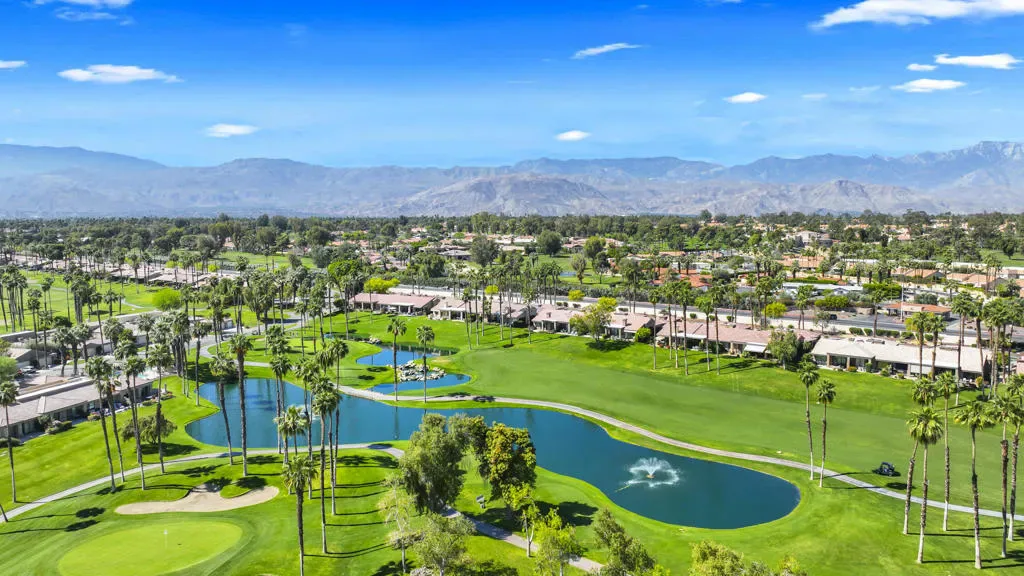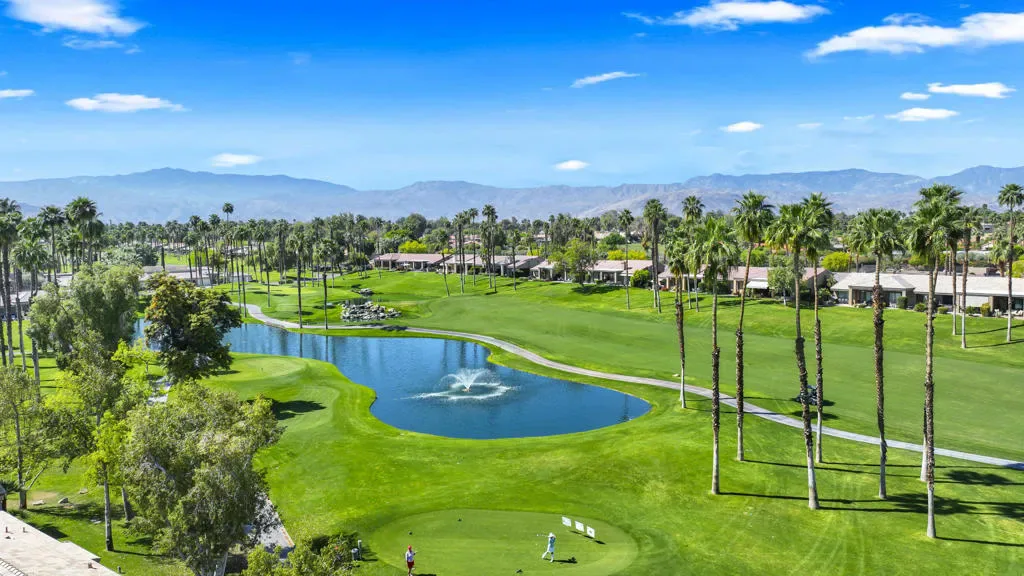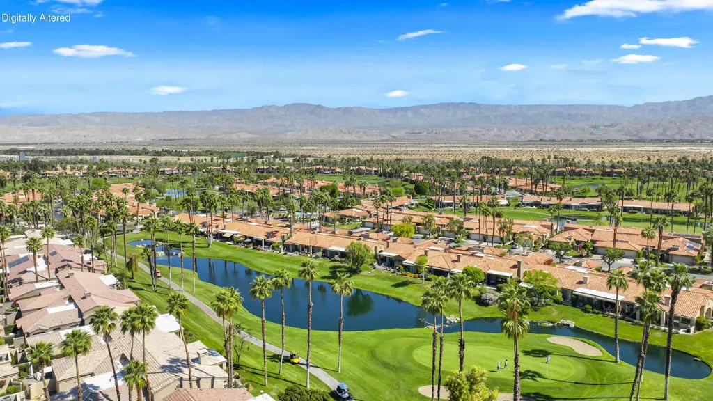 This beautifully maintained 3 BR, 3 BA, 1673 SF home in Palm Valley CC offers the perfect blend of comfort, style and effortless indoor-outdoor living. This could be a great investment property, located on a quiet cul-de-sac just a short walk from the 2 Lobelia community pools. Enjoy breathtaking double-fairway golf course and mountain views from this bright, airy home featuring warm bamboo flooring and an open layout. The remodeled kitchen shines with granite countertops, stainless steel appliances, and a gas stove.The primary suite with mountain views is private, complete with generous closet space and a well-appointed ensuite bath. The 2 additional ensuite bedrooms at the other end of the condo offer flexibility for guests, a home office, or den. Offered partially furnished, with kitchen full of necessary items. HVAC replaced in 2022. Regularly serviced. Palm valley Country Club has 47 community pools and jacuzzis, an Olympic- sized pool, 2 golf courses, 12 tennis cours, 12 pickleball courts, and a 100,000 SF Clubhouse with restaurant and lounge, as well as a casual restaurant with outdoor seating. Known for fun, welcoming atmosphere, this is Desert living at its best.