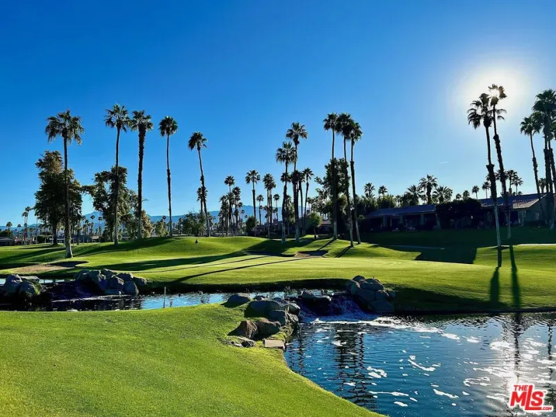 As one of the largest and highly-coveted layouts in the community, this stunning design consistently captivates buyers in search of timeless appeal and exceptional value. Its rare blend of spaciousness, elegance and practical luxury creates an inviting ambiance of comfort and style – perfect for desert living. Vaulted ceilings begin in the front corridor off the private front courtyard and extend throughout the main living spaces, with skylights amplifying the home’s natural glow. An expansive great room, complete with fireplace and bar, opens directly to the tranquil sounds of Ted Robinson-designed waterscapes on the covered patio. This west-facing panoramic view of the sunset on the mountains and 9th hole of the Championship Golf Course is exquisitely designed for indoor-outdoor entertaining. Relax in the spa-inspired master suite with elegant finishes that include a walk-in closet beautifully integrated into a dressing space, and flows into the primary bath, complete with a dual vanity, free standing shower and soaking tub. Experience the combination of the social luxury of Palm Valley Country Club with championship golf, resort-style pools, tennis, pickleball, fitness, fine dining, and the secluded santuary of this beautiful home!