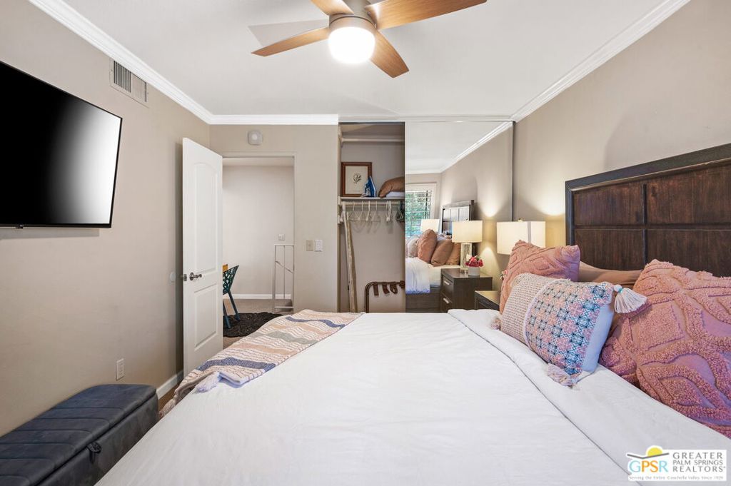 Available Furnished or Unfurnished | Sandroc Resort Condominiums Prime El Paseo Location!Experience the perfect blend of privacy, luxury, and convenience at this beautifully upgraded two-story condo nestled in the heart of Palm Desert’s most coveted address. Located just half a block from the world-class shops, restaurants, and entertainment of El Paseo, this is resort-style living at its finest leave the car at home and stroll to it all!This stylish 2-bedroom, 2.5-bath condo has been thoughtfully updated throughout. Upstairs, you’ll find two generously sized bedrooms with brand new flooring and ceiling fans. The primary suite is a true retreat, featuring a private south-facing balcony, ample closet space, and a sleek en suite bath with a walk-in shower. The guest bedroom captures gorgeous peekaboo Southern mountain views and is served by a full guest bath with a shower/tub combo.The light-filled main level features an open-concept kitchen, living, and dining area that flows effortlessly together ideal for relaxing or entertaining. The fully equipped kitchen shines with stainless steel appliances and granite countertops. Step outside to your private south-facing patio, perfect for soaking up that beautiful desert sunshine.Additional highlights include tile and vinyl flooring, plantation shutters, sliding doors, and card/code access security for added peace of mind. Covered parking is included.Community amenities are second to none take a dip in the resort-style pool and heated spa just steps from your door, challenge friends on one of two lighted tennis courts, and enjoy the convenience of on-site laundry facilities nearby. Gardener and pool service are owner-paid.The Sandroc community is one of the most ideally situated in the entire Coachella Valley with El Paseo’s dining, shopping, and culture literally at your doorstep. This is the desert lifestyle you’ve been dreaming of. We look forward to welcoming you home!