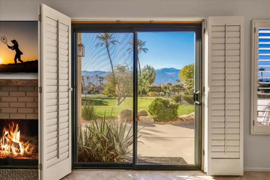 An exceptional find in the heart of Palm Desert. RARE unobstructed view home–designed with a unique blend of modern elegance and desert luxury. Experience elevated, panoramic greenbelt and mountain views. Property is infused with natural light. High ceilings accentuate the airy open feel–resulting in a floorplan that works as well for group entertaining as intimate get togethers. Private courtyard entry is perfect for outdoor dining–window pass-thru to interior wet bar with beverage fridge, extensive cabinetry & countertop space–even a built-in BBQ station! Area enhanced by lush, yet low-maintenance plantings. Welcoming double door entry. Bricked atrium with slider access lends an extra indoor/outdoor feeling. High ceiling soars over large living room and dining area. Focal point fireplace with unique wood mantle is flanked by walls of glass that frame stunning greenbelt views and invite to outdoor seating areas. Spacious, gourmet eat-in kitchen with bay window boasts stainless appliances & extended bar top seating. Tons of cabinetry, storage and prep space! Primary suite with spa-like light-filled bath. Updated bathrooms offer newer counter tops, modern sinks, hardware and custom tile showers. Interior laundry closet. Countless upgrades enhance the living experience. Recessed lighting, Plantation-style shutters, oversized ‘on the diagonal’ neutral tile flooring & carpet in bedrooms. Both patios feature automatic shade awnings. Newer hot water tank and HVAC system. Attached 2-car garage. Location of home is ideal–near a community pool and spa! Be a part of Silver Sands Racquet Club–an active community of 256 condos surrounded by beautiful landscape, offset by the San Jacinto Mountains. A vast array of resident activities available including 15 community pools/spas, lit tennis & pickleball courts. Clubhouse w/fitness center. HOA includes gated entry, cable, internet, trash, exterior maintenance & roof coverage. Truly move-in ready. Designer furnishing package available for separate negotiation. Stop searching and START living!