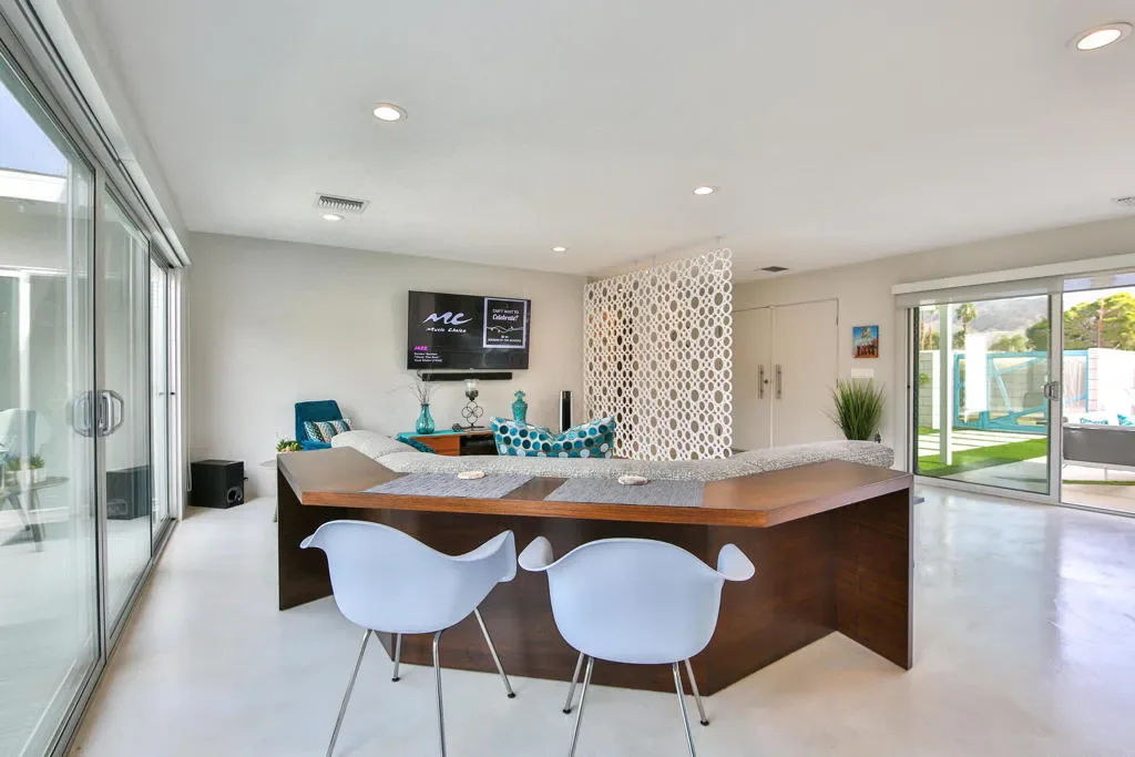 Welcome to your modern desert oasis in the heart of Silver Spur Ranch — a stunning mid-century-inspired retreat offering breathtaking mountain views, a sparkling private pool with color-changing lights, and stylish, open-concept interiors reimagined in 2015 with sleek quartz countertops, high-end furnishings, and smart features like Nest thermostats. Whether you’re enjoying coffee with sunrise views, relaxing by the fire pit, or exploring nearby El Paseo, The Living Desert, or scenic hiking trails, this home is the perfect blend of iconic Palm Desert charm and contemporary luxury. Fully furnished and move-in ready — just bring your swimsuit and start living the elevated desert lifestyle. 🌴