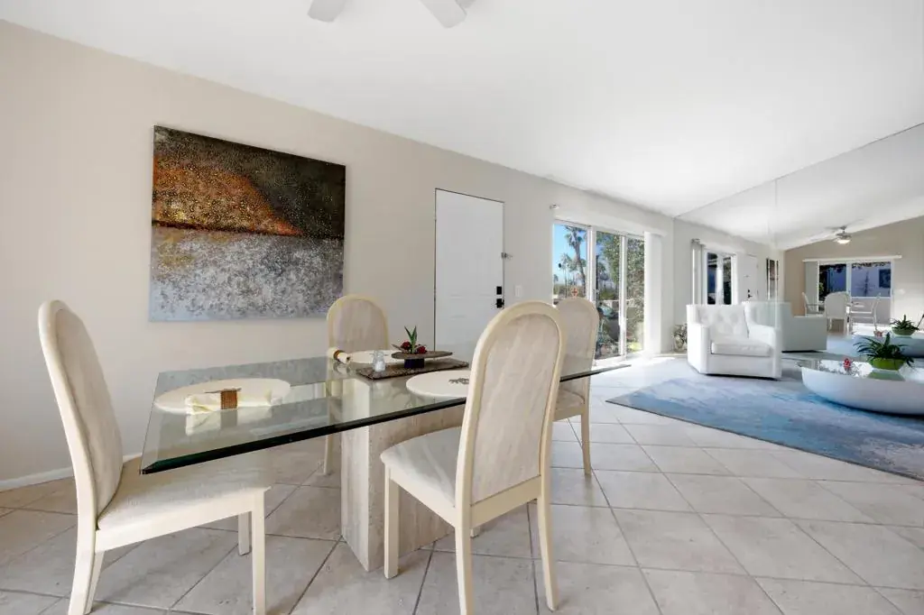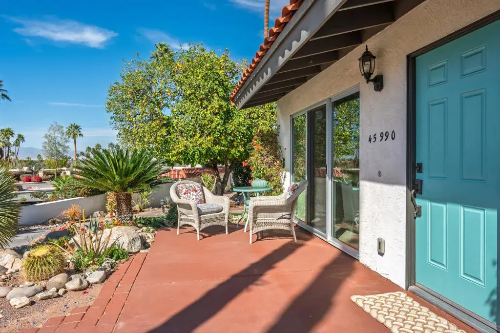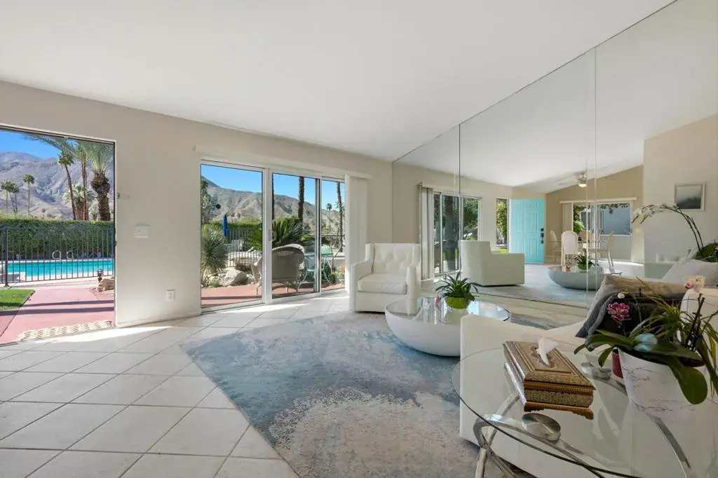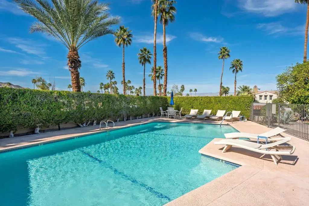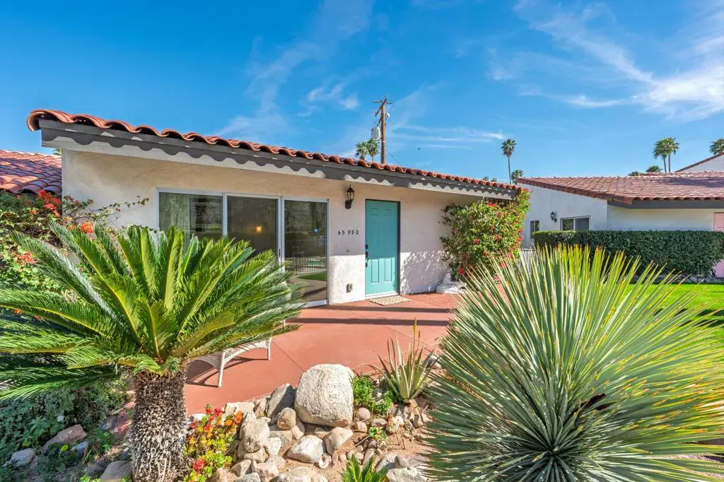 Discover exceptional charm, comfort, and location in this beautifully situated single-level home just moments from world-famous El Paseo. Offering breathtaking mountain views from the living room’s expansive sliders, the front door, and the inviting front patio, this home captures the very best of desert living — from morning coffee sunrises to glowing sunset skies.Perfectly positioned right next to the sparkling community pool, it feels like having your own private pool without the maintenance. Simply step outside and enjoy resort-style living whenever you choose. Inside, you’ll find two spacious bedrooms, vaulted ceilings that create an airy open feel, tile flooring throughout for easy desert living, and convenient indoor laundry for added comfort and practicality.The light-filled living space frames the mountains beautifully, making the views part of your everyday experience. The private-feeling backyard offers a peaceful retreat with a lush grassy area ideal for relaxing or entertaining. The community also features a sparkling pool and abundant fruit trees, adding to the serene atmosphere. Located just off Frontage Road for easy access, you’re within walking distance to El Paseo’s upscale shopping, fine dining, galleries, and entertainment, and only minutes to hiking trails, golf courses, and all the outdoor activities Palm Desert is known for. With assigned parking, guest spaces, and low HOA dues, this is an incredible opportunity for full-time living, a seasonal getaway, or an investment property. A rare South Palm Desert gem offering views, walkability, and effortless desert lifestyle. Make an appointment to see it today!