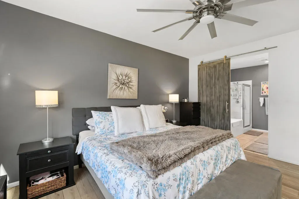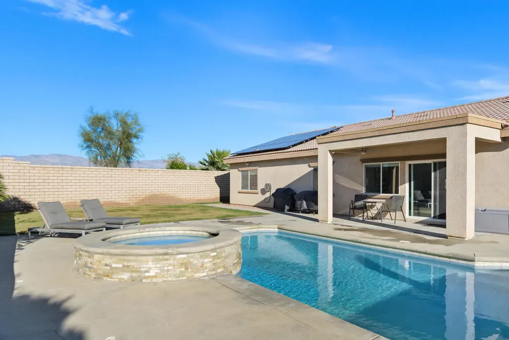 If you are looking for the perfect home complete with everything including pots, pans, silverware, dishes, counter top appliances, linens and towels and more,, then look no more as you have found your match. Wake up to sweeping mountain views, golden desert light, and sunsets that stop you in your tracks. Located behind the gates of The Gallery, this impeccably maintained 3-bedroom, 2.5-bath residence blends refined design with modern technology, offering a lifestyle as effortless as it is impressive.From the moment you step inside, the home’s pride of ownership is undeniable. Thoughtfully curated finishes, designer lighting, ceiling fans, and a warm, sophisticated color palette create an inviting atmosphere ideal for both everyday living and elegant entertaining. State-of-the-art smart home technology, including a Samsung Z-Wave Hub with app-controlled security, brings peace of mind and modern convenience right to your fingertips.Step outside and embrace the quintessential desert lifestyle. The private backyard is designed for relaxation and entertaining, featuring a newer Hayward automated pool system, variable-speed pump, and wireless controls, perfect for sun-soaked afternoons or evening gatherings under the stars. A 36-panel leased solar system installed by Renova in 2020 efficiently powers the home and pool, adding exceptional energy savings and sustainability.Ideally situated just minutes from upscale shopping, fine dining, and world-class golf courses with exclusive Palm Desert resident discounts, this home offers the perfect balance of luxury, comfort, and location. Whether you’re seeking a full-time residence or a desert retreat, this is a rare opportunity you won’t want to miss.