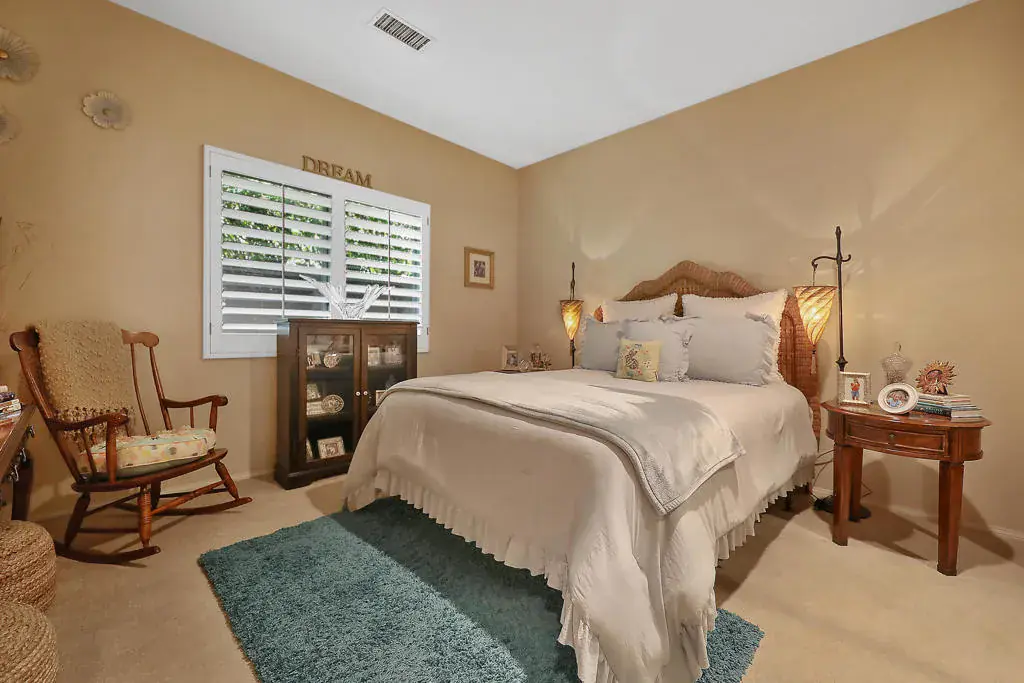 Your own private oasis in the heart of the desert. The Grove is a lovely neighborhood perfectly located, and this elegant yet charming home welcomes you from the moment you enter the inviting foyer.A fabulous floorplan with plantation shutters throughout, spacious primary suite, two additional bedrooms with large guest bath. Stunning living room with fireplace and a separate formal dining room. Fabulous office with French doors opening to backyard.The large family room and eat in kitchen lead out to the peaceful and pretty backyard with covered patio, pebble tec pool and step up spa.Putting green and grassy garden area complete your private paradise.There is also an attached three car garage with abundant storage.Another plus is solar panels with transferable lease to maximize energy efficiency.This wonderful home is minutes from shopping and dining on El Paseo, The McCallum Theatre, and some of the finest golf courses in the desert.No HOA’s!Call soon to make an appointment to view this exceptional property.