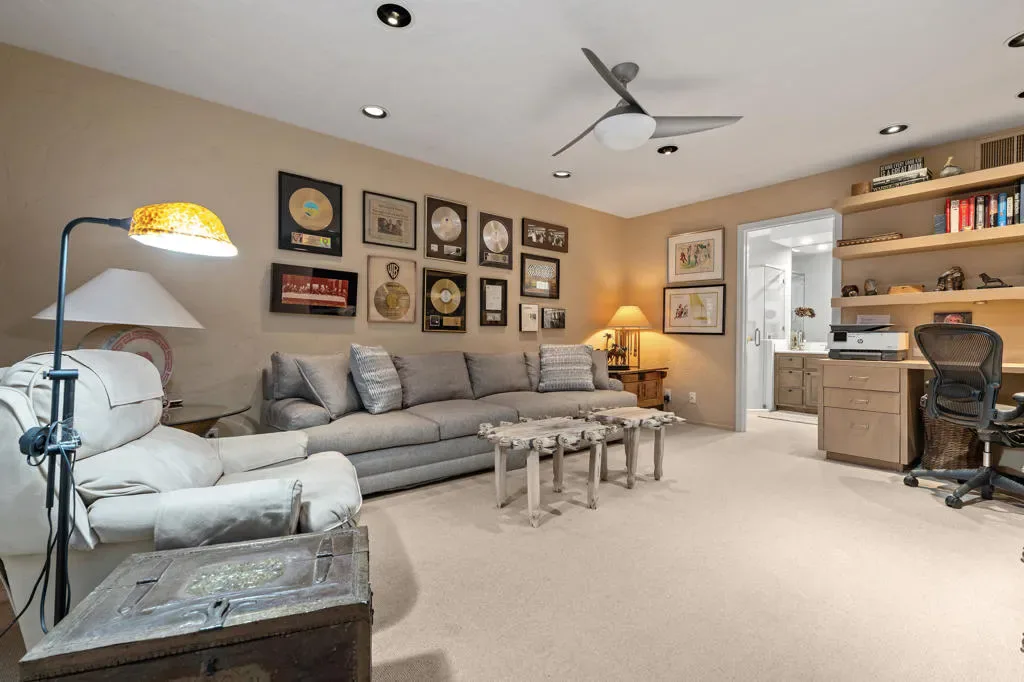 Stunning Views in one of Coachella Valley’s most desirable communities. Rare Taos floor plan at The Lakes Country Club offering 2 bedrooms plus a den and a setting that captures double fairway, lake, and mountain views from the heart of the home’s main living areas. The private courtyard welcomes you with its own waterfall, creating a warm and memorable entry. Inside, the atrium brings in natural light and a second soothing waterfall, adding a calm, Zen-like feel throughout the day.The spacious Living room opens to the View, Dining room, and atrium, creating an easy flow for both everyday living and entertaining. The three main living areas all look out at the views, while the extended flagstone-fenced patio offers a comfortable outdoor space to relax and enjoy life at The Lakes. Both bedrooms and the den feature en-suite baths, and flexibility for guests, an office, or additional living space. Two-car garage with cabinets and a Golf Cart garage. Enjoy access to 44 pools and spas, a new 55,000 sq ft clubhouse, and a state-of-the-art wellness center with a private spa and lap pool. Golf enthusiasts will appreciate the exceptional 27-hole Championship golf course, while racquet-sport enthusiasts can enjoy tennis, pickleball, and paddle sports. The club also hosts a variety of activities and social events throughout the year, including a booming bocce ball league, making it a hub of engagement and enjoyment. Discover why The Lakes Country Club is regarded as extraordinary in the Coachella Valley! Call for your own private showing.