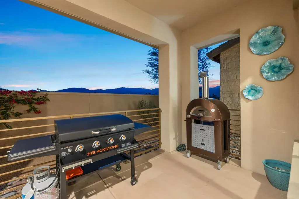 Enjoy magnificent views and privacy at The Retreat at Desert Willow. Step inside and you’reimmediately WOWED by the panoramic south-facing Santa Rosa Mountain views, a truedefinition of desert luxury. Morning coffee and evening cocktails on the private patio comewith an endless skyline backdrop. This beautifully customized Plan 1 (Sanctuary) offers two bedrooms, a den/office, and two and a half bathrooms. The great room features an open-concept design with high ceilings, 8′ doors, and extensive recessed lighting. The gourmet kitchen showcases custom cabinetry, quartz countertops, an oversized island, updatedplumbing and lighting fixtures, a Bosch appliance suite, Samsung Bespoke refrigerator,Zephyr vent hood, and a walk-in pantry. The dining area flows seamlessly to the expandedpatio for ideal indoor-outdoor living. Upgrades include custom automatic blinds, Totowashlets, warm modern finishes, and exceptional detail throughout. The spacious primarysuite offers patio access and a spa-style bath with double sinks, soaking tub, walk-in shower with bench, and a fully upgraded custom closet. The guest suite features its own bath, walk-in closet, and private patio. The den/office with double glass doors provides flexible living space, and the private front courtyard creates an additional peaceful outdoor retreat. Thehome also includes a two-car attached garage with mini split, an extended driveway, a largelaundry room with abundant cabinetry and sink, brand new carpeting, and owned solar with11 panels plus a Tesla Powerwall 3, a major efficiency and value upgrade. Arguably one of themost customized Plan 1 homes in the community, this residence offers elevated finishes inevery room. The Retreat at Desert Willow delivers true resort-style living with a pool, lappool, heated spa, clubhouse, fitness center, BBQ areas, and a private golf-cart path to DesertWillow Golf Resort with Retreat privileges included in a membership at no cost to Retreathomeowners, providing preferred rates on golf, driving range, retail, and dining. HOAincludes internet, cable, water, exterior pest control, and trash. Your private, resort-styledesert oasis awaits. Schedule your showing today!