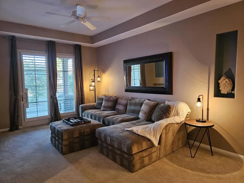 Available May – November 2026. Then March 2027 and beyond. Welcome to Villa Portofino; Palm Desert’s premier 55 or better, active, adult community. This turnkey furnished 1559 square foot, two bedroom condo has a den, and two full bathrooms. There is a chef’s kitchen with granite counter tops and stainless steel appliances, and a private patio with bar-b-que for outdoor entertaining.Villa Portofino is known for its spectacular, Mediterranean style, 32,000 square foot clubhouse. Enjoy a complementary movie in the 100 seat theater. Have lunch in the bistro. Or better yet, have your lunch served poolside. There is fine dining if you like. Or you can watch the game and have refreshments in the billiard room. There is bridge, yoga, tai-chi, an art room, a music room, and a state of the art fitness center. There is just no shortage of things to do here. Villa Portofino is centrally located in close proximity to exquisite golf courses, fine dining, and excellent shopping. Minutes to El Paseo, Acrisure Arena, McCallum Theater, and multiple casinos, as well as tennis, hiking, and biking.Rates:January – April: $3900/MonthMay – October: $3000/MonthNovember – December: $3500/MonthUtilities capped at $100/Month (Tenant responsible for all gas & electricity over $100 per month.)Security Deposit: $2500Cleaning Fee: $300