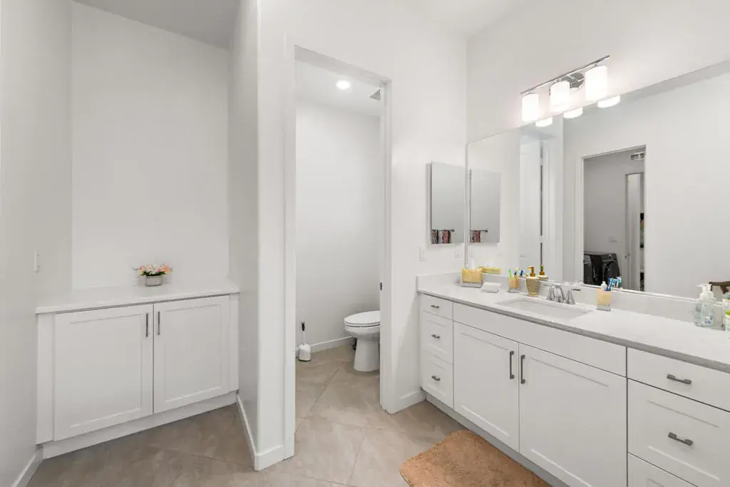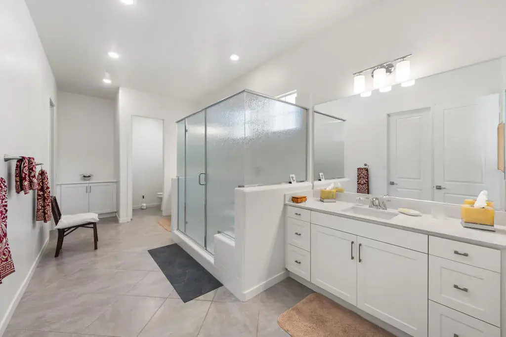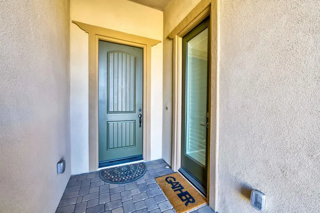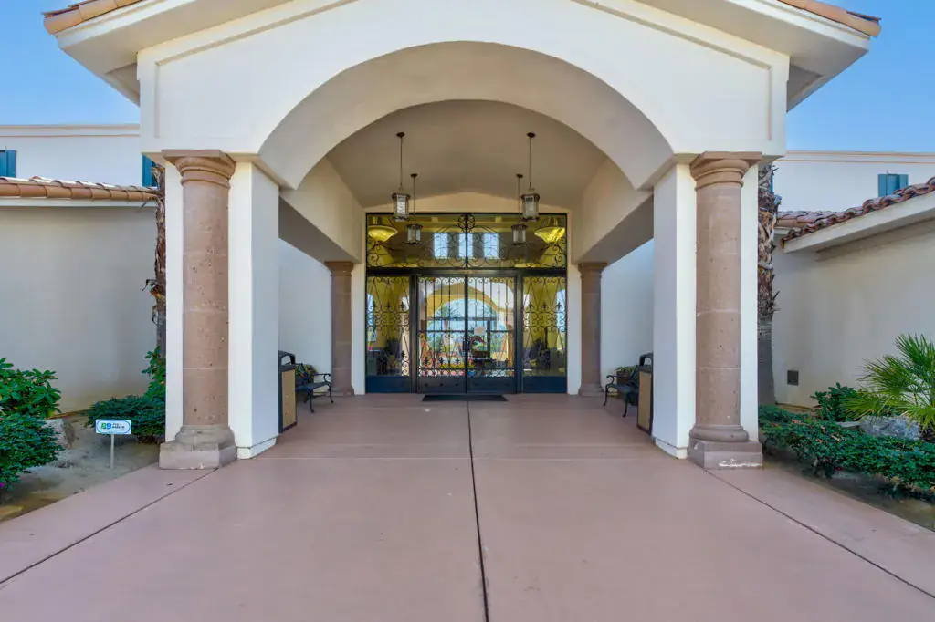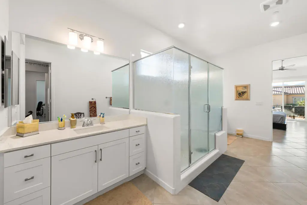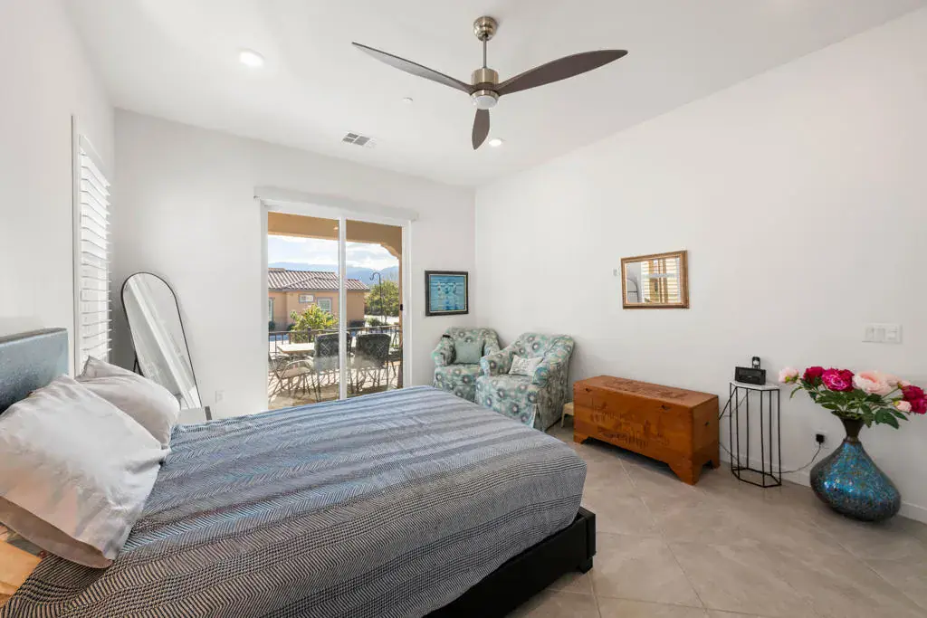 Enjoy a Resort Lifestyle within this Active Adult Community. Newer home built in 2023 by Crestwood Communities, features a Modern, Open Concept design with beautiful Mountain views on a south facing covered patio. With 2,249 sq ft, it is filled with natural light showcasing floor tile throughout for comfort of everyday living. A gourmet kitchen with top-of-line appliances, sleek, white shaker cabinets with soft-close drawers, Quartz countertops and convenient center island with counter seating for the ultimate when entertaining. The Primary bedroom has a custom window covering with remote control, walk-in closet, dual sinks with vanities, a large shower with bench seat and designer glass enclosure. The 2nd bedroom is adjacent to a Den/Flex Room, the perfect retreat to cozy up with a book, TV viewing and relaxation. The attached Casita has luxury vinyl flooring, walk-in closet and 3/4 bathroom. Energy efficient with Solar, that is owned, tankless water heater and an air conditioned 2-car garage. A friendly environment awaits you in Villa Portofino as the Clubhouse amenities offer an array of fun-filled activities, dining, fitness, pool, spa and sport courts. Within minutes you’ll enjoy the convenience of grocery options, Dining, Art and Boutiques on fashionable El Paseo, Eisenhower Health, The McCallum Theater, The River in Rancho Mirage and Acrisure Arena for sport and concert enthusiasts. The Lifestyle can be as quiet or adventurous as you want in beautiful Villa Portofino.