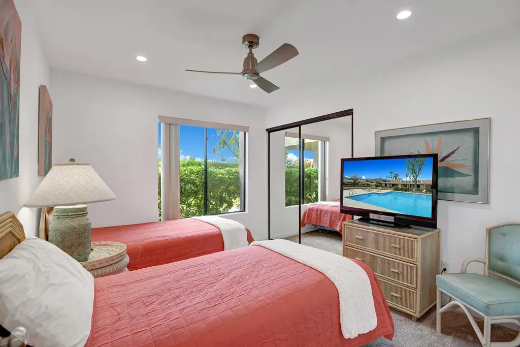 This desirable end-unit condo is located in Wedgewood Glen, a charming, intimate community of 38 homes in the heart of Palm Desert. Open your front door and enjoy the garden setting and privacy this location has to offer.The 2-bedroom, 2-bath layout offers an open concept living and dining space with cathedral ceilings, lots of natural light, new ceiling fans, recessed lighting, TV’s, and smart home features. Enjoy the full length outdoor patio which is accessible from the primary bedroom, living room, and kitchen, creating a natural extension of this home–ideal for relaxed mornings or quiet evenings outside. You’ll enjoy the convenience of an attached garage with a full-size washer and dryer.Residents enjoy two pools and spas, a tennis court, and beautifully maintained grounds, Just blocks from Civic Center Park and several schools, this home offers a peaceful and serene setting. Call for a private showing.