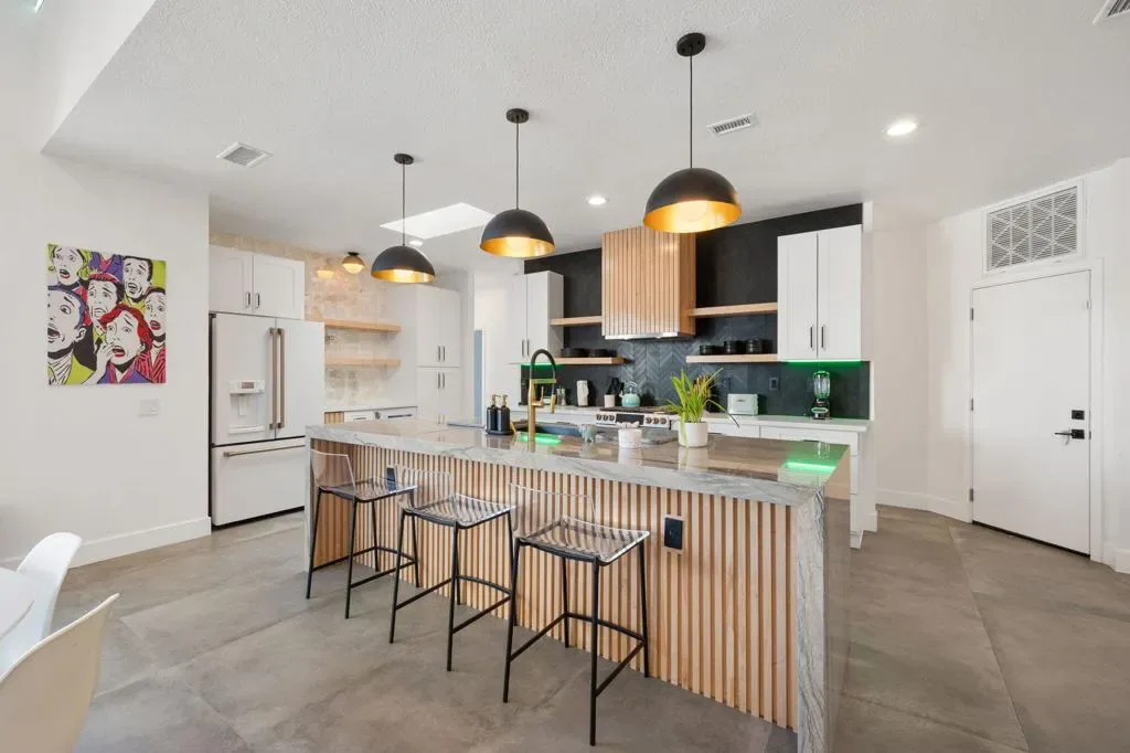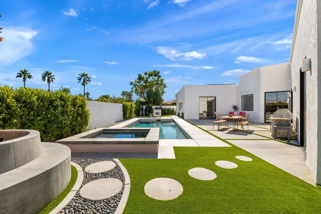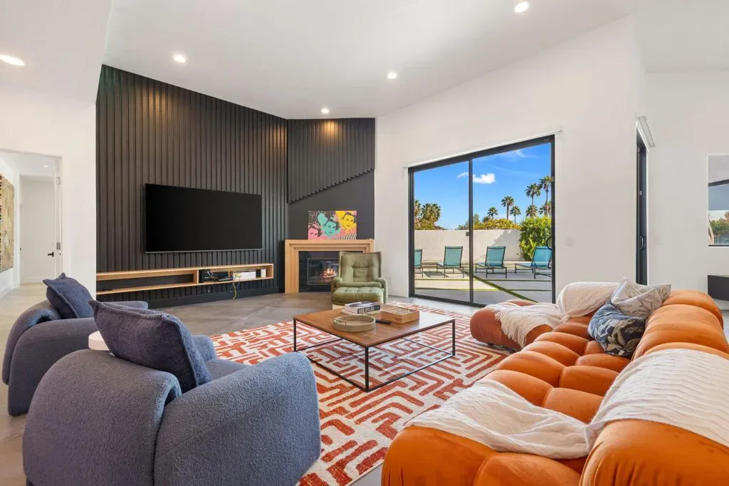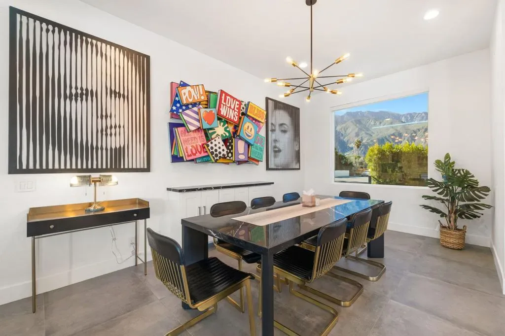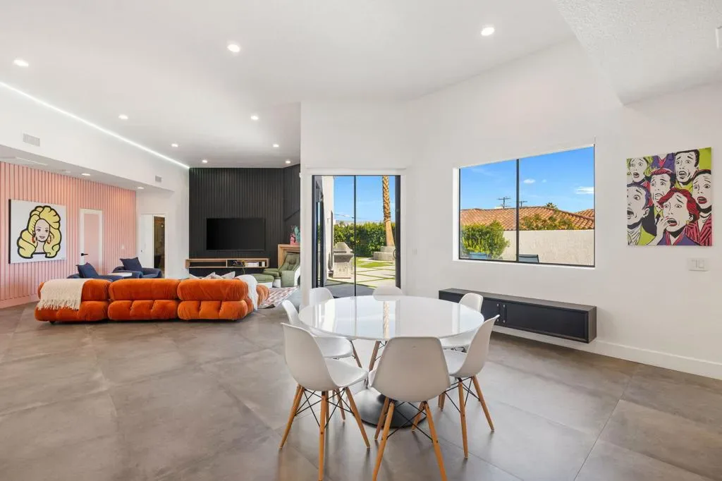 Fully remodeled in 2024, this striking modern Palm Springs home blends bold design with luxury finishes and thoughtful upgrades throughout. Featuring soaring 12-ft ceilings and 3,162 sq. ft. of reimagined living space, the home showcases custom 3D wall details, inlaid LED lighting, and curated interiors that create a one-of-a-kind aesthetic.The open-concept layout offers seamless flow between the living, dining, and a fully updated kitchen with all-new appliances–ideal for both everyday living and entertaining. Expansive glass sliders invite natural light and connect effortlessly to the outdoor spaces.Situated on a private 10,890 SF flag lot at the end of a double cul-de-sac, this walled and gated estate offers exceptional privacy along with stunning San Jacinto Mountain views. The backyard is a true desert oasis, complete with a pool, spa, fire pit, multiple lounge areas, and all-new hardscape and landscaping.The home features 4 oversized bedrooms plus a flexible bonus room, and 3.5 bathrooms. The primary suite is a private retreat with a spa-like bathroom, soaking tub, walk-in shower, custom closet, and integrated office space. Additional highlights include smart home integration, electronic window treatments, and a finished garage.Centrally located just minutes from downtown Palm Springs, shopping, and dining, this is a rare opportunity to own a beautifully upgraded home in a highly sought-after neighborhood with limited availability.