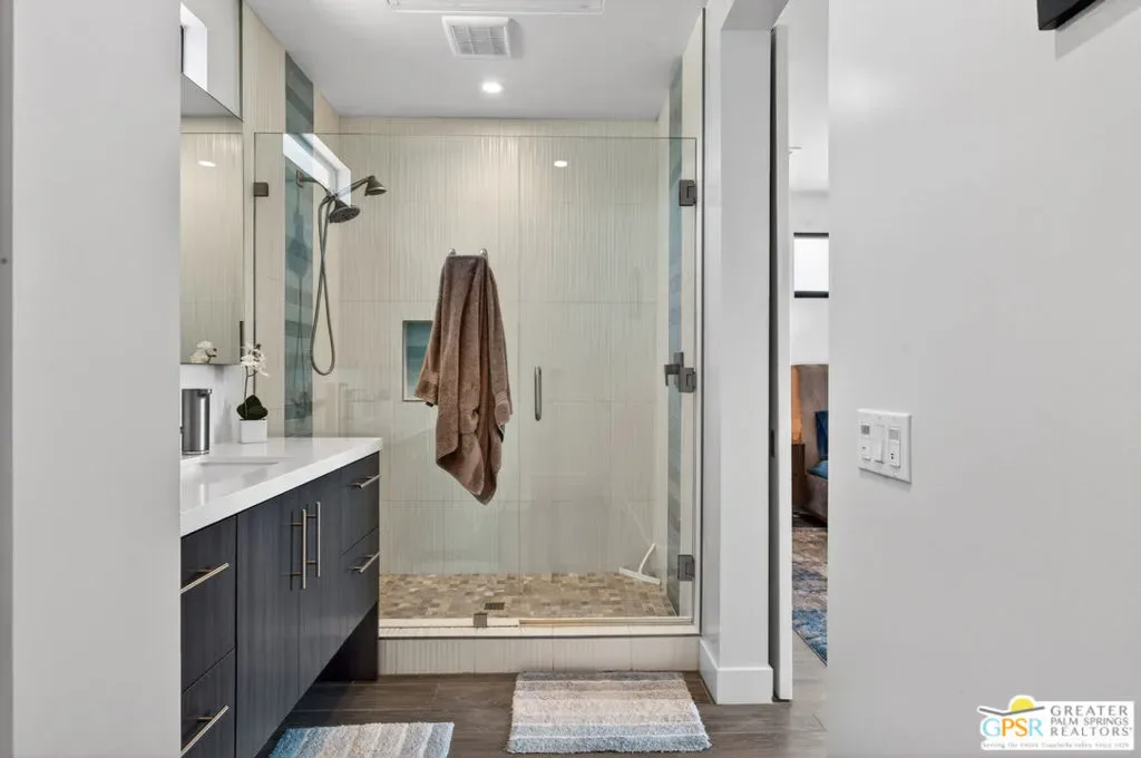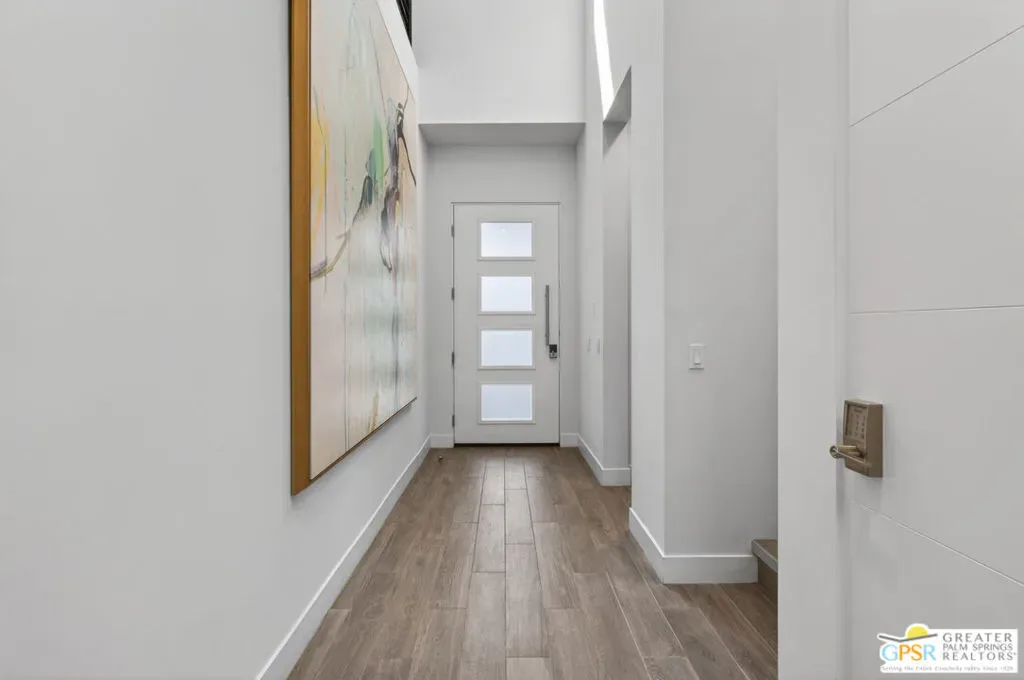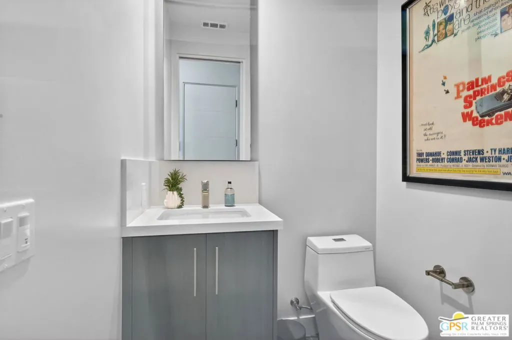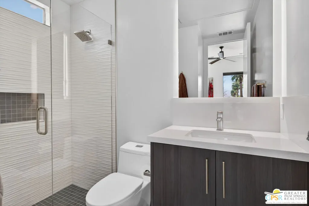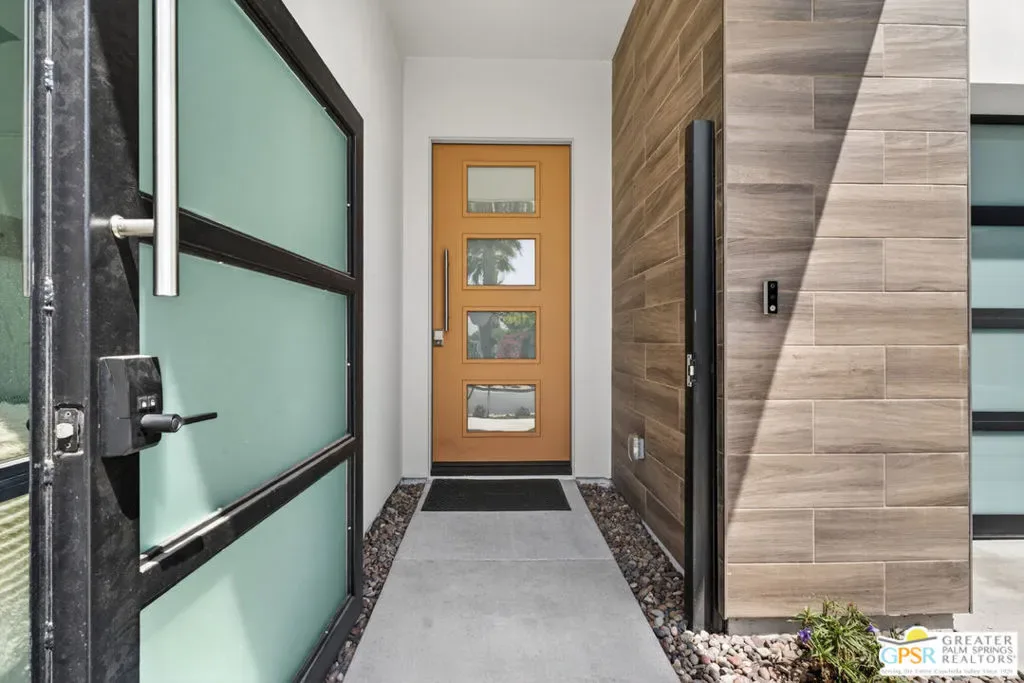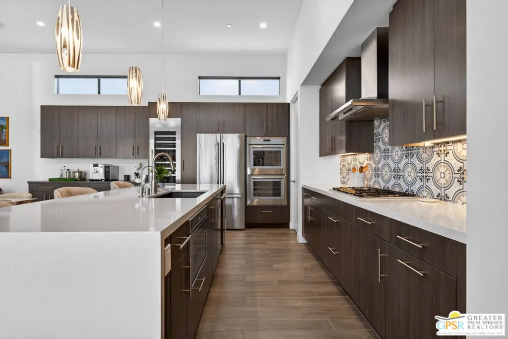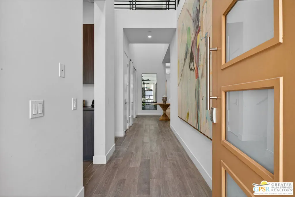 Welcome to 1320 Woodward at VUE, Where striking modern architecture pairs with laid-back desert living in one of Palm Springs’ most visually compelling neighborhoods. This is more than a home; it’s a statement of style, sophistication, and intentional design, where dramatic scale, clean lines, and walls of glass create a seamless connection between indoors and out. Offering the largest floor plan in VUE at an impressive 2,693 sq. ft., this 4-bedroom, 3.5-bath residence (with the 4th bedroom currently styled as a chic office/den) delivers both flexibility and privacy. A smart, modern layout places a guest retreat on the second level, ideal for visitors or multigenerational living. Every element has been thoughtfully elevated with designer finishes and premium upgrades, including a top-tier Thermador appliance suite with integrated wine refrigeration, EV charging, and an expanded OWNED solar system with 41 panels for optimal efficiency. Step outside to your own private resort. The reimagined pool is a showpiece, featuring a dramatic waterfall, fire bowls, outdoor shower, and built-in BBQ perfect for unforgettable evenings under the desert sky. Bold architecture, refined materials, and an unbeatable Palm Springs setting this is VUE living at its finest, crafted for those who demand exceptional design and elevated everyday living.