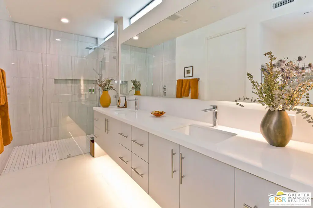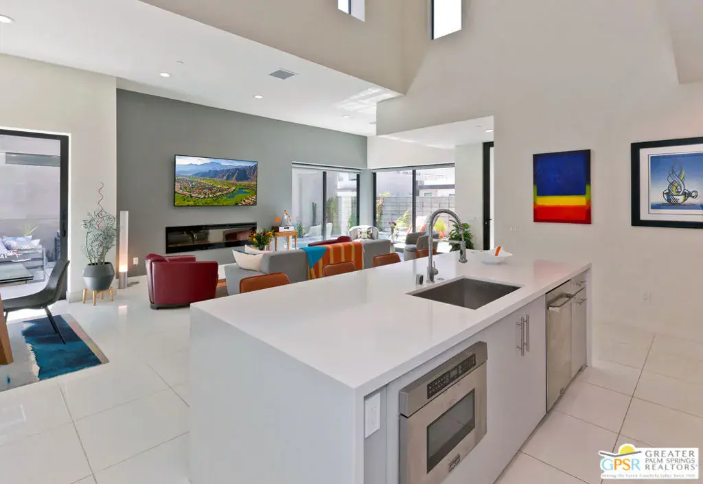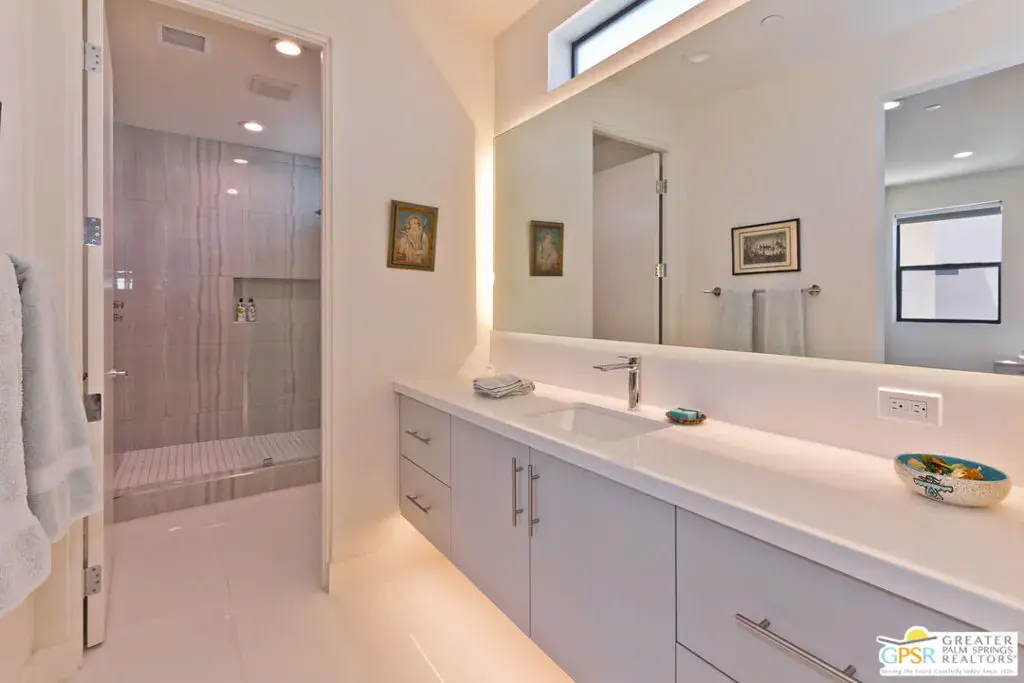 Luxurious Desert Living (Available only May 07-September of 2026) Enclave at Baristo, A 3 bed, 3.5 bath home, conveniently located a short distance from downtown Palm Springs dining, entertainment, and amenities the desert offers, with lots of hiking trails, golf and sunshine skies. This 2544 sq. ft. home has an upper and lower floor primary suite, a 3rd en-suite bedroom (all with private patios), and several desk-study areas for when you must work. There are clerestory windows allowing for unfiltered lighting throughout, creating an even more open feel in the Gourmet kitchen with high-end stainless appliances. This home also features an electric fireplace, and large capacity washer and dryer, as well as an attached two-car garage. The perfect home for indoor/outdoor entertaining with the outside patio equipped with a Napoleon grill, firepit, and shower. And to finish off your days, enjoy amazing mountain views from your own private pool and spa. All utilities paid by landlord.