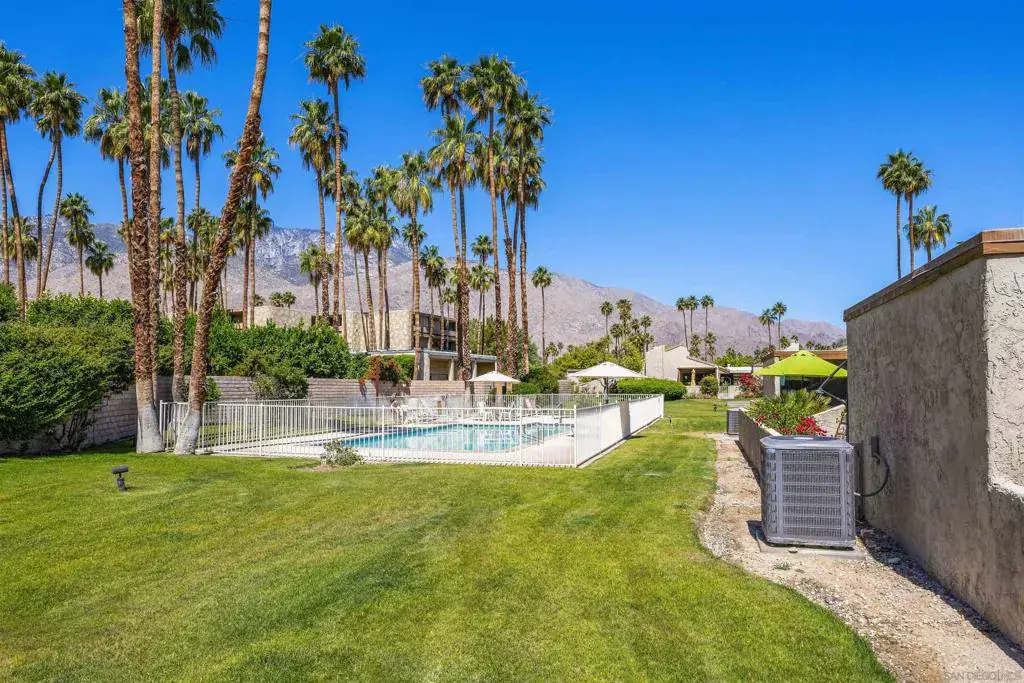 Tucked inside one of South Palm Springs’ most desirable single-level communities, this rare Kaptur home lives like a private Palm Springs retreat, with no one above or below you and private patio spaces that create true indoor-outdoor flow. From the moment you enter, the home feels intentional and design-forward. Natural light pours through plantation shutters, reflecting off modern finishes and clean architectural lines. The living and dining areas flow effortlessly, making the space feel open, social, and relaxed, exactly how a Palm Springs home should live. The primary suite is calm and inviting, with a spa-inspired bath that keeps the aesthetic clean and timeless. The secondary bedroom adds personality and flexibility, perfect for guests, a creative studio, or a home office. The outdoor spaces are where this home truly shines. Designed for both relaxation and entertaining, they offer room for morning coffee, outdoor dining, and evening gatherings under the desert sky, all while enjoying privacy and the surrounding palms. Just steps away, resort-style pools, lush grounds, and mountain views complete the Palm Springs lifestyle. Whether you are looking for a full-time home, a weekend escape, or a stylish desert base, this is the kind of property that rarely becomes available. Single-level living. South Palm Springs. Designed by Hugh Kaptur. This is the one buyers wait for.