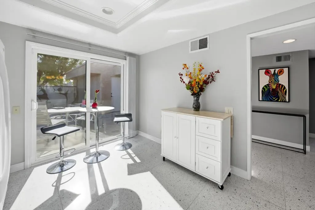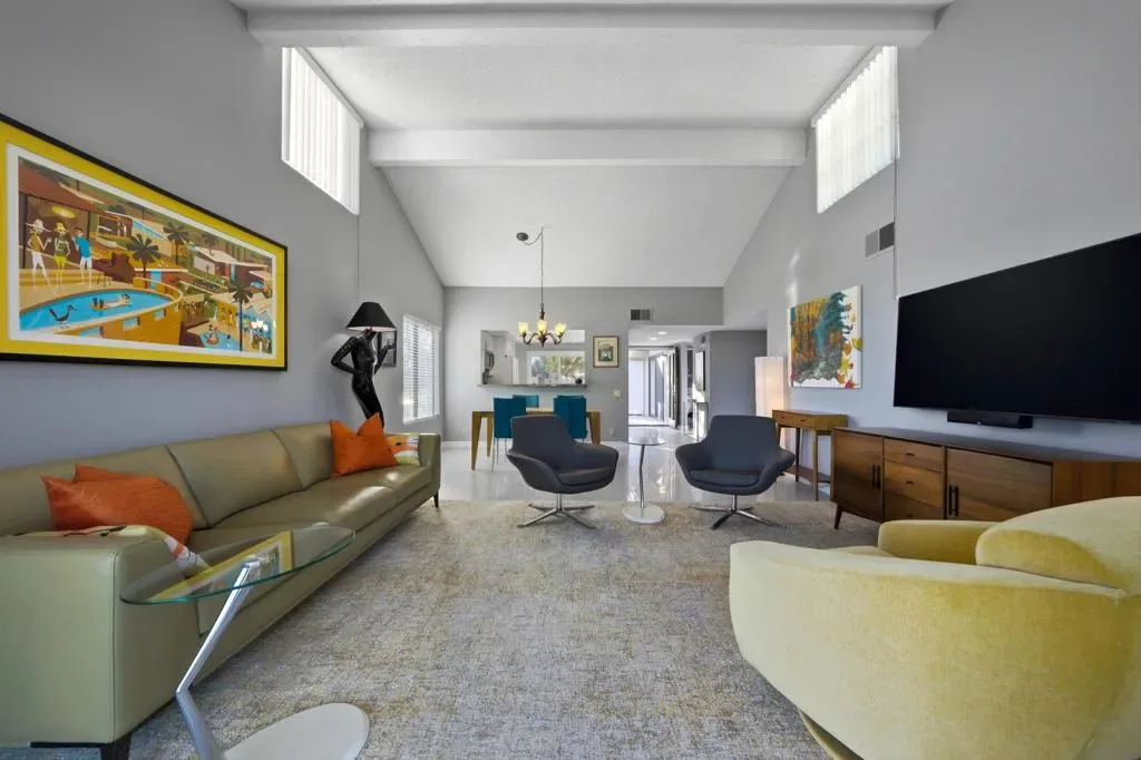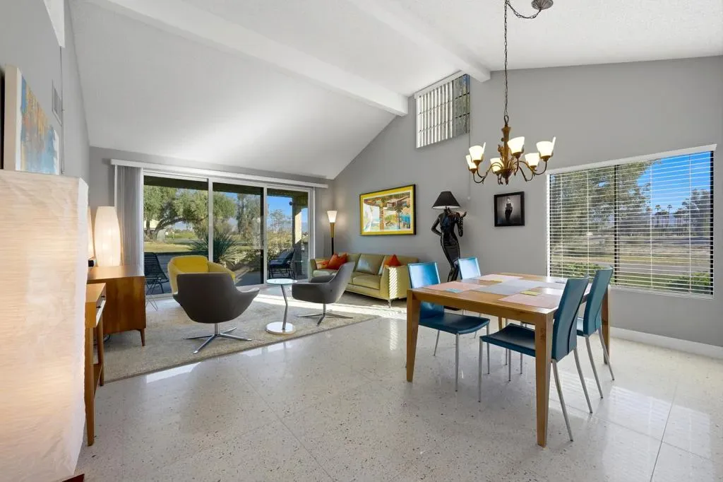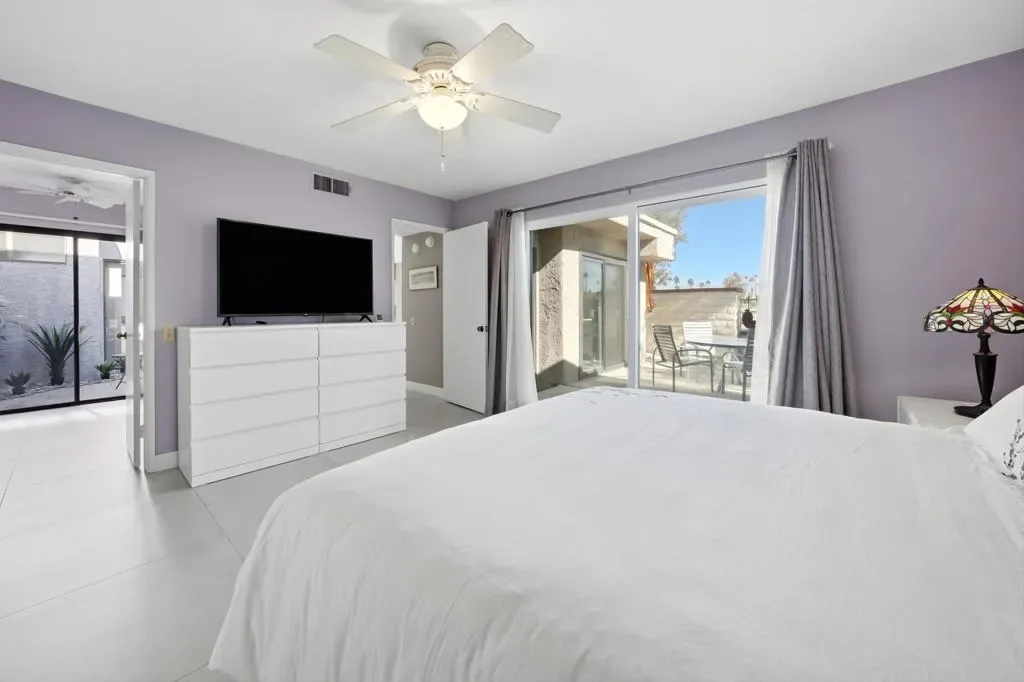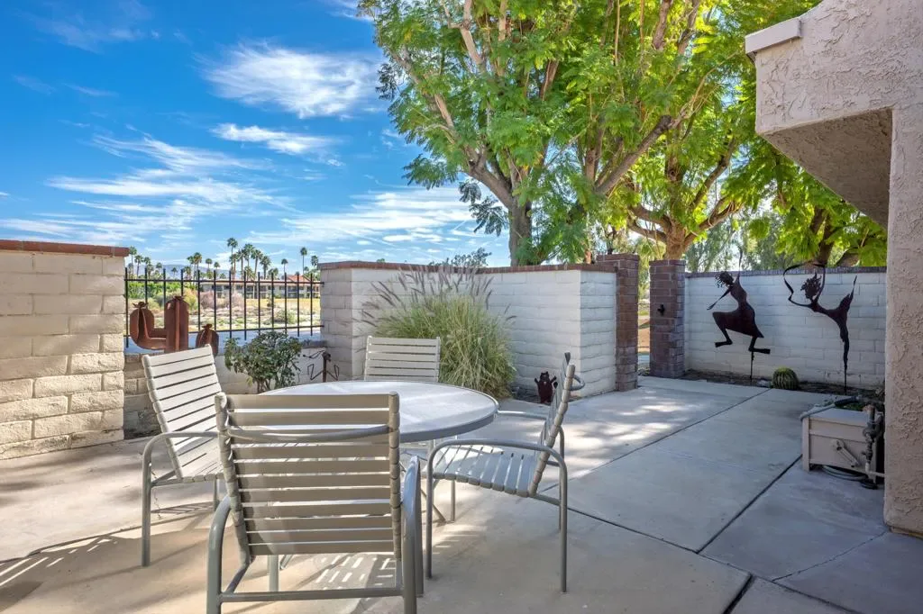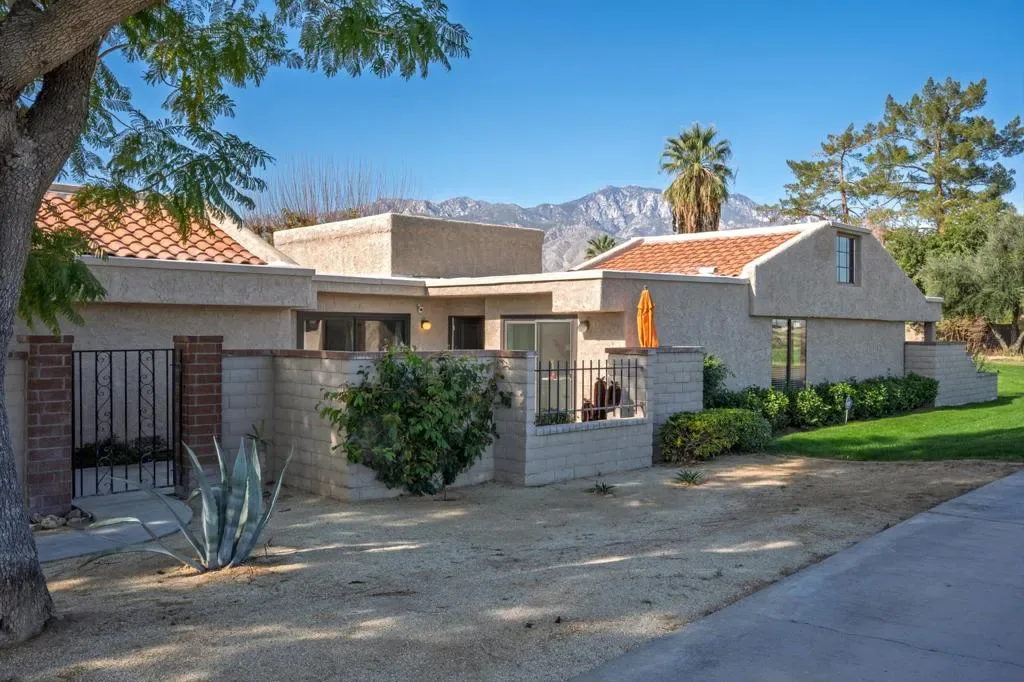 Improved list price! Welcome to 2821 Calle Arandas, located in the prestigious West Gate community of Cathedral Canyon Country Club. Offering 1,452 square feet of sleek, modern living space and a coveted Palm Springs address, this home balances resort-style luxury with the comforts of a private retreat. Perfectly situated at the Northern tip of Calle Arandas, this property enjoys a trifecta of captivating views – golf course, mountain, and surrounding natural landscape.Elegant new tile flooring flows seamlessly throughout the entire home. You’ll love the vaulted ceilings, natural light, and open floor plan. An updated kitchen features quartz countertops, new cabinetry, and new appliances including oven/stove, dishwasher, and microwave. Beyond, a large outdoor patio offers the perfect location to soak in the morning sunshine or evening entertaining and al fresco dining.Enjoy the luxury of a spacious primary bedroom with ensuite and custom closets. Direct patio access offers views of the adjacent golf course and San Jacinto Mountains. A second bedroom, also with ensuite and custom closets, offers privacy and serenity. In the center of the home is an atrium, open to the sky, acting as a natural light well and creating an environment of tranquility.An attached 2-car garage offers storage and convenience. Additional upgrades include a new HVAC system (2024), new Milgard sliders in living room and bedrooms, and new blinds.Cathedral Canyon Country Club features 450 acres of park-like environment including an 18-hole golf course and 10 tennis courts. Proximity to shopping, restaurants, Community Amphitheater, and the Agua Caliente Casino Cathedral City. The PSP International Airport and downtown Palm Springs are just minutes away.Perfect for your full-time residence, weekend getaways or seasonal living! HOA fee includes cable TV, internet, trash/recycling, exterior maintenance, and landscaping.