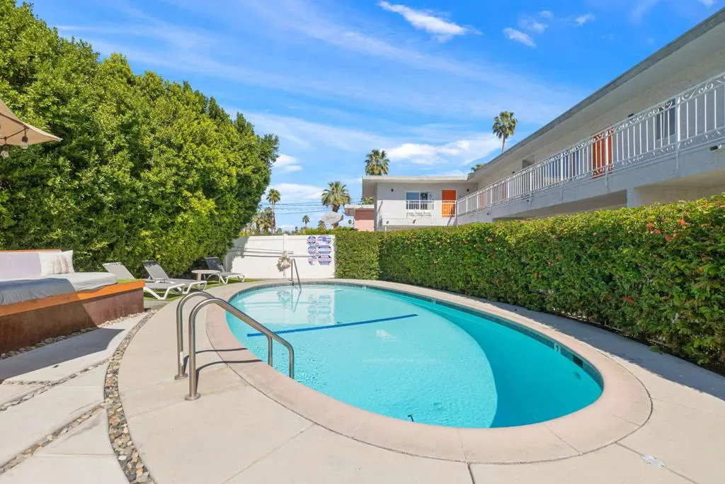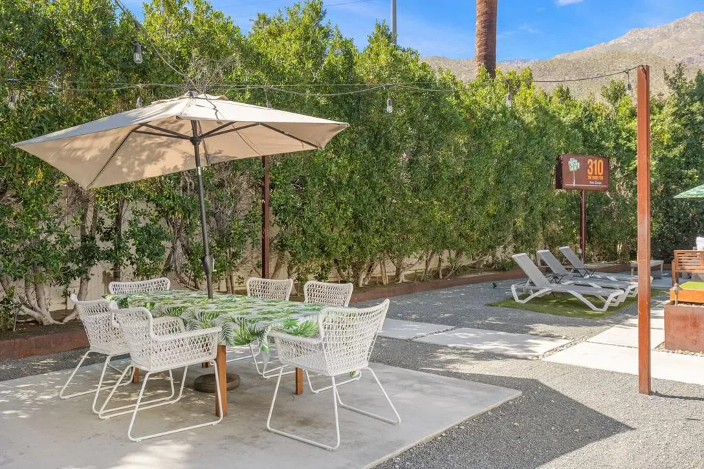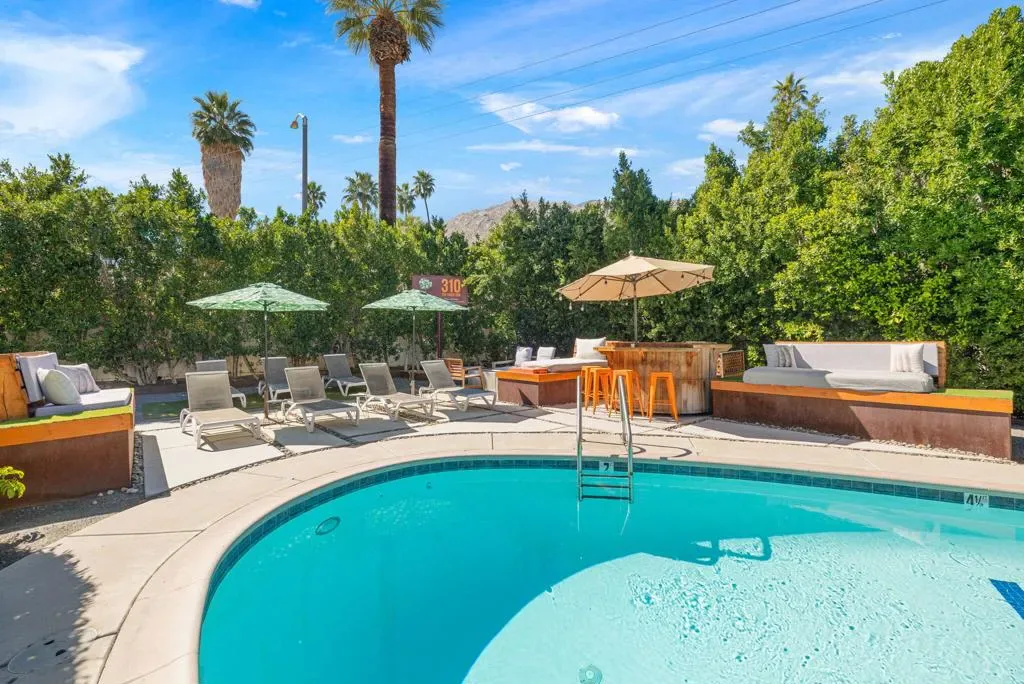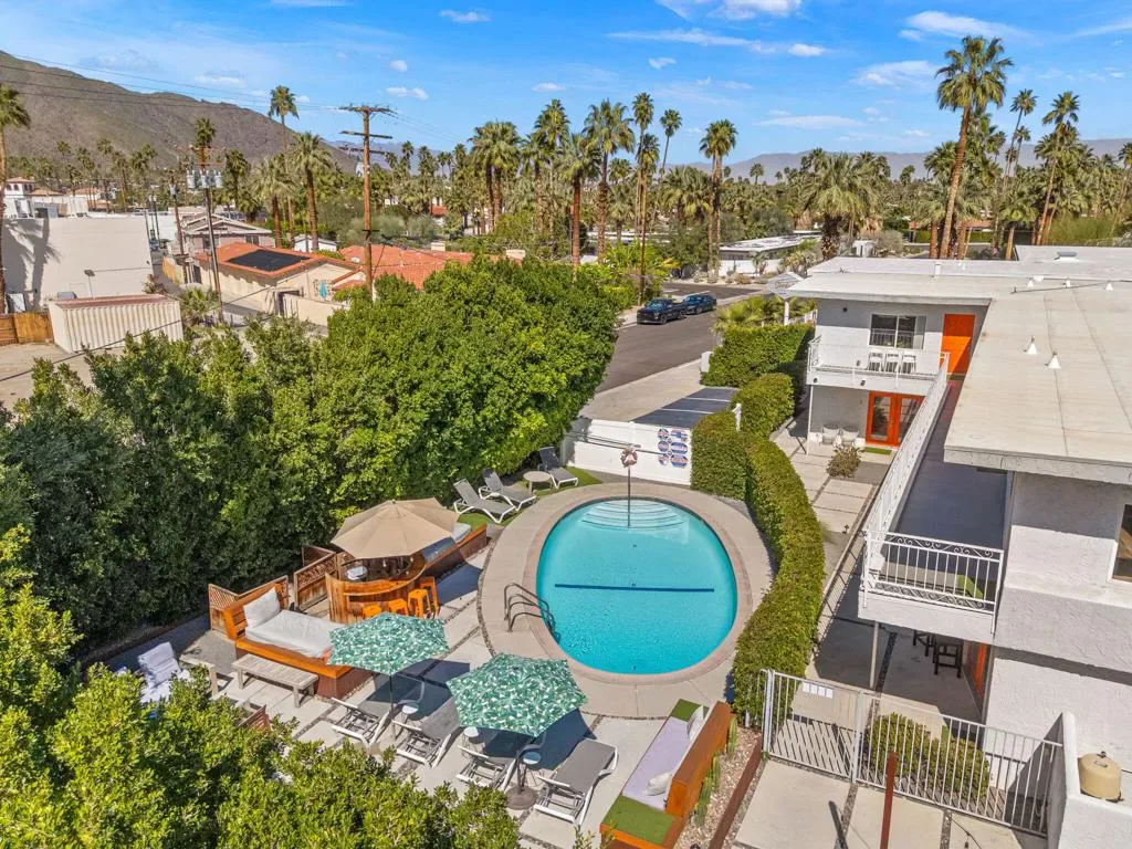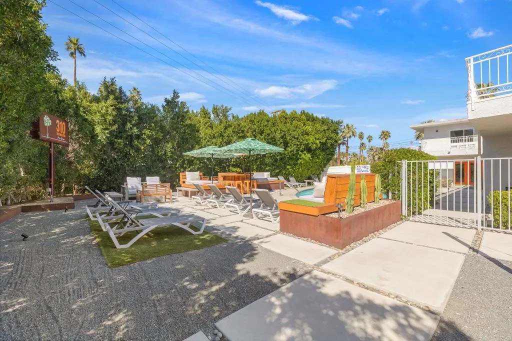 Nestled in the heart of Palm Springs The Three Ten Hotel offers an elevated desert escape where timeless design meets effortless luxury. This beautifully restored Mid-Century boutique property captures the spirit of classic Palm Springs while delivering the comfort, privacy, and style today’s discerning travelers expect.Designed for intimate getaways and memorable group experiences, the hotel features seven spacious, vintage-inspired suites thoughtfully arranged around a tranquil central pool courtyard. Each room blends retro charm with modern convenience, featuring luxurious queen beds, curated furnishings, and private kitchenettes. Two larger suites offer full kitchens and separate living areas–perfect for extended stays, entertaining, or relaxing in true Palm Springs fashion.Guests are invited to unwind beneath endless desert skies while enjoying sweeping views of the majestic San Jacinto Mountains.Sun-drenched afternoons by the pool transition seamlessly into breathtaking sunset evenings, where the surrounding desert landscape creates an atmosphere of serenity and understated glamour.Whether you’re planning a private celebration, a stylish group retreat, or a festival getaway to nearby events like the world-renowned Coachella Valley Music and Arts Festival or Stagecoach Festival, The Three Ten Hotel offers a boutique experience designed for unforgettable moments.With accommodations for up to 17 guests, the property is ideal for exclusive buyouts, bachelorette weekends, birthdays, and curated desert escapes–where mid-century elegance, mountain views, and Palm Springs sophistication come together in perfect harmony.